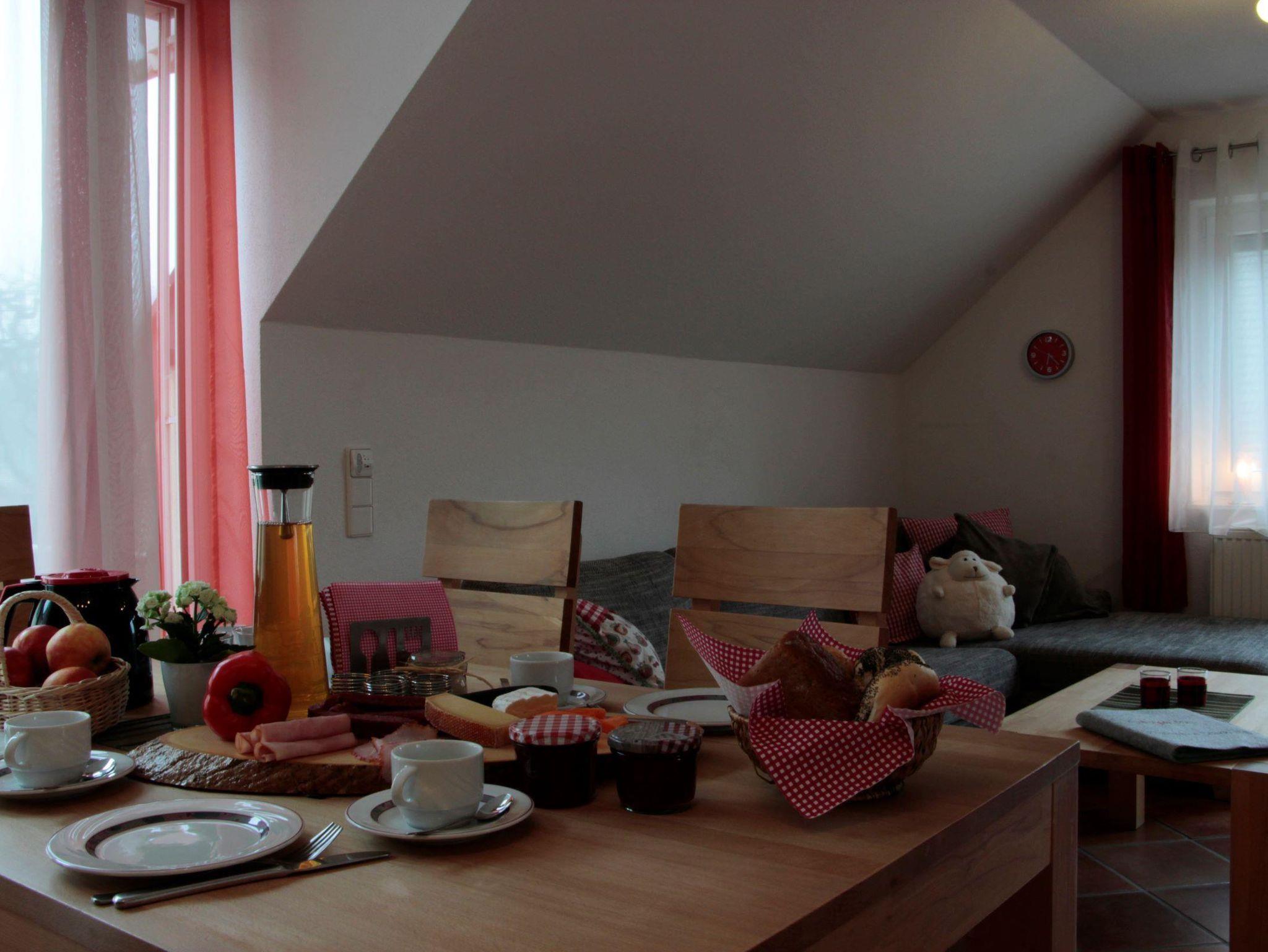 Urlaubsfreude beginnt in unserer sonnigen Ferienwohnung Theresa im ersten Obergeschoss mit zwei Schlafzimmern und Balkon. Diese Ferienwohnung wurde nach unserer großen Tochter benannt und bietet einen schönen Blick zum Schwimmteich und dem Hasengehege.