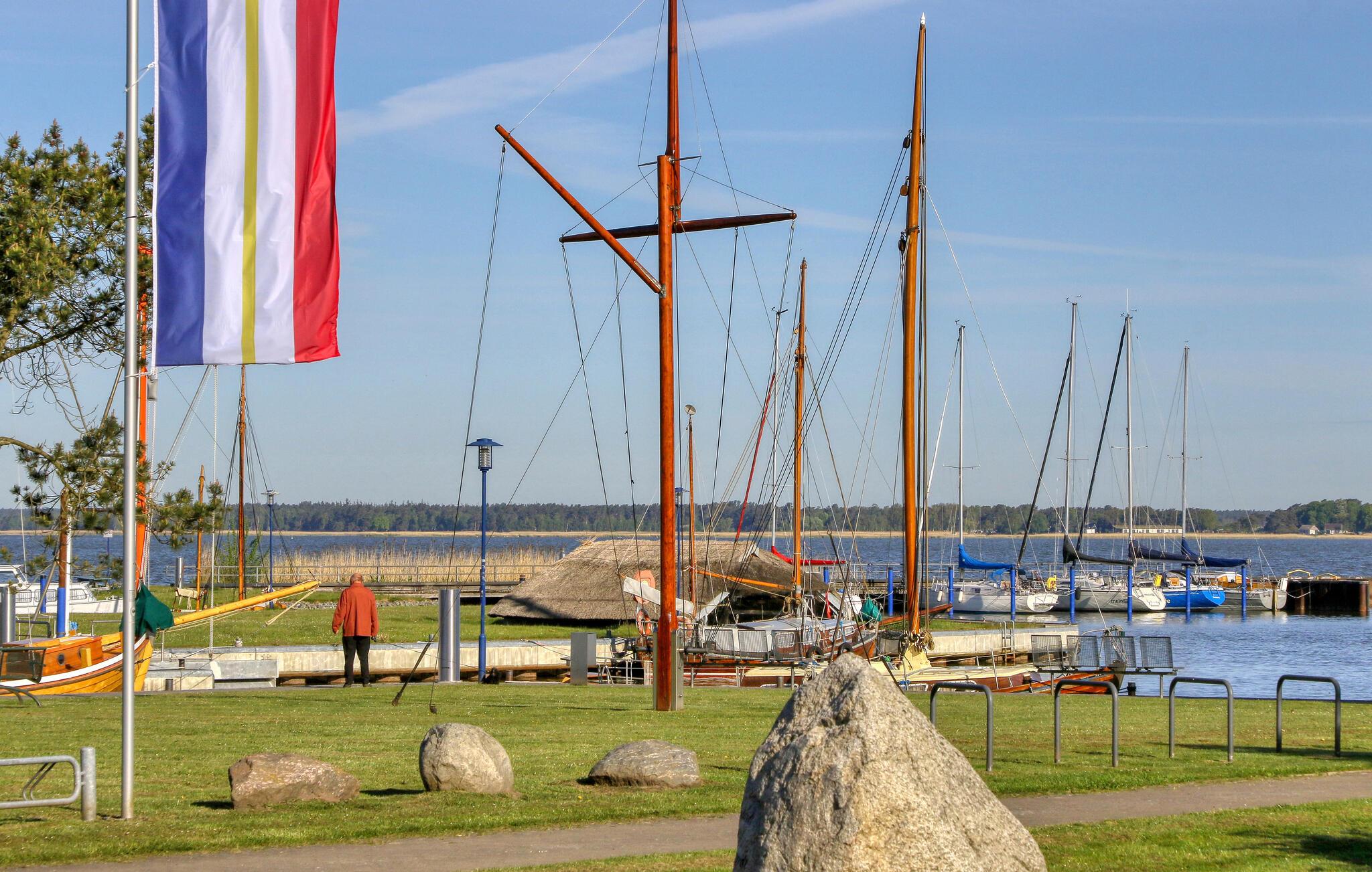 Sommerhuset med de to ferielejligheder er fritliggende på ejerens 2000 kvm store boligejendom, kun 300 m fra Bodstedt havn. Ejeren er kun lejlighedsvis på stedet af professionelle årsager. Denne lejlighed er udstyret med en stue (polstrede møbler, fladskærms-tv, radio), et køkken (elkomfur med ovn, køleskab med fryser, mikroovn, diverse køkkenmaskiner), 2 soveværelser på øverste etage via stejle trapper ( 1 x dobbeltseng, 1 x sammenklappelig seng) samt bad/toilet og centralvarme. En barneseng og høj stol kan stilles til rådighed for små børn. Loftshøjde på øverste etage ca 2,10 m. Der er møbleret terrasse, grill, WiFi og parkeringsplads til rådighed. Den samlede pris inkluderer slutrengøring samt vand- og energiforbrug. Sengelinned og håndklæder kan medbringes eller lejes på stedet. Kæledyr er tilladt i denne ejendom. Betales på stedet: spaskat. Bodstedt ligger syd for halvøen Fischland - Darß - Zingst på Bodstedter Bodden. Der er cirka 7 km til Østersøstranden i Østersøferiestedet Zingst og cirka 4 km til den lille by Barth. Byen har restaurant, havn med passagerfart, cykelstier og strand. Zees bådture og surfing skole på Bodden muligt. Ridemuligheder ved flere ridestalde i området. Fordi den lokale laguneregion er en af de største trækfugles rastepladser i Europa, tilbyder den de bedste betingelser for fuglekiggeri.