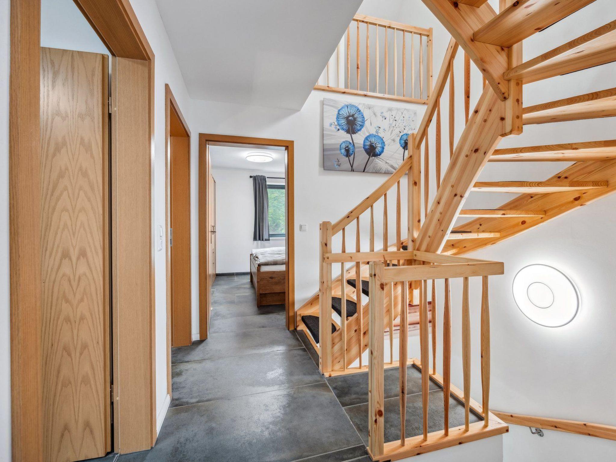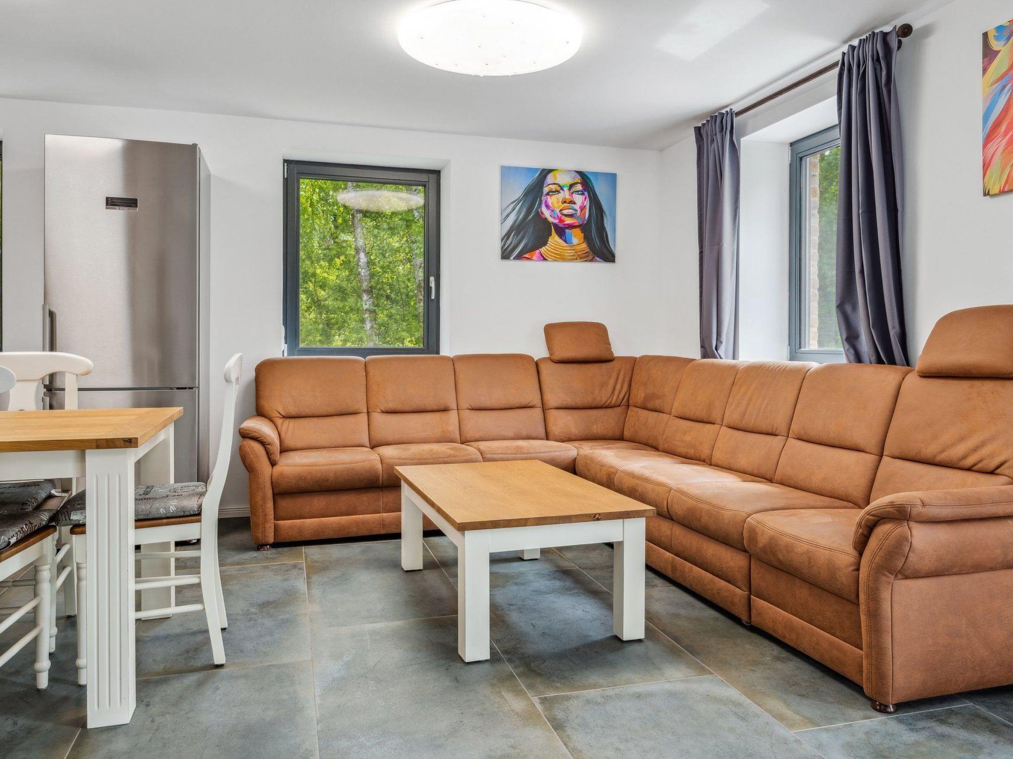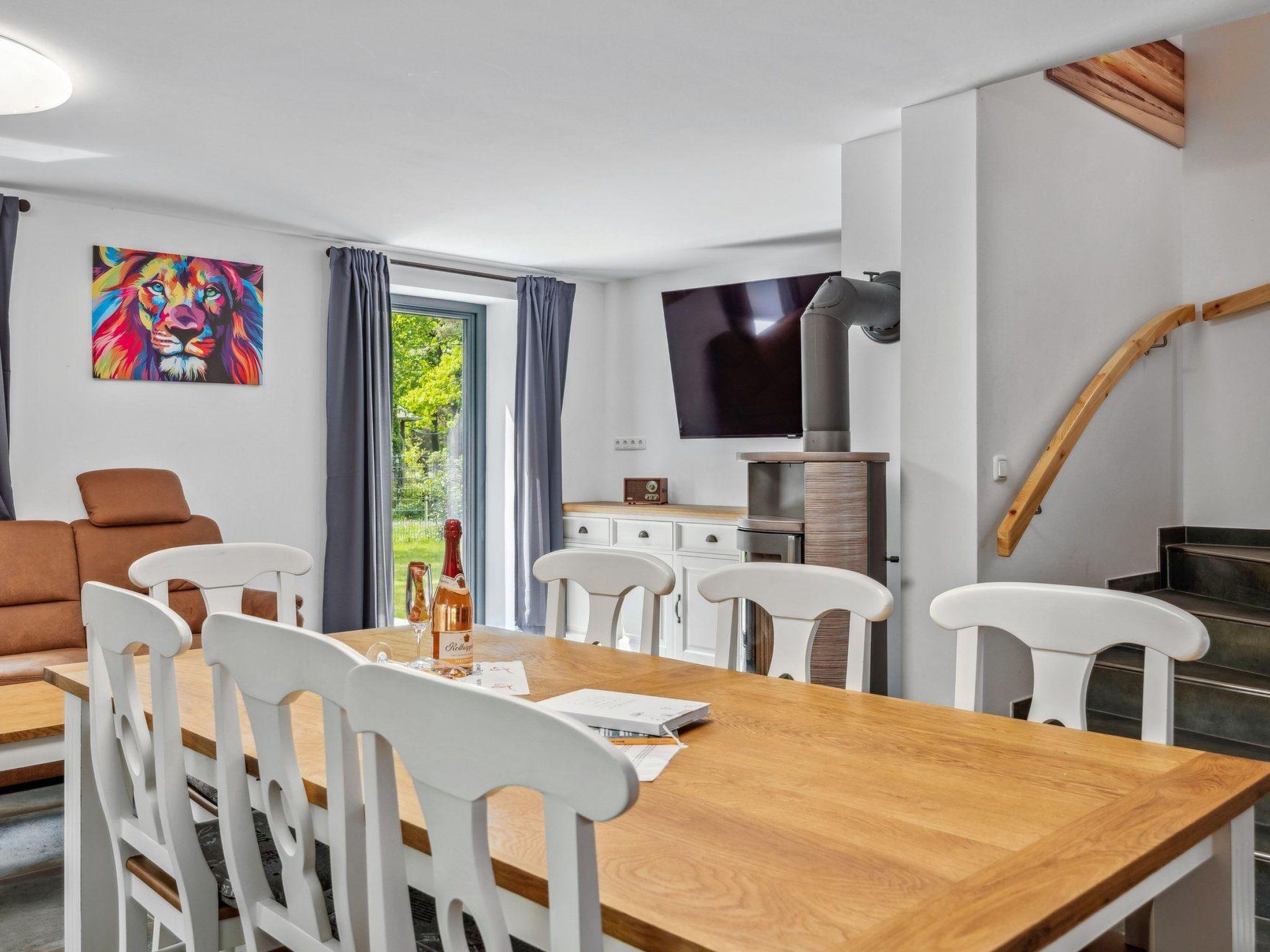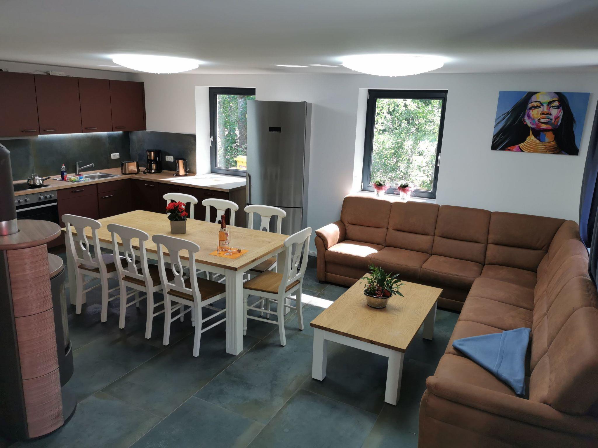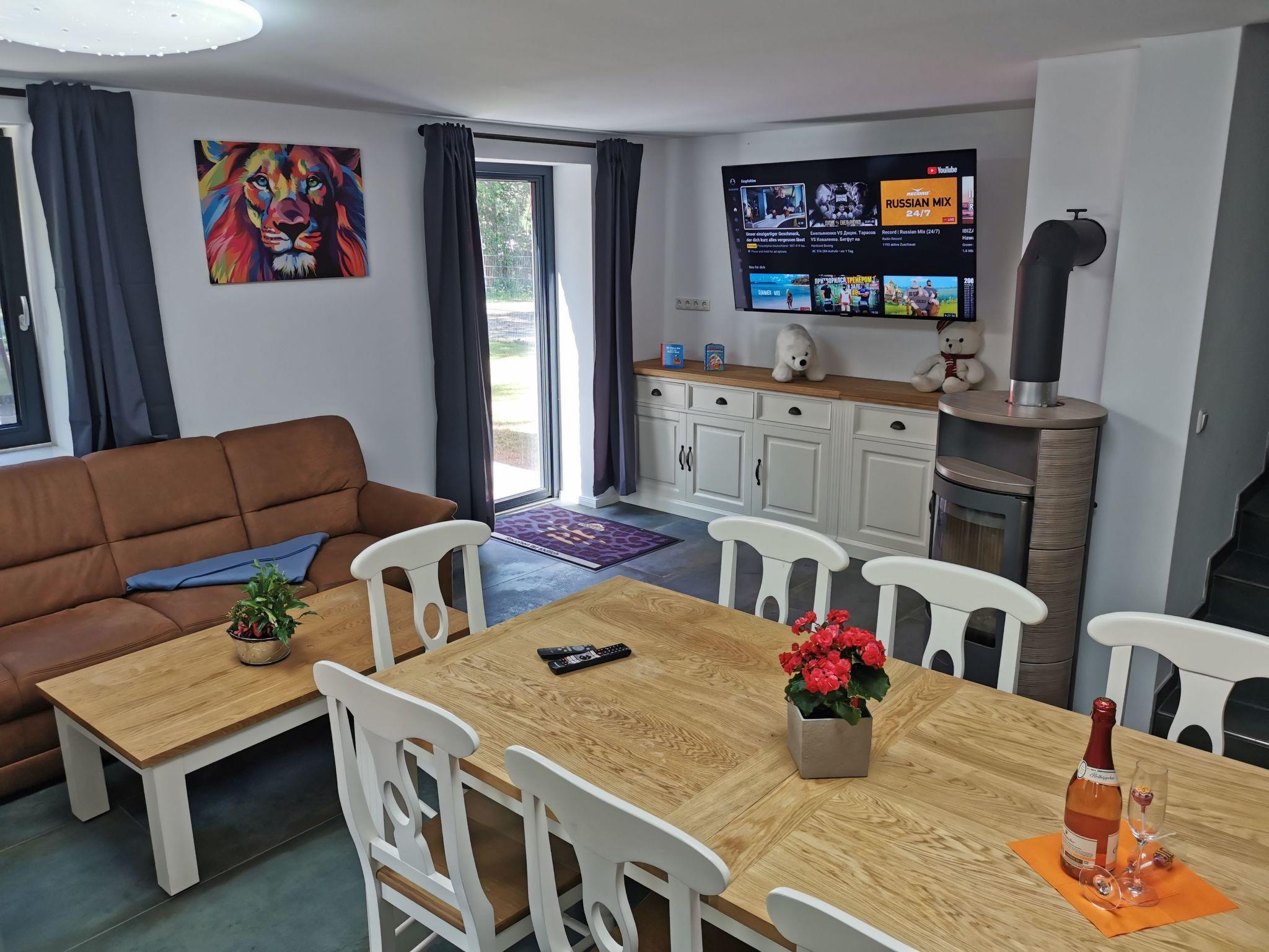 Our very cosy holiday home Hakuna Matata (2 DHH) is located in a green holiday home settlement surrounded by Pomeranian forest landscape on the edge of the village of Bodstedt and the nature reserve "Vorpommersche Boddenlandschaft". It guarantees a relaxing and peaceful holiday. A mild coastal climate, kilometres of fine sandy beaches and rustic forests create an idyllic location. Time out in the countryside - an ideal holiday resort at any time of the year away from the hustle and bustle of the seaside resorts - spend your holiday in our lovingly designed "Haus Hakuna Matata". The property covers 700 m² and the living space in the house is approx. 280 m². The house was completed in July 2022 and the holiday home is divided into 2 semi-detached houses. On the ground floor there is an open, fully equipped kitchen (if something is missing, we will take care of it), the living room with a couch and a nice, cosy fireplace and a bathroom with a large closed shower and hairdryer. The ground floor is tiled and has underfloor heating. As both halves are almost identical in terms of furnishings and decoration, only one half has been photographed. The sunny terrace is a wonderful place to relax and enjoy great barbecue evenings. There are garden chairs with adjustable backrests for sunbathing and a column air grill. The garden invites you to play, relax, linger and unwind.the upper floor has three beautiful bedrooms, each with its own internet-enabled TV for a total of 6 people and a bathroom with a large open shower.the top floor is a large open room with a double bed and plenty of space to play.