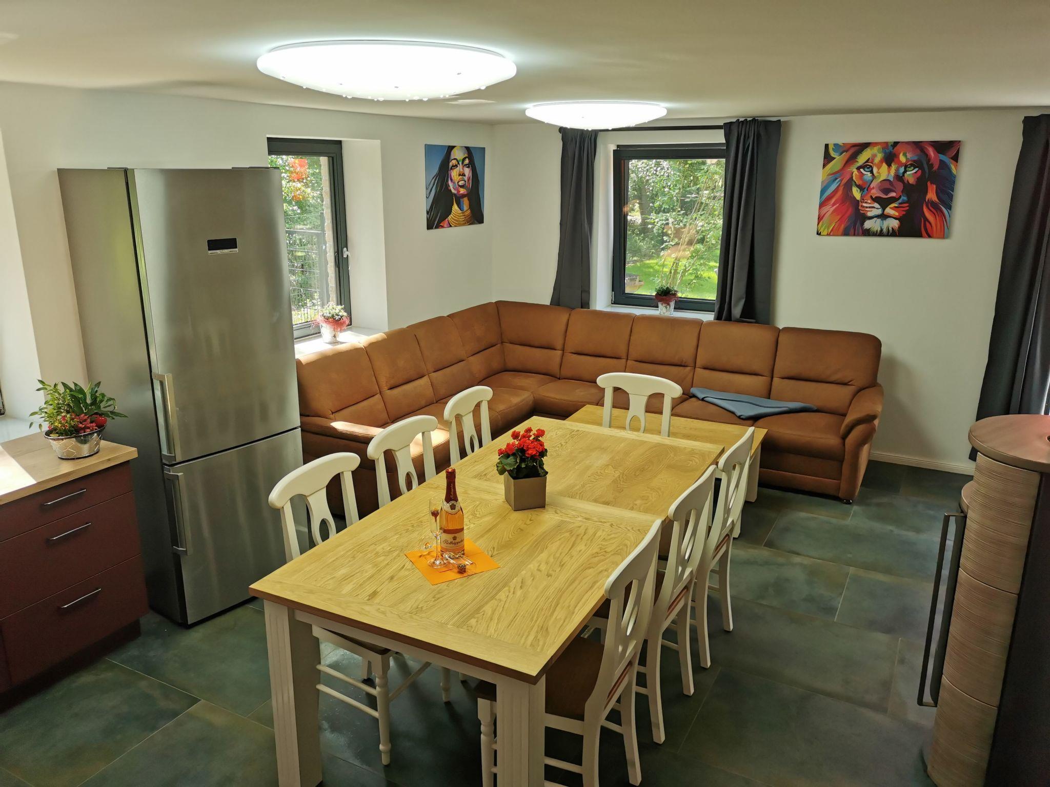 The "Östlicher-Backstein-Rundweg" cycle path close to the estate takes you once around the entire Bodden, approx. 80 km. This can easily be done in one day. The beautiful Baltic Sea beach in Zingst is approx. 30 minutes by bike. The cycle path is also suitable for inline skates, roller skates and skateboards. Jogging and Nordic walking are also recommended.Bodstedt: The small harbour with its typical wooden fishing boats, the Zeesenboote, is particularly beautiful to look at. The oldest Zeesen boat regatta takes place every year on the first weekend in September. There is a landing stage for boat trips around the Bodden and for boat transfers to the Darß. The local beach is only three minutes away by bike. The shallow water zones are ideal for beginners and water rats. Adults can relax on the large lawn next to it. The village has three small restaurants serving fresh fish and fried potatoes. The fisherman supplies holidaymakers and locals with fresh and smoked fish every day. Whether by bike, on foot or on horseback - experience the landscape and the charm of the village up close and personal.SurroundingsYou will spend your holiday in a quiet location. The Baltic Sea spa resort of Zingst (10 km) and the Baltic Sea resort of Prerow (18 km), both characterised by maritime traditions, are not far away. Prerow Bay is one of the most beautiful beaches in Europe. Good shopping facilities, restaurants and evening events can be found in Barth (7 km). The Bodden and the Baltic Sea are an attractive area for water sports enthusiasts and there are countless activities on offer. Hiking is in: it's worth taking a look off the beaten track, especially in autumn when thousands of cranes stop to rest on the Zingst.highlights in the surrounding area- Störtebeker Festival on Rügen (75 km)- Climbing forest in Born (23 km)- Karls Erlebnishof in Rövershagen (41 km)- Marlow bird park (38 km)