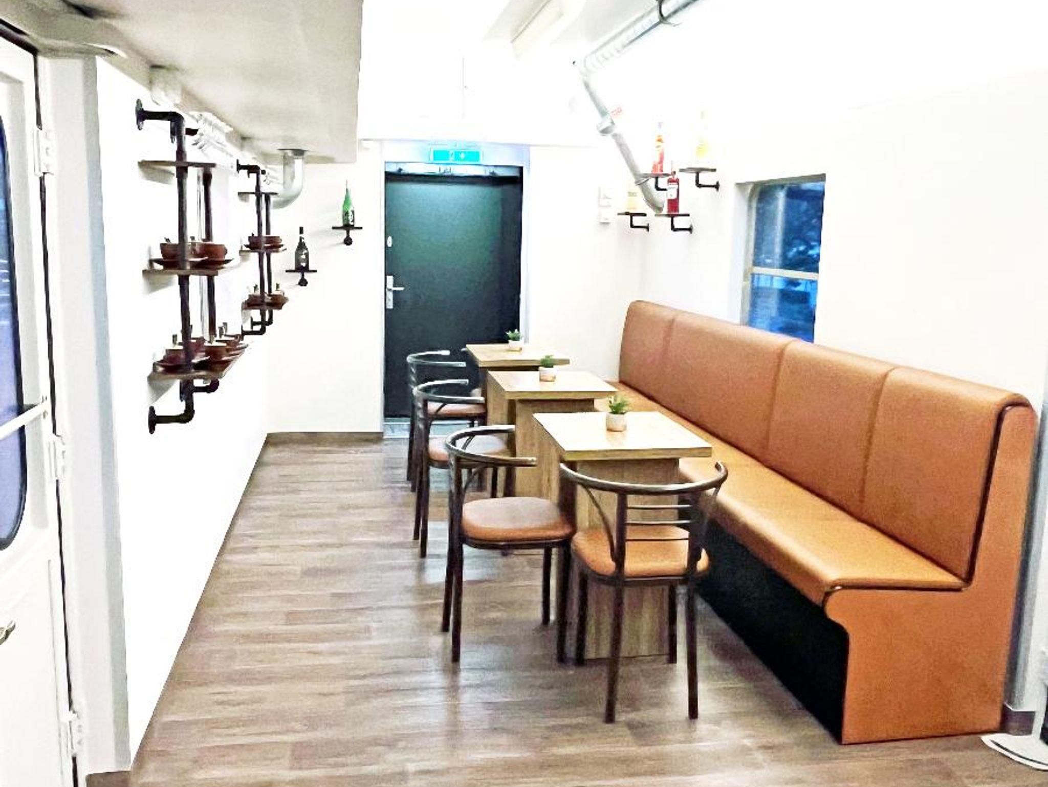 Der Waggon verfügt über 5 Liegeabteile, mit je zwei Schlafmöglichkeiten, 2 Bäder mit Dusche und WC (Gemeinschaftsbäder), , einem großzügigen Aufenthaltsraum (Gemeinschaft) mit Kühlschrank und einer Veranda. Das Bett ist im Liegeabteil bereits hergerichtet. Die Bettlänge beträgt 1,80cm x 1,40cm. Am Ende des Bahnwaggons finden Sie eine Terasse (ca. 20qm) mit 3 Tischen 12 Bistrostühlen. Kostenlose Parkplätze direkt vor Ort, der Waggon liegt direkt am Donauradweg. Internet ist nicht Verfügbar!
