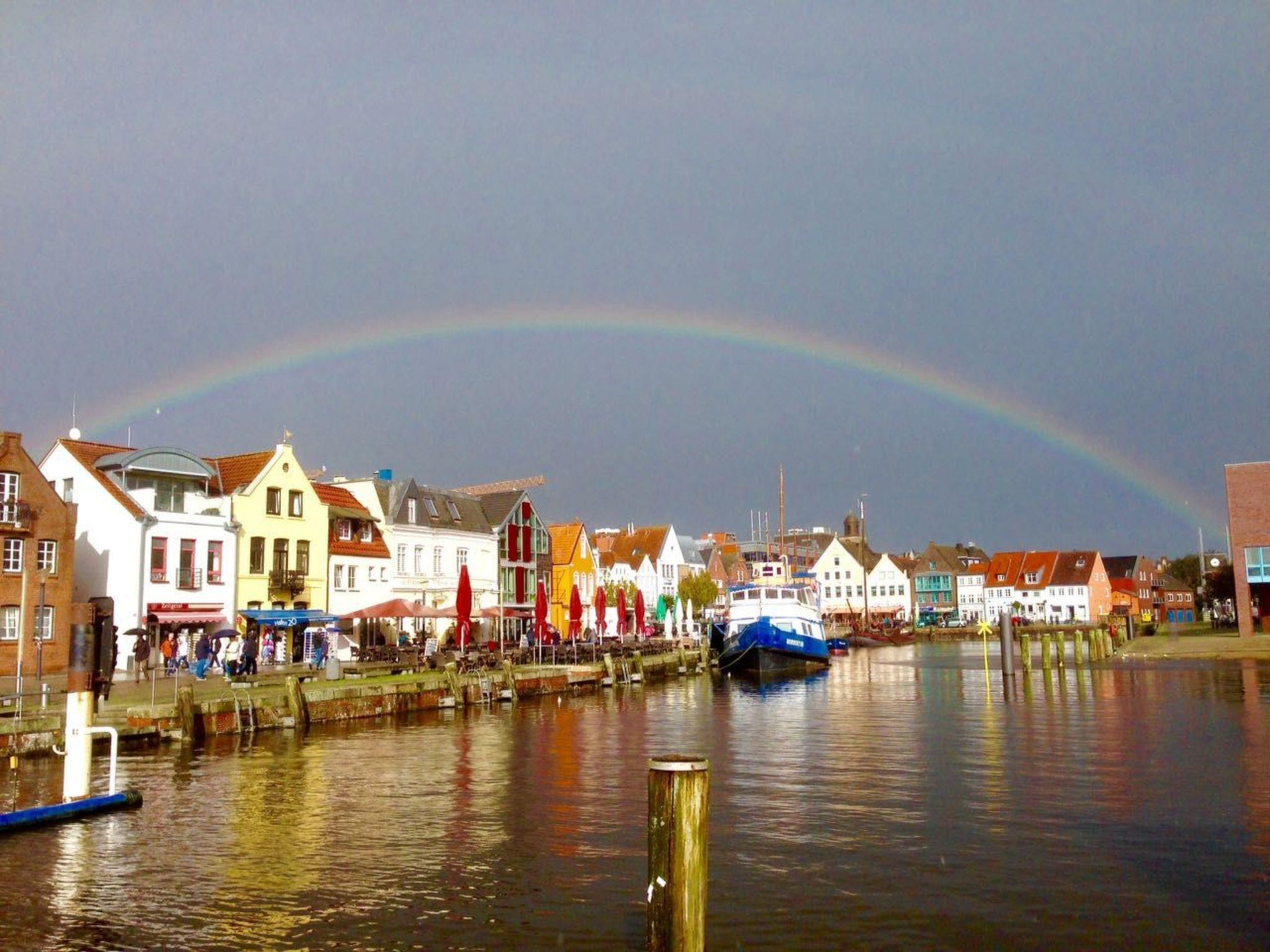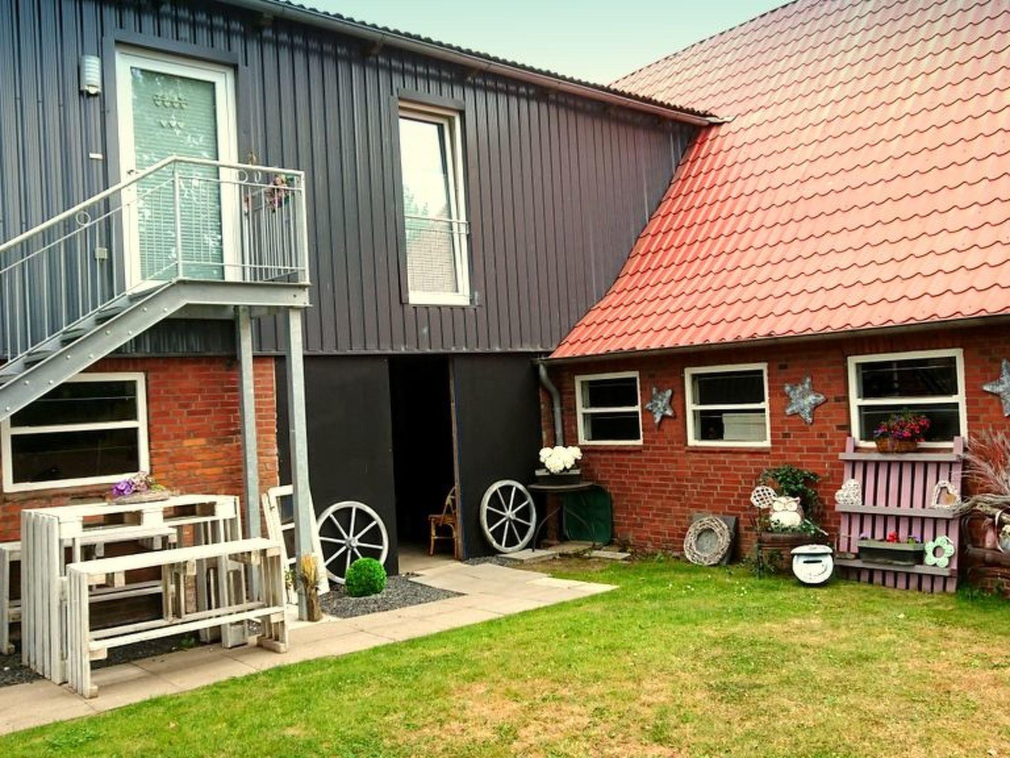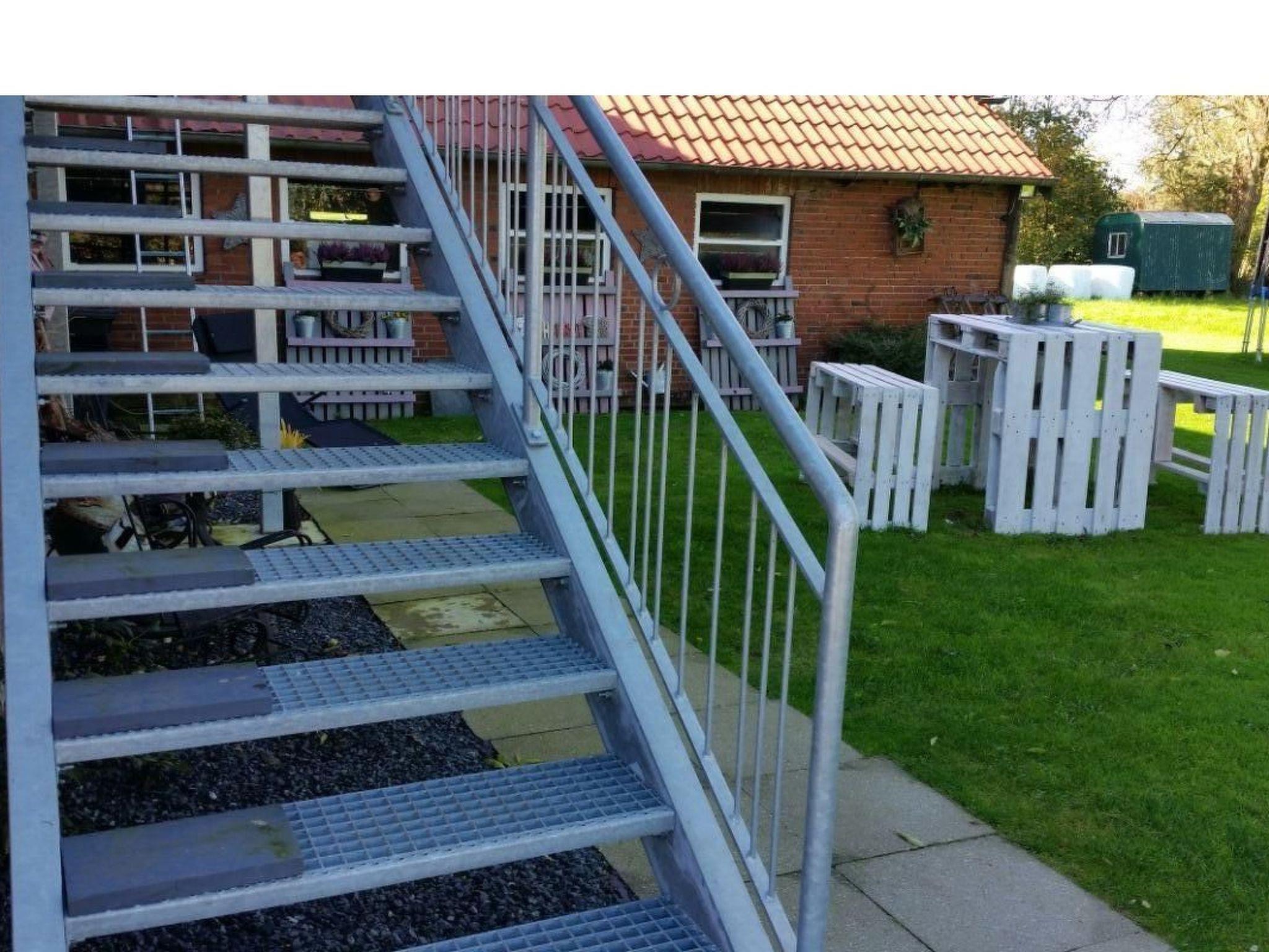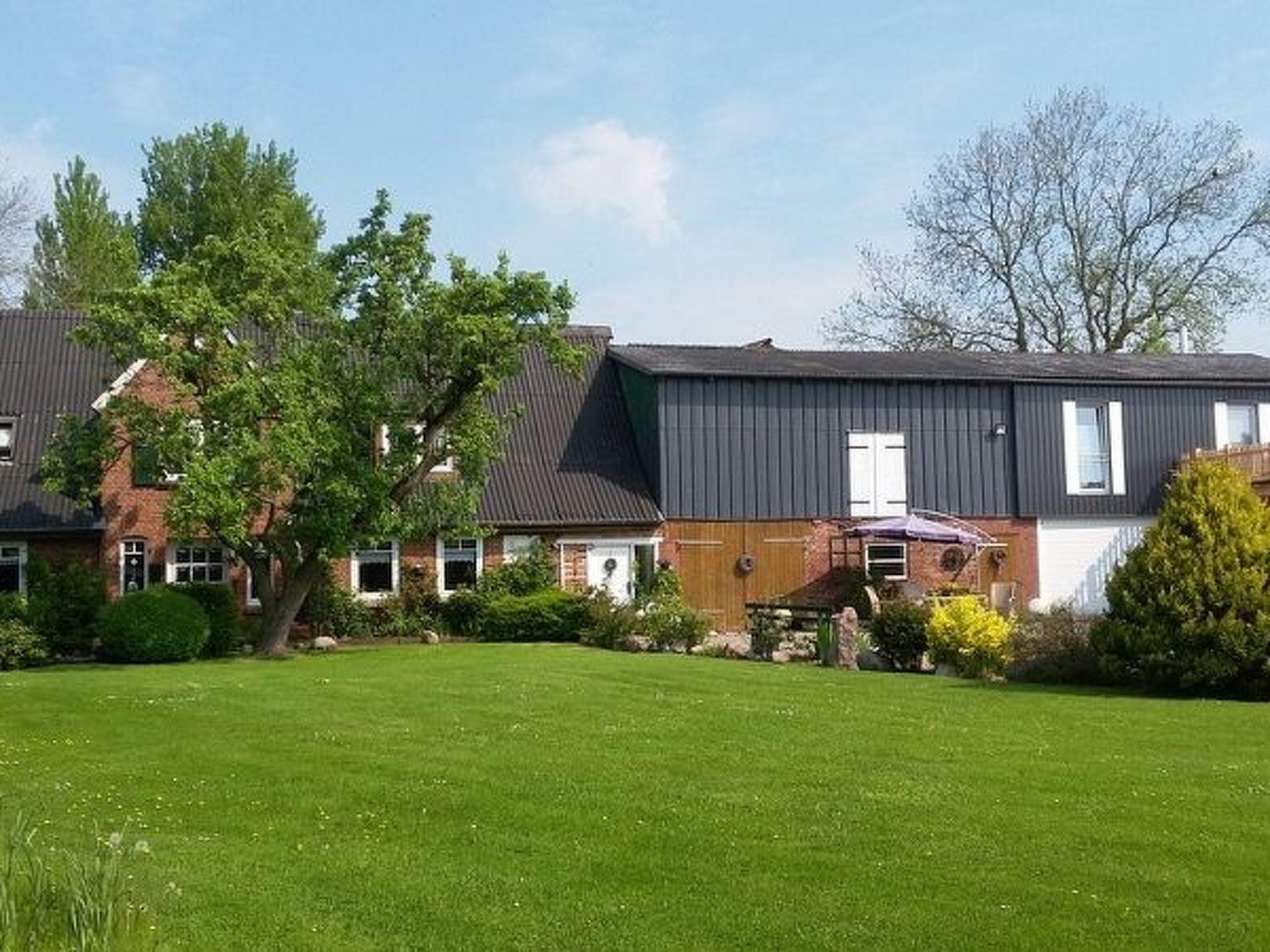 This is a detached former farm with an extensive site, whose former outbuilding now houses the two holiday apartments on the first floor, one to the left, the other to the right. In between there are the private horse stables. The owners live on the ground floor. Your holiday accommodation is on a side street with little traffic on the outskirts, surrounded by meadows and fields, ideal for cycle trips to the tidal flats. The tranquil locality has restaurants and a bakery within walking distance.Former country house, extensively renovated and with two holiday apartments, private outdoor areas, a large garden, riding facilities and a small sauna. Dogs welcome.