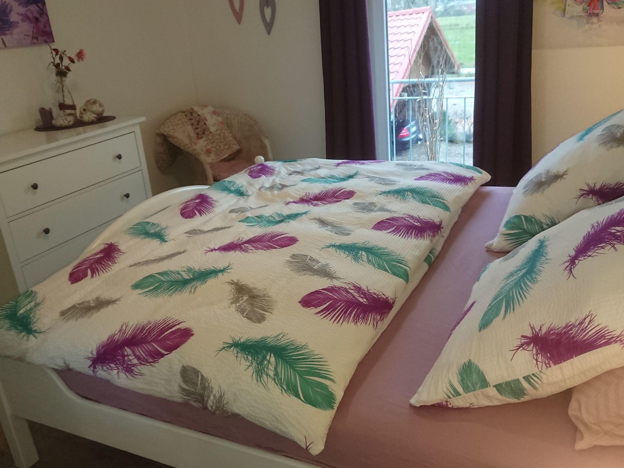 Your four-legged companions can run around outside on the 5000m² site with greenery, although it is not fenced in. During the winter months, you can spend evenings by the fireplace stove in the living room (the owner provides firewood free of charge), or in the little sauna for two people (for shared use, to be arranged with the owner). In summer you can enjoy evenings by the campfire or the grill area in the separate gardens. The large driveway to the house has space for several cars. People and pets alike will find peace and quiet in the well-tended garden. Next to the site there is the pasture with a little pond, with a paddle boat available.
