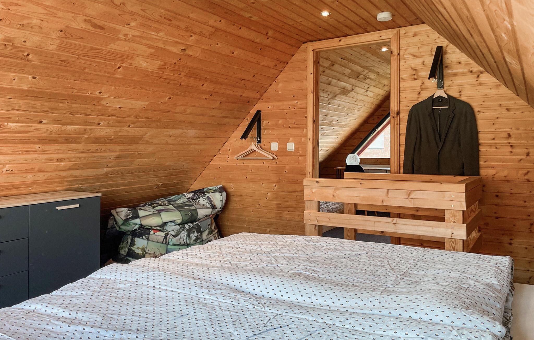 Slap af i denne røde og rustikke bjælkehytte i Boiensdorf.
