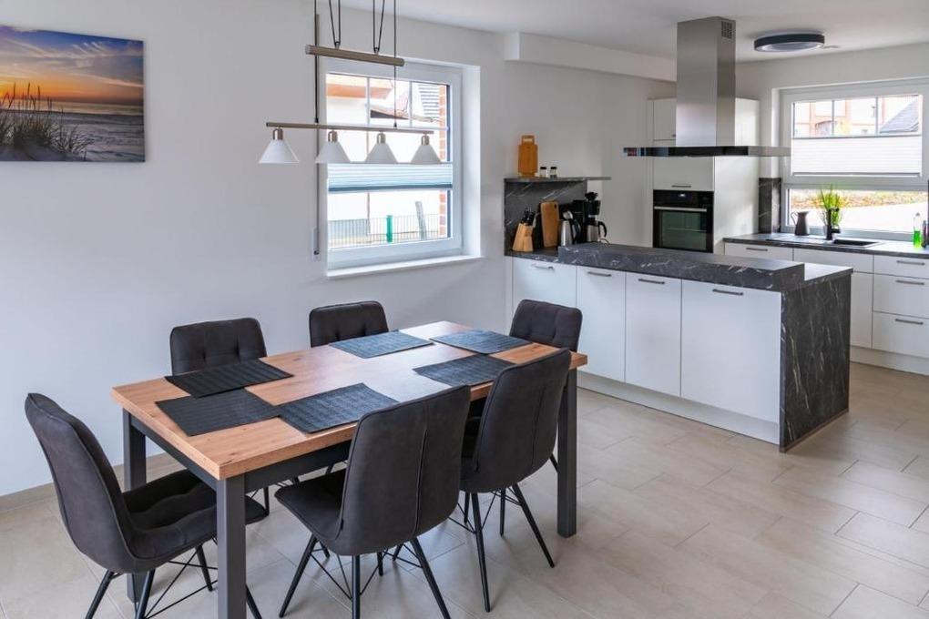 Dieses charmante Ferienhaus bietet auf ca. 120 qm alles, was Sie für einen entspannten Aufenthalt benötigen. Genießen Sie die Annehmlichkeiten eines modernen Badezimmers, sowie den Komfort in 3 Schlafzimmern. Zwei Schlafzimmer verfügen über ein großes Kingsize-Doppelbett, während das dritte Schlafzimmer mit zwei Einzelbetten ausgestattet ist. Das Haus verfügt über eine Fußbodenheizung. Die voll ausgestattete Küche bietet alle Möglichkeiten für kulinarische Genüsse. Für gesellige Abende im Freien steht ein Grill bereit, während Sie drinnen auf dem Smart-TV Ihre Lieblingssendungen verfolgen können. Das Highspeed Internet/Wlan sorgt dafür, dass Sie auch während Ihres Aufenthalts bestens vernetzt sind. Die Terrasse lädt zum Verweilen ein. Das Grundstück ist komplett umzäunt, was Ihnen zusätzliche Privatsphäre gibt. Das Ferienhaus ist sehr kinderfreundlich eingerichtet. 2 x Reisebett, 2 x Hochstuhl, Kindergeschirr und Kinderbesteck, Spielzeug, Treppenschutzgitter, Bollerwagen, sowie ein Spielplatz mit Schaukel und Rutsche stehen Ihnen zur Verfügung. Wer es aktiv mag, wird im Schuppen fündig, hier stehen 2 Fahrräder zur Verfügung (Nutzung auf eigene Gefahr, keine Garantie für Verkehrstauglichkeit).