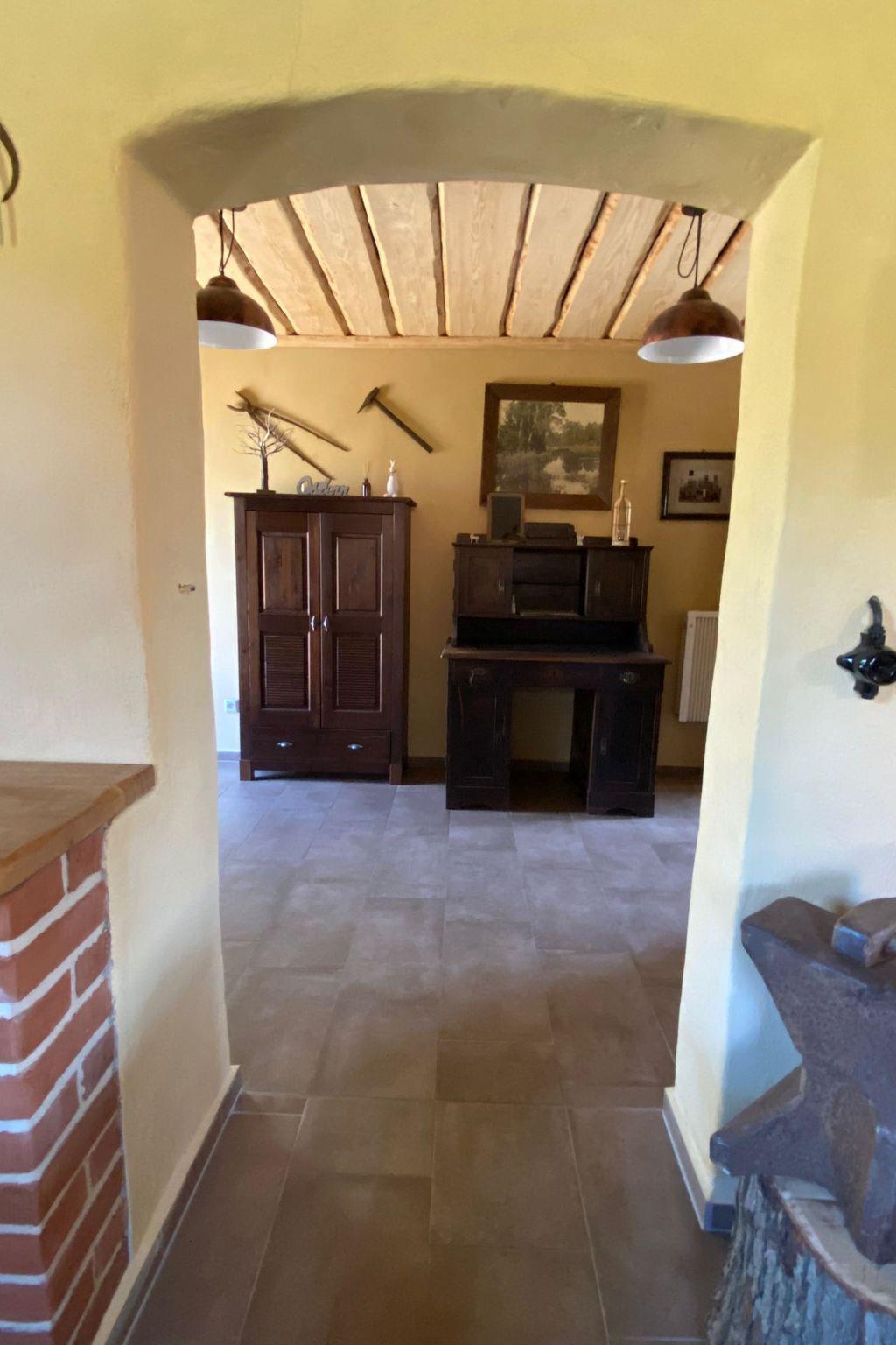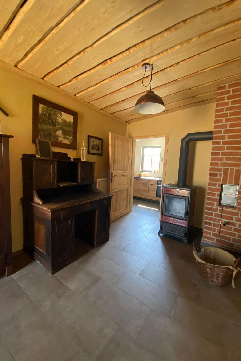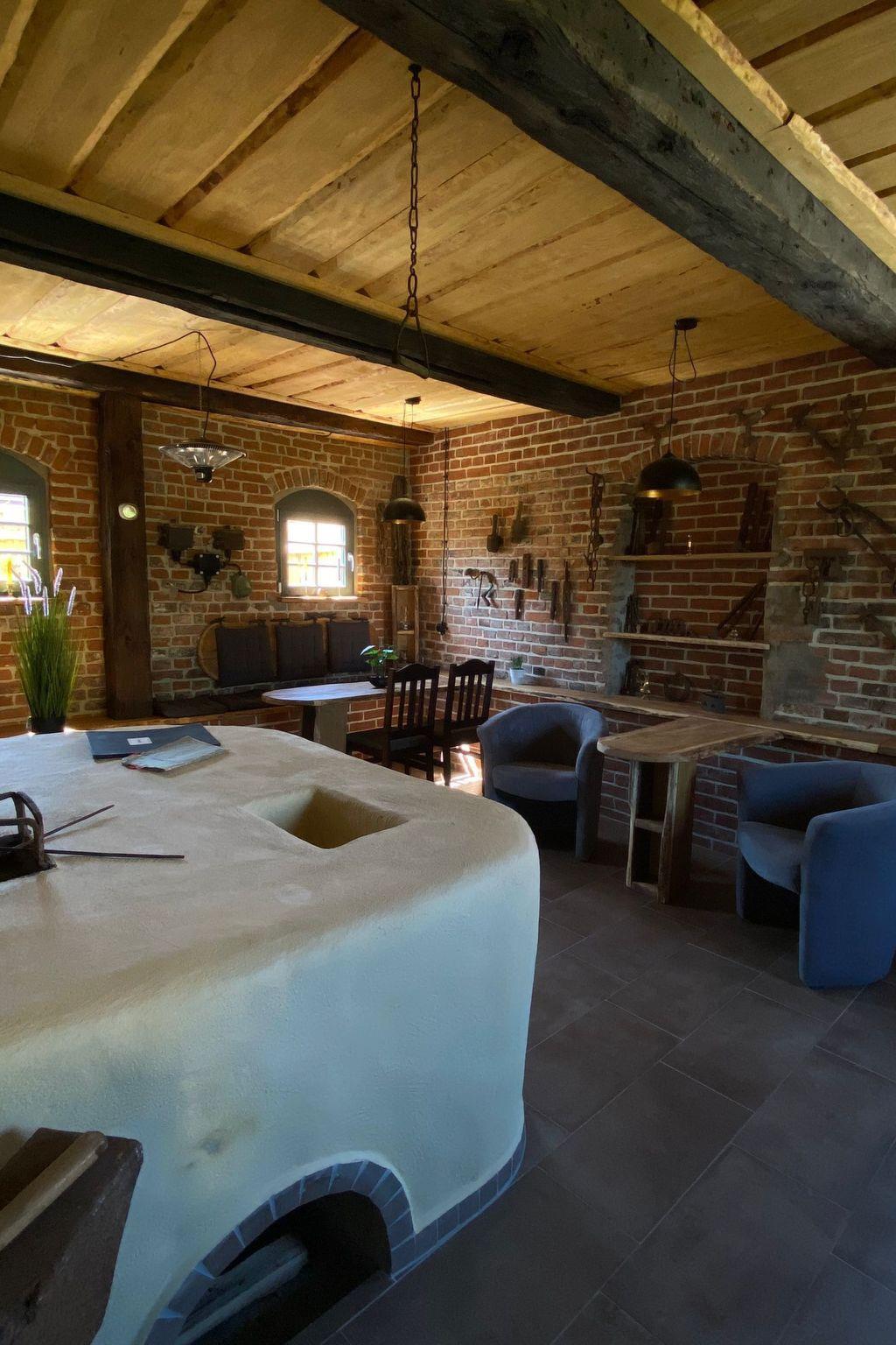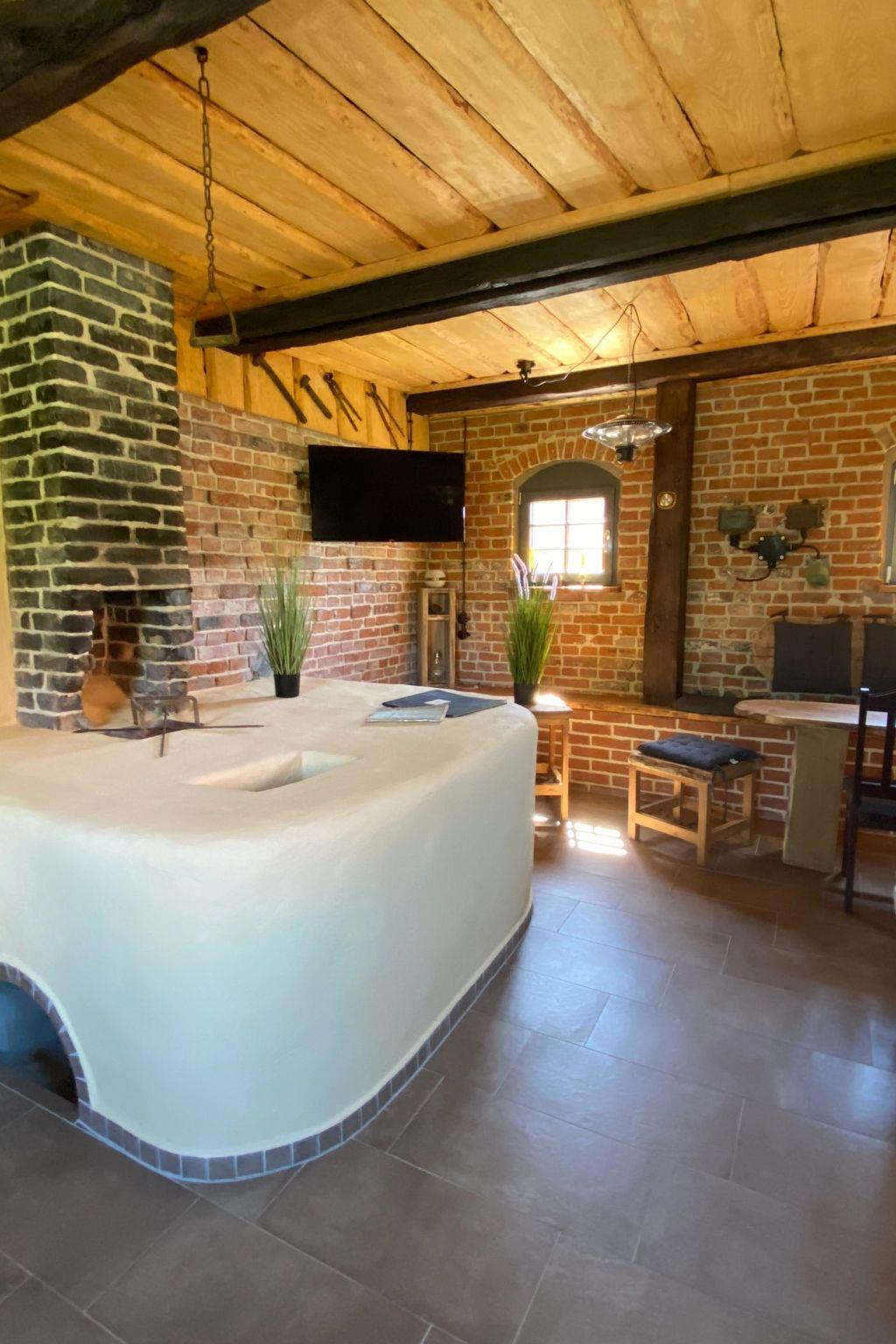 We lovingly converted our old forge into a holiday home between 2021 and 2023. The historical, handcrafted history of the forge was respected. The holiday home has a living space of 52 m², an outdoor bathroom and an indoor bathroom. The holiday home includes a fully equipped kitchen with dining area. In the living room there is a dining area, sofa bed, seating area and TV. The large entrance area has a wood-burning stove for cosy warmth, electric heating is also available. The property has its own garden with sunbathing lawn, covered terrace, barbecue and seating area with fire bowl. The property borders directly on a pond ( Der Schmiedepfuhl ) where numerous animal species are at home. Regularly for 2 persons, an extra bed is possible.