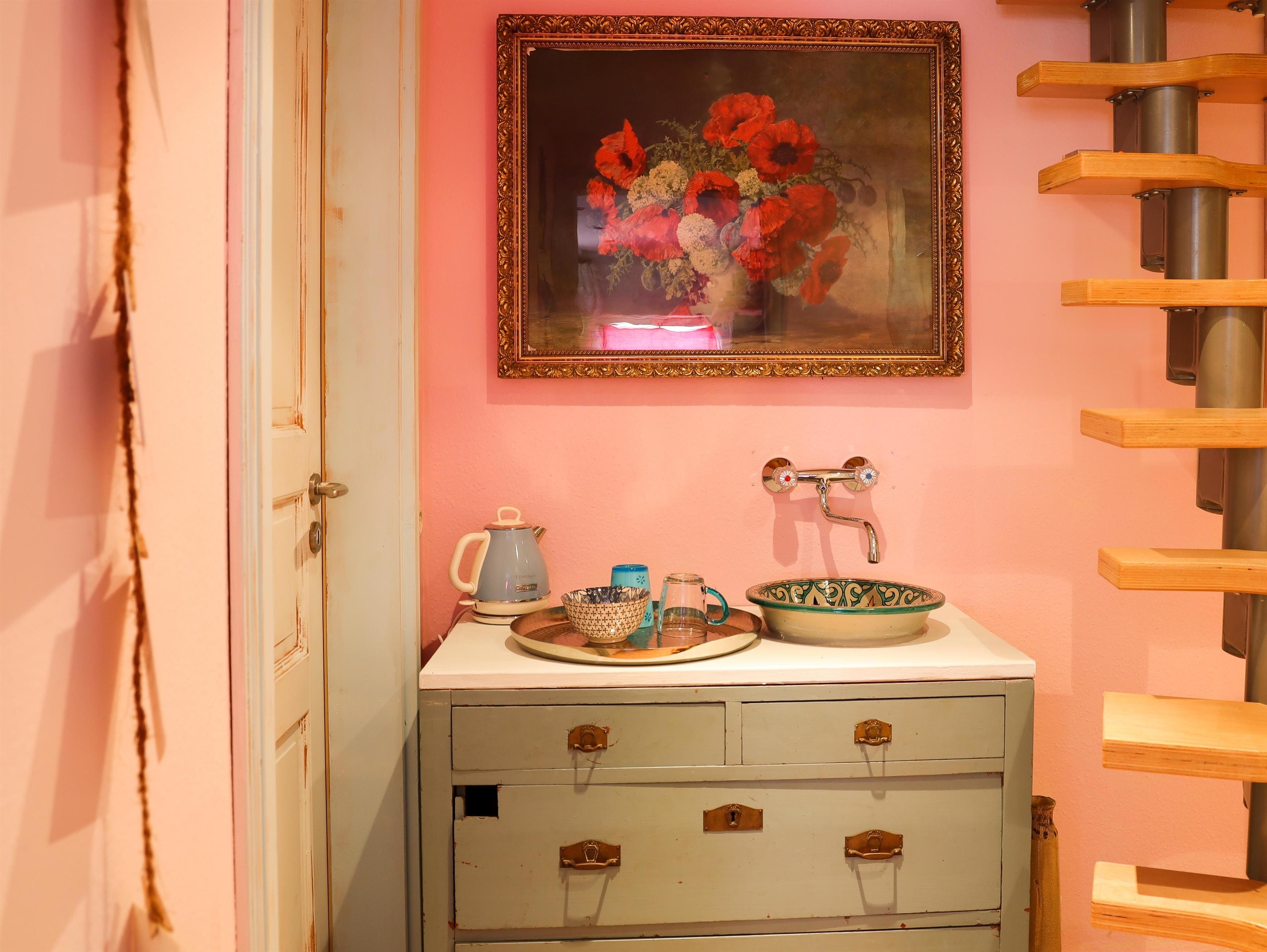 Ein helles Privatzimmer für zwei Person mit zwei separaten Betten, einem Kleiderschrank, Tisch und gemütlichen Sesseln. In einer kleinen Tee-Ecke gibt es die Möglichkeit, Heißgetränke zuzubereiten, eine Kochmöglichkeit steht nicht zur Verfügung. Das ausschließlich von meinen Gästen genutzte Badezimmer lädt nach einem erlebnisreichen Tag zur entspannenden Erfrischung ein. Es wurde vor kurzem saniert und ist voll ausgestattet mit Badewanne, separater Dusche, Waschbecken und WC.
