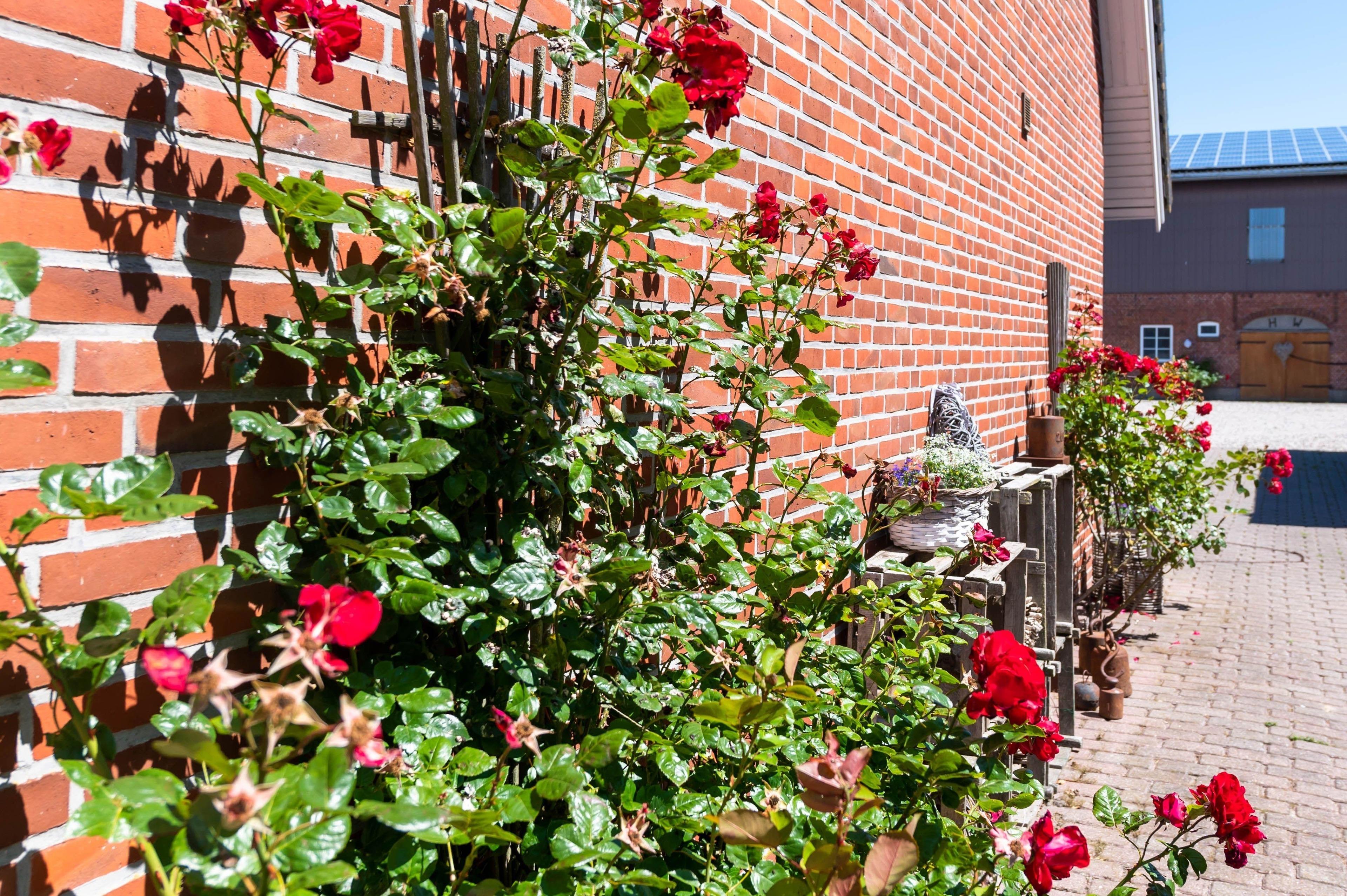 Das Backhaus befindet sich auf unserem Hof, direkt zwischen unserem Bauernhaus und dem Ferienhaus. Zwei Wohnungen liegen im Backhaus, beide über zwei Etagen gebaut. Im Obergeschoss sind jeweils die Schlafzimmer und das Bad angeordnet. Im Erdgeschoss finden Sie die Küchenzeile und den Wohnbereich. Ein großer Spielplatz mit Fußballtoren, Schaukel und Trampolinen bildet das Zentrum des Hofes.