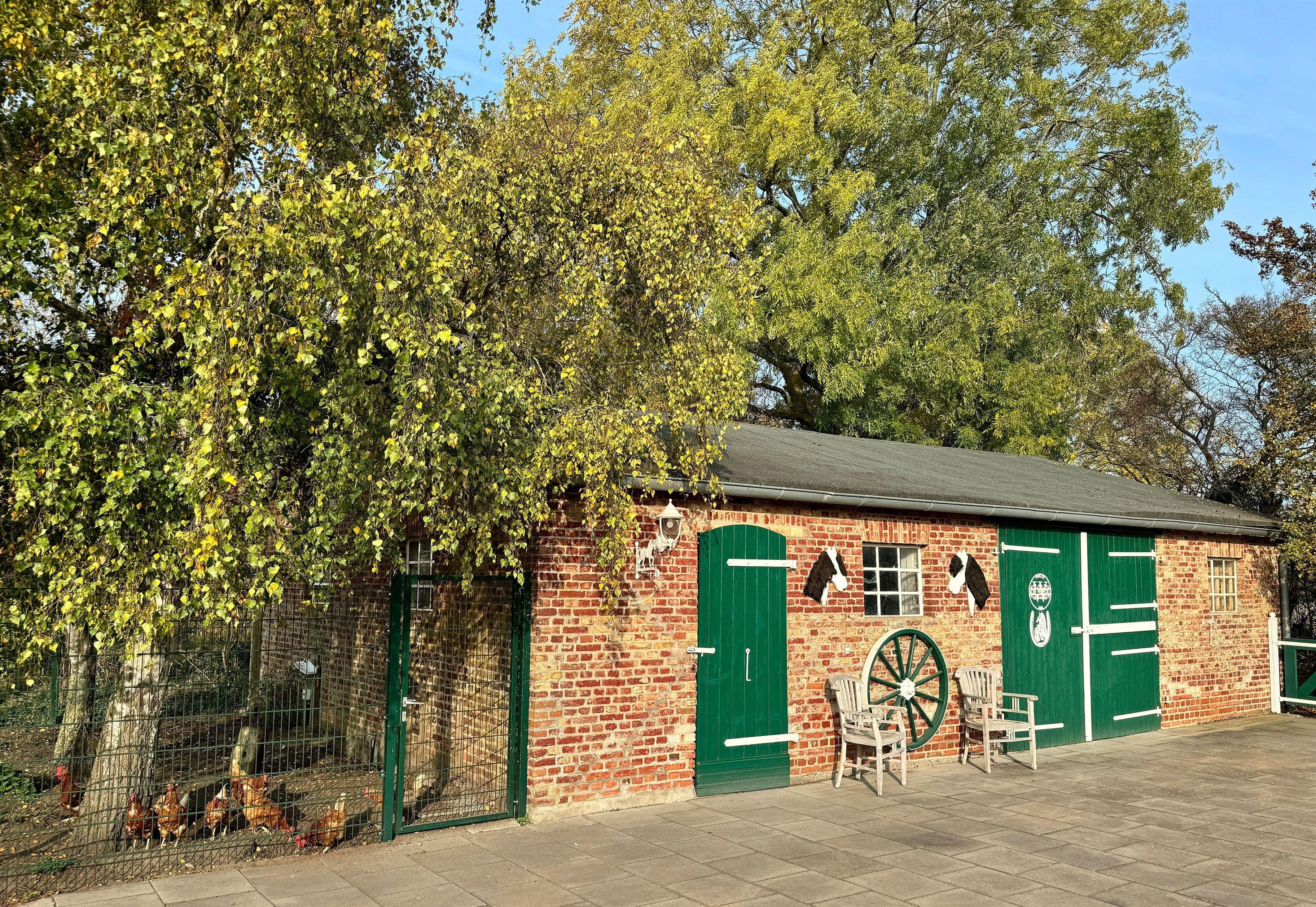 Unser weitläufiger Spielplatz bietet mit Trampolin, Klettergerüst mit Schaukel und Rutsche, Sandkiste, Fußballtor, Tischtennisplatte, Kettcar-Bahn mit Kettcars und weiteren Fahrzeugen, Kletterpyramide sowie dem "Alten Pferdestall", in welchem sich unsere Hühner und ein Hobbyraum mit Tischkicker, Air-Hockey sowie Tischtennis (kostenlos) befinden, Spaß für Groß und Klein. Weiterhin gibt es in der Scheune ein weiteres Spielzimmer für die kleinen Gäste mit Spiel- und Malsachen sowie Büchern. Für unsere großen Gäste gibt es auf dem Spielplatz einen Grillpavillon sowie diverse idyllische Sitzmöglichkeiten.