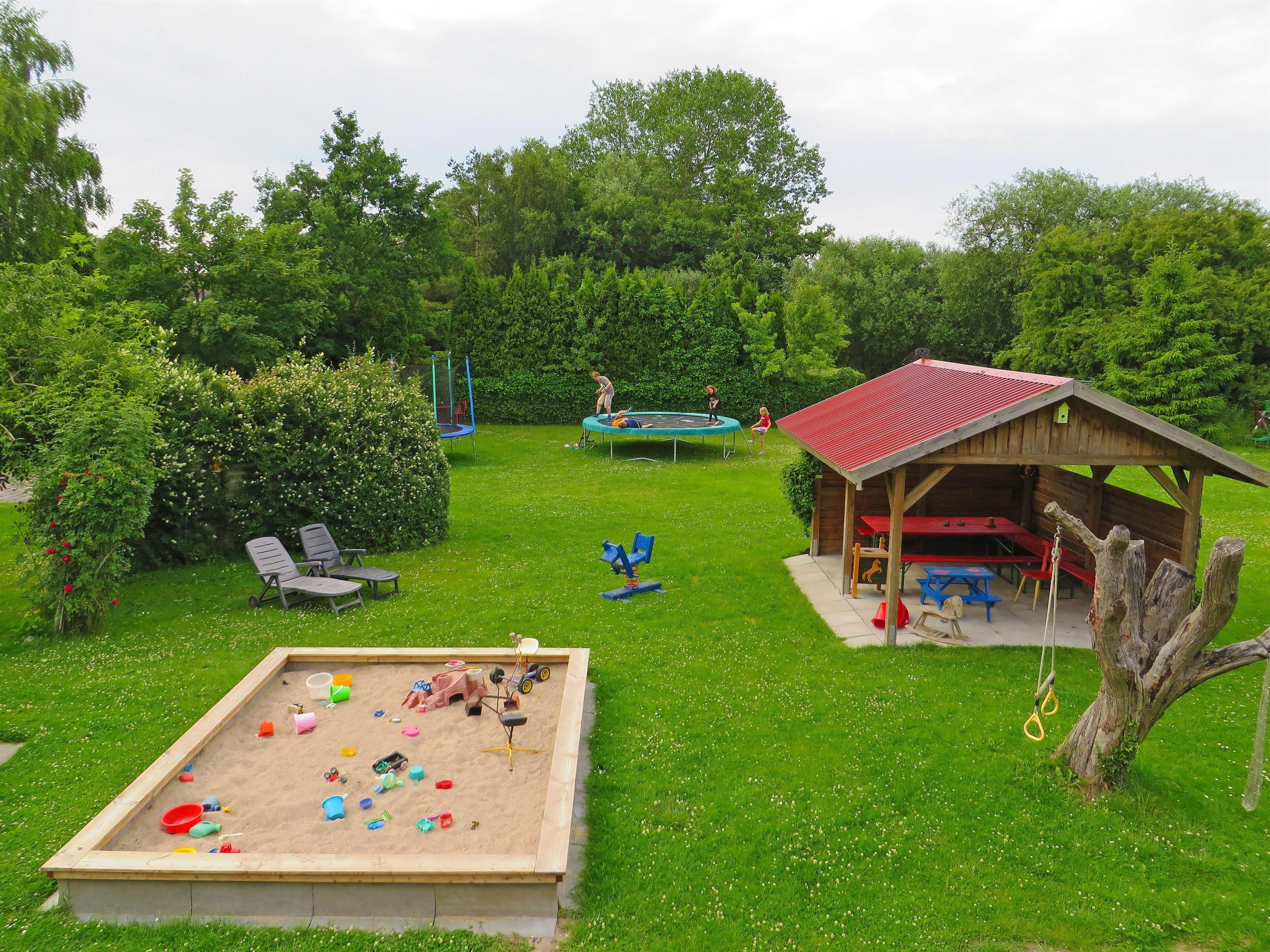 Unser weitläufiger Spielplatz bietet mit Trampolin, Klettergerüst mit Schaukel und Rutsche, Sandkiste, Fußballtor, Tischtennisplatte, Kettcar-Bahn mit Kettcars und weiteren Fahrzeugen, Kletterpyramide sowie dem "Alten Pferdestall", in welchem sich unsere Hühner und ein Hobbyraum mit Tischkicker, Air-Hockey sowie Tischtennis (kostenlos) befinden, Spaß für Groß und Klein. Weiterhin gibt es in der Scheune ein weiteres Spielzimmer für die kleinen Gäste mit Spiel- und Malsachen sowie Büchern. Für unsere großen Gäste gibt es auf dem Spielplatz einen Grillpavillon sowie diverse idyllische Sitzmöglichkeiten.