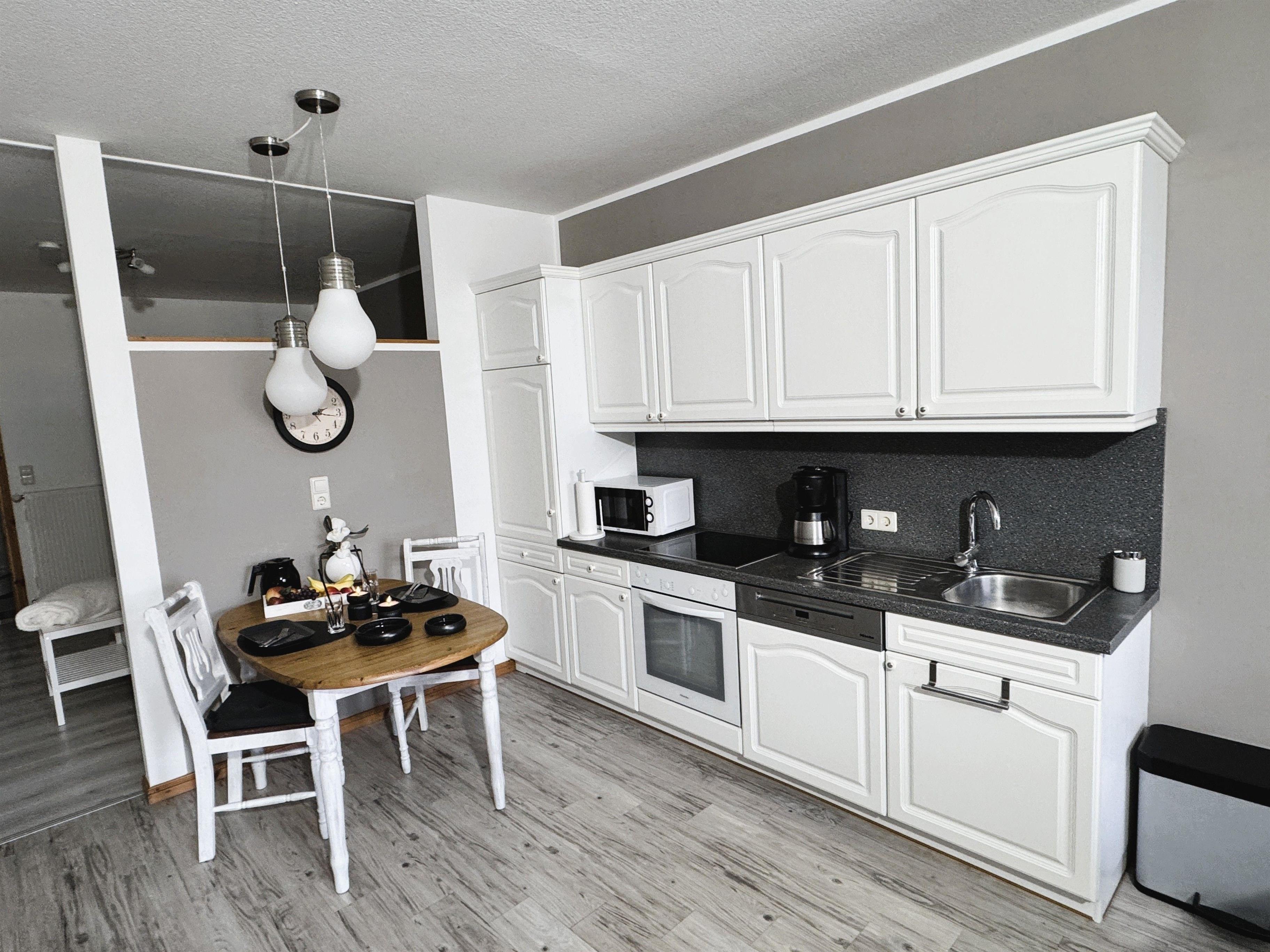 Die Ferienwohnung bietet Ihnen vollen Komfort: auf Sofa und Sessel in der gemütlichen Wohnküche mit heimeligem Essbereich können Sie wunderbar relaxen, Ihren Krimi am Flachbild-TV genießen oder entspannt zu Abend essen und den Tag ausklingen lassen. Gekocht wird in der vollausgestatteten Küche: u.a. Geschirrspüler, Toaster, Mikrowelle, Mixer, Wasserkocher, Kaffeemaschine, Kindergeschirr sowie Flaschenwärmer.