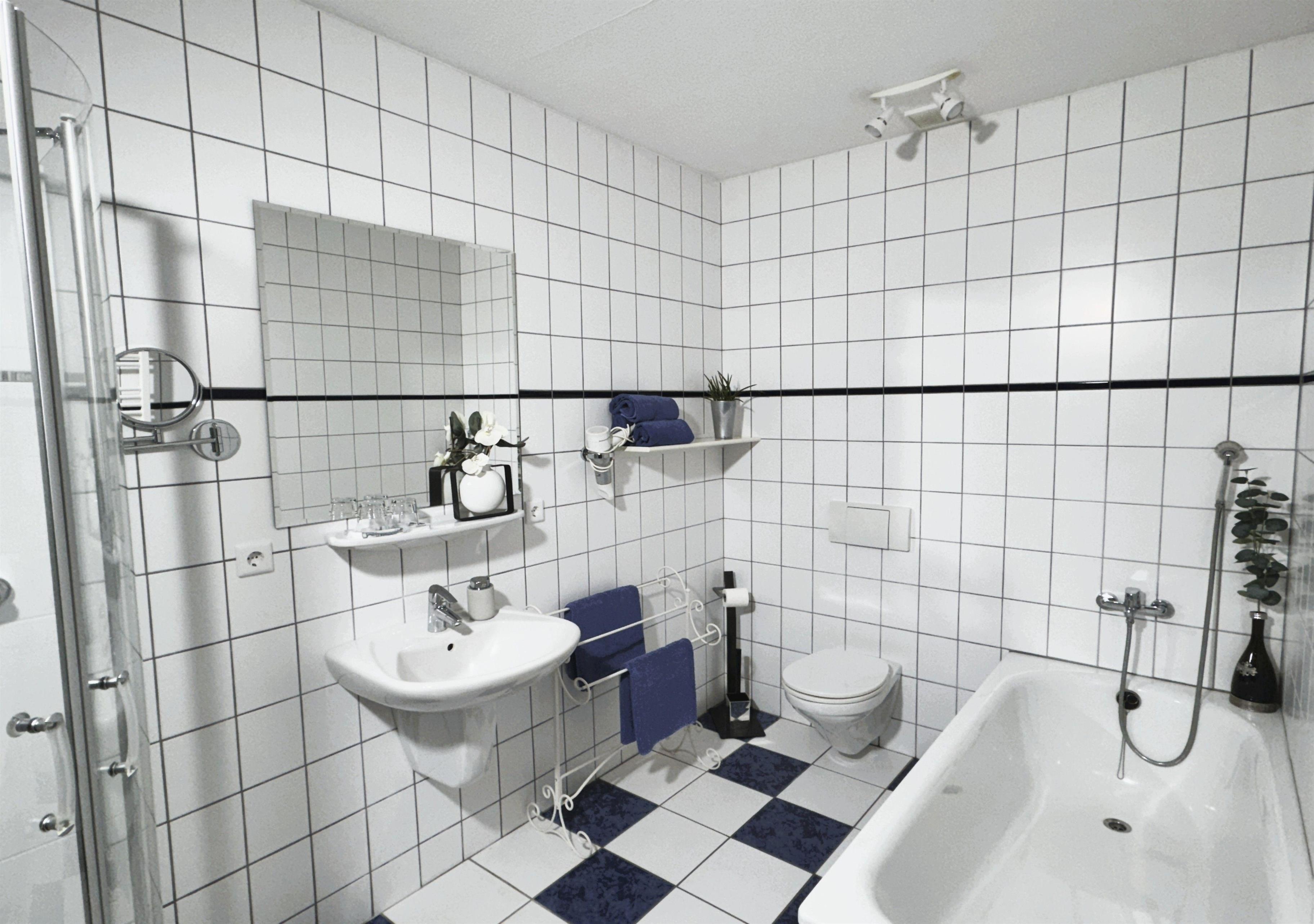 Weiterhin hat die Ferienwohnung ein Badezimmer mit Dusche, Badewanne und einem Waschbecken. In Ihrem offenen Schlafzimmer mit großem Doppelbett (1,80 m x 2,00 m) und geräumigen Kleiderschrank können Sie erholsame Nächte genießen. W-Lan steht Ihnen in der gesamten Ferienwohnung kostenlos zur Verfügung. Ein kostenloser Safe ist ebenfalls vorhanden.