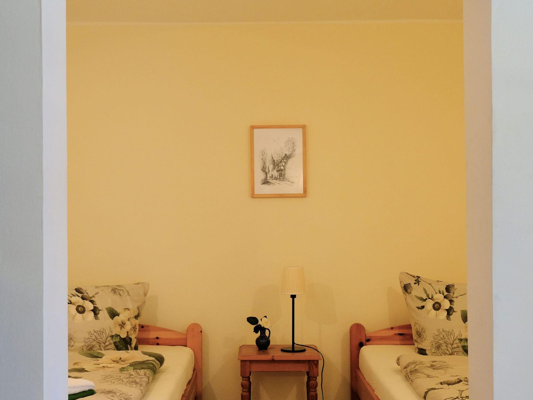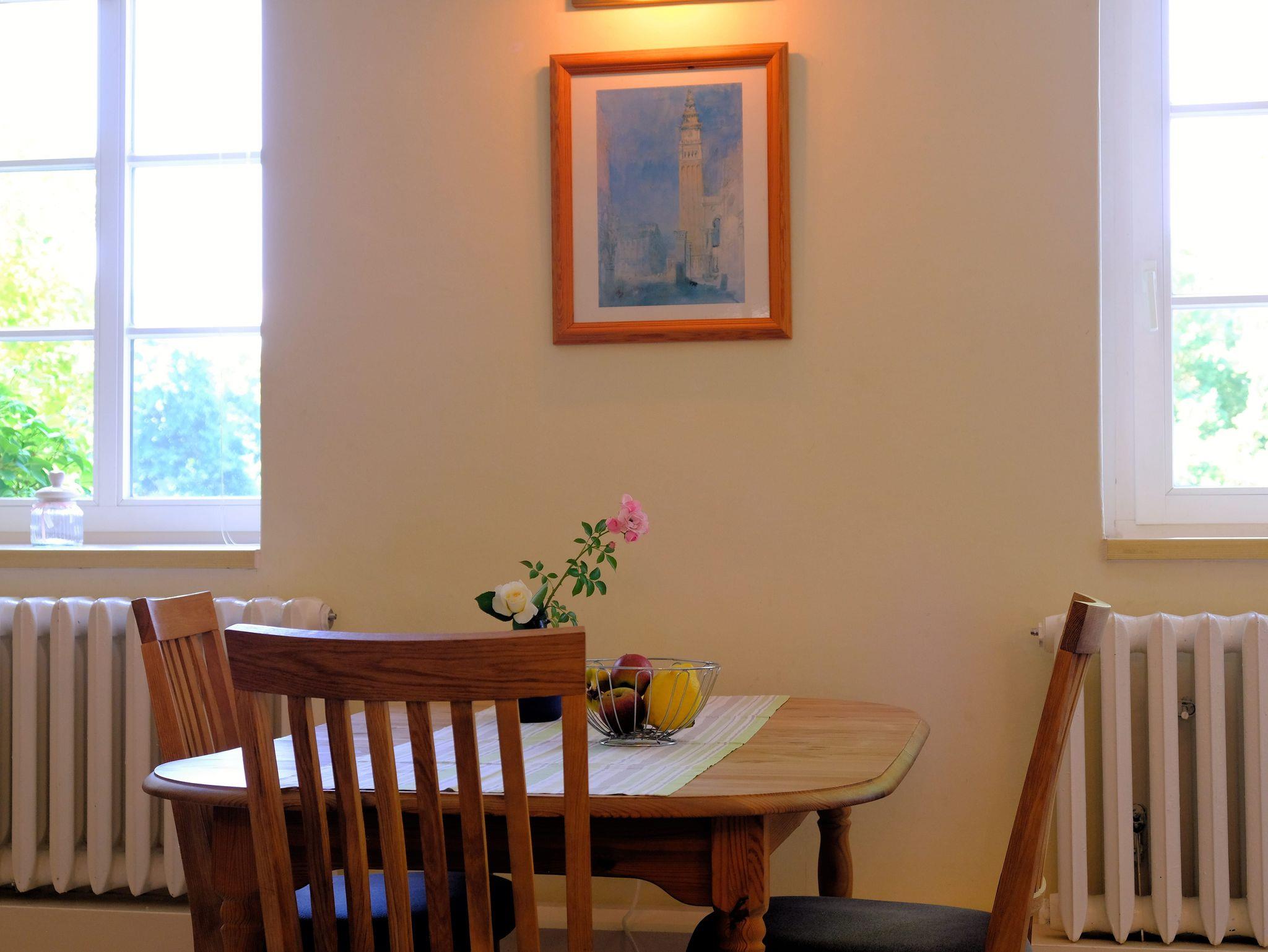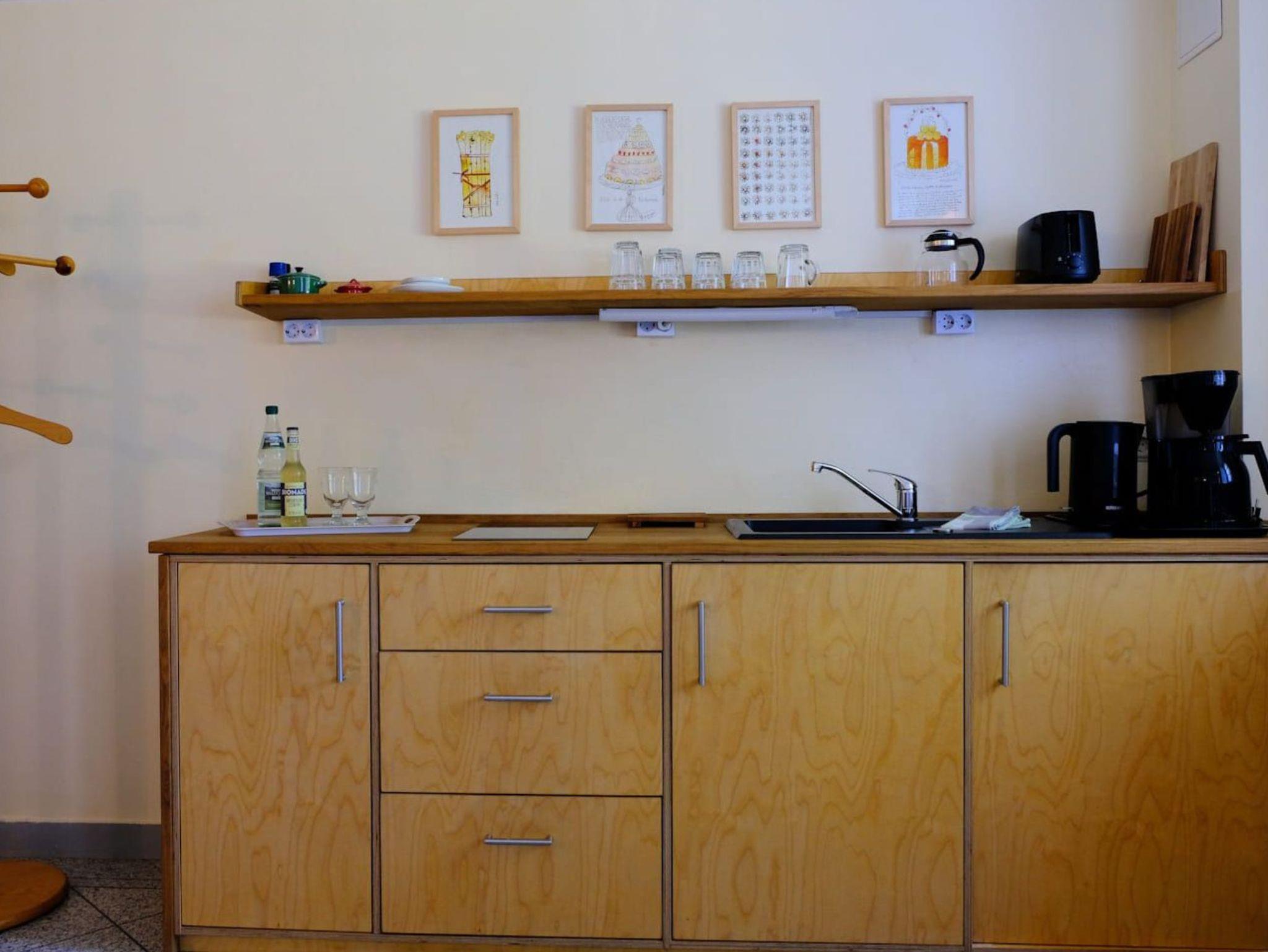 Ferienwohnung mit großem Wohnraum und Schlafnische für 2 Personen (1 Aufbettung ist möglich). Kleine Kochzeile, extra lange Betten mit hochwertigen Matratzen, Bad mit Dusche und WC stehen Ihnen zur Verfügung. Die Ferienwohnung ist nach Süden, zum Park gelegen und befindet sich in der Tiefparterre.