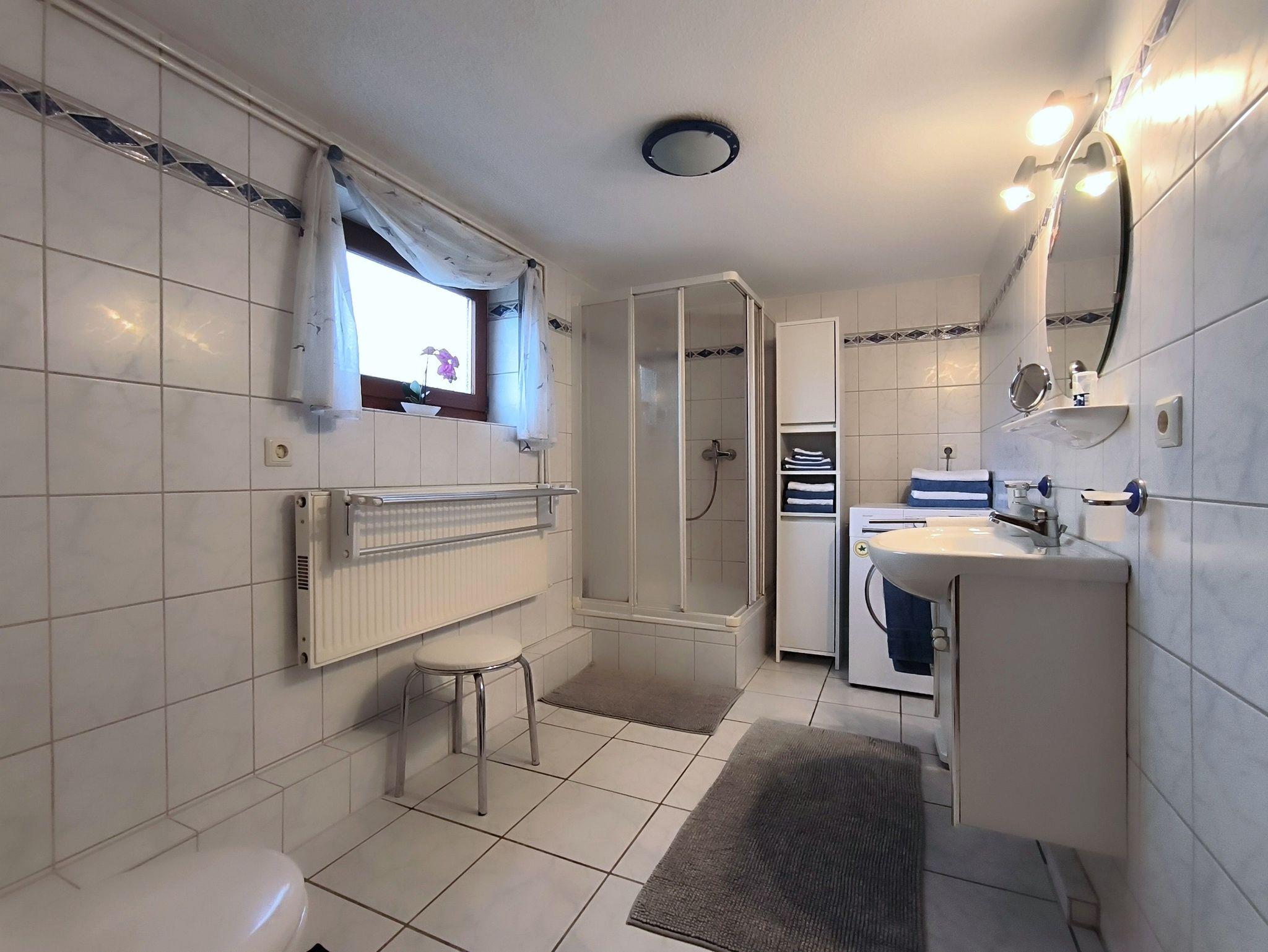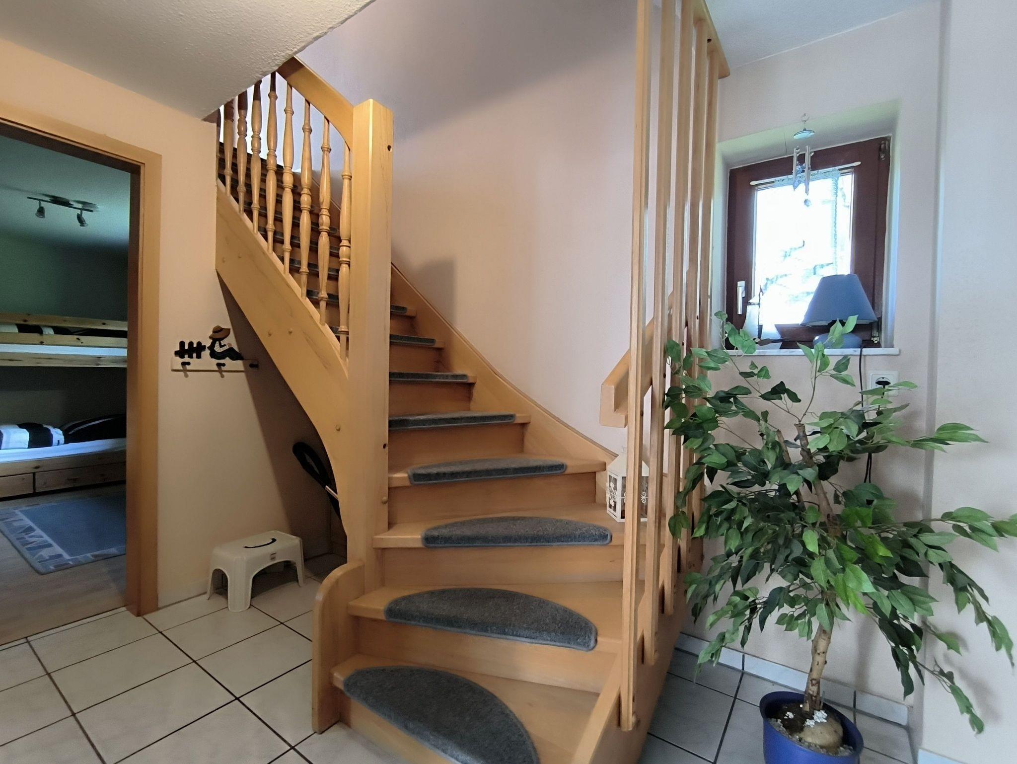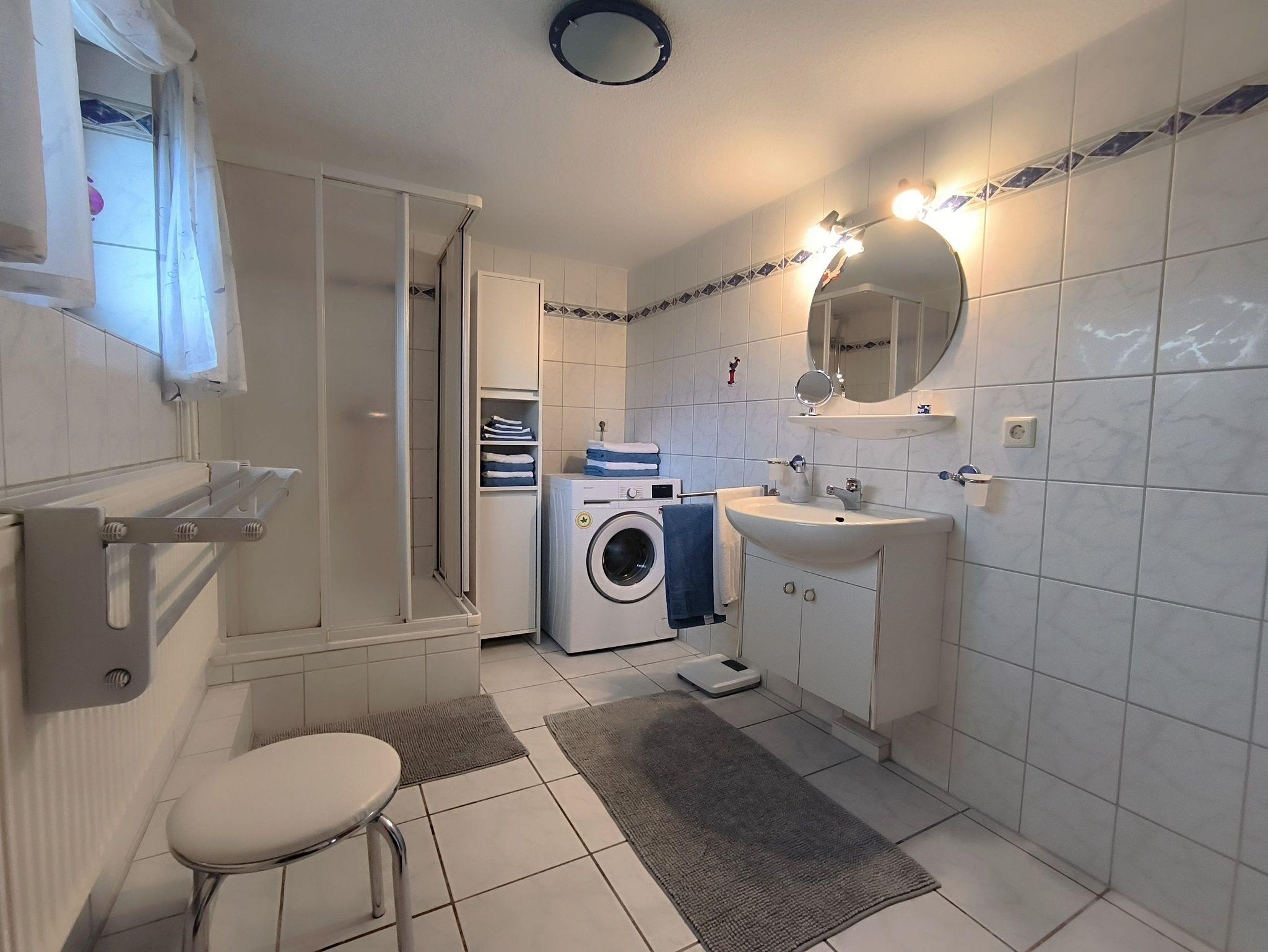Die gemütliche und helle Souterrain-Ferienwohnung im Haus Kampen erstreckt sich über zwei Etagen auf 90qm in einem Einfamilienhaus im Bollingstedter Ortsteil Gammellund. Im ebenerdigen Soutterain befinden sich ein Schlafzimmer mit Etagenbett, eine gut ausgestattete Küche mit einer Essecke und einer kleinen Speisekammer sowie das geräumige helle Duschbad mit Waschmaschine und Trockner. Über die Treppe geht es hinauf ins Erdgeschoss mit schönem Ausblick in den Garten - hier befinden sich das Wohnzimmer mit bequemen Sitzmöbeln und ein Schlafzimmer mit Doppelbett und anliegendem WC. Die Ferienwohnung hat einen getrennten Eingang vom Innenhof des Hauses aus: Der sonnige Innenhof und der Garten sind mit Gartenmöbeln ausgestattet und dürfen von den Gästen genutzt werden. Am Haus befindet sich eine 3,5 kw - Steckdose zum Laden von E-Autos (das spezielle Ladekabel muss mitgebracht werden).