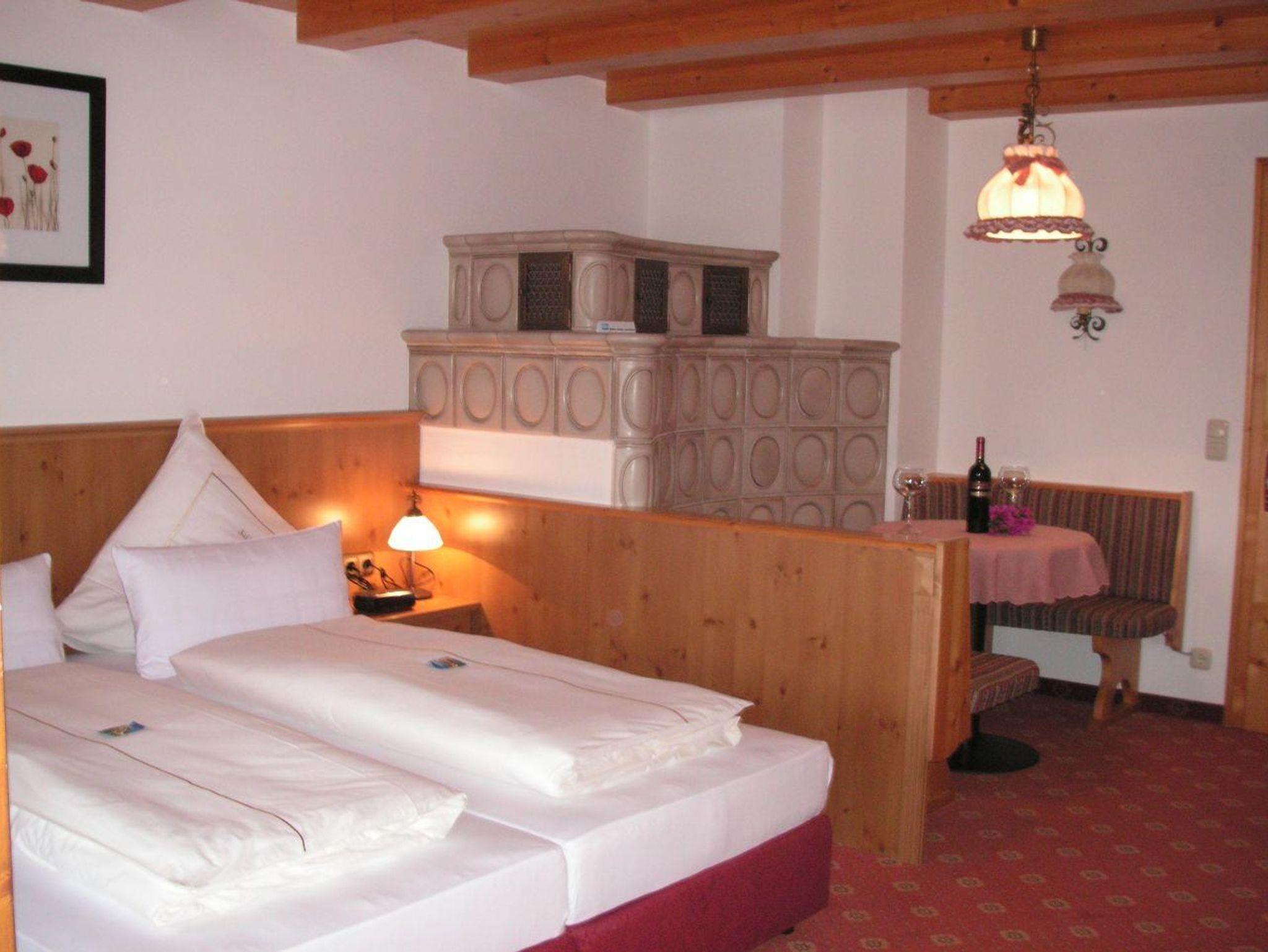 Dieses Zimmer mit Terrasse ist ca. 30qm groß und komfortabel eingerichtet. Neben einer Tee-/Kaffeestation sowie Minibar verfügt es auch über eine gemütliche Sitzecke am Kachelofen, Bademäntel und einen DVD-Player. Ideal für lange Aufenthalte sowie anspruchsvolle Gäste. Bad mit Dusche/WC und Fön.