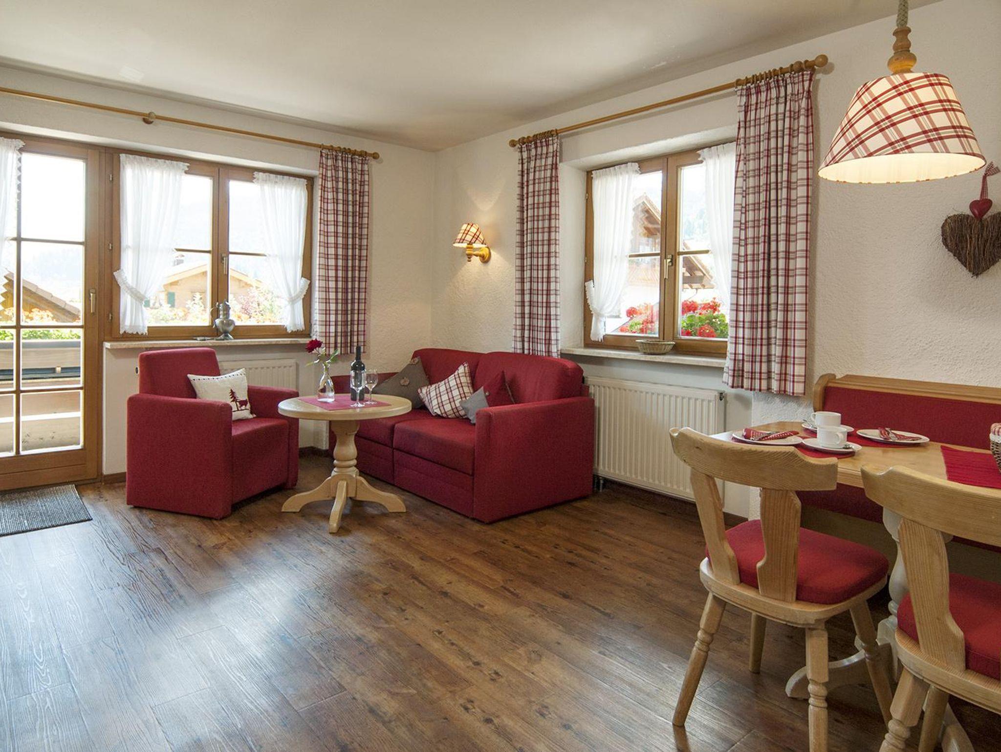 Die Wohnung ist in trendig, alpenländischem Stil eingerichtet und mit einer leichten Dachschräge sehr gemütlich. Spülmachine, Mikrowelle, Flachbildschirm, Radio und W-LAN.