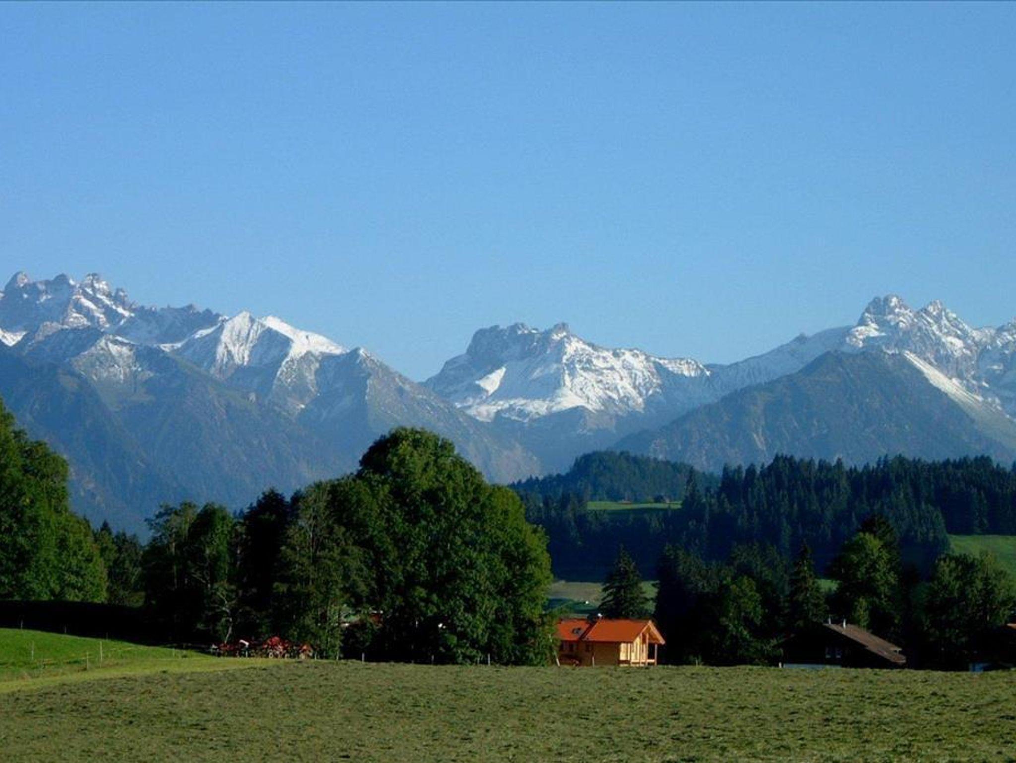 Von der Ferienwohnung haben Sie Zugang zu zwei Balkonen mit uneingeschränktem Blick in Richtung Süden zum Allgäuer Hochalpenkamm.
