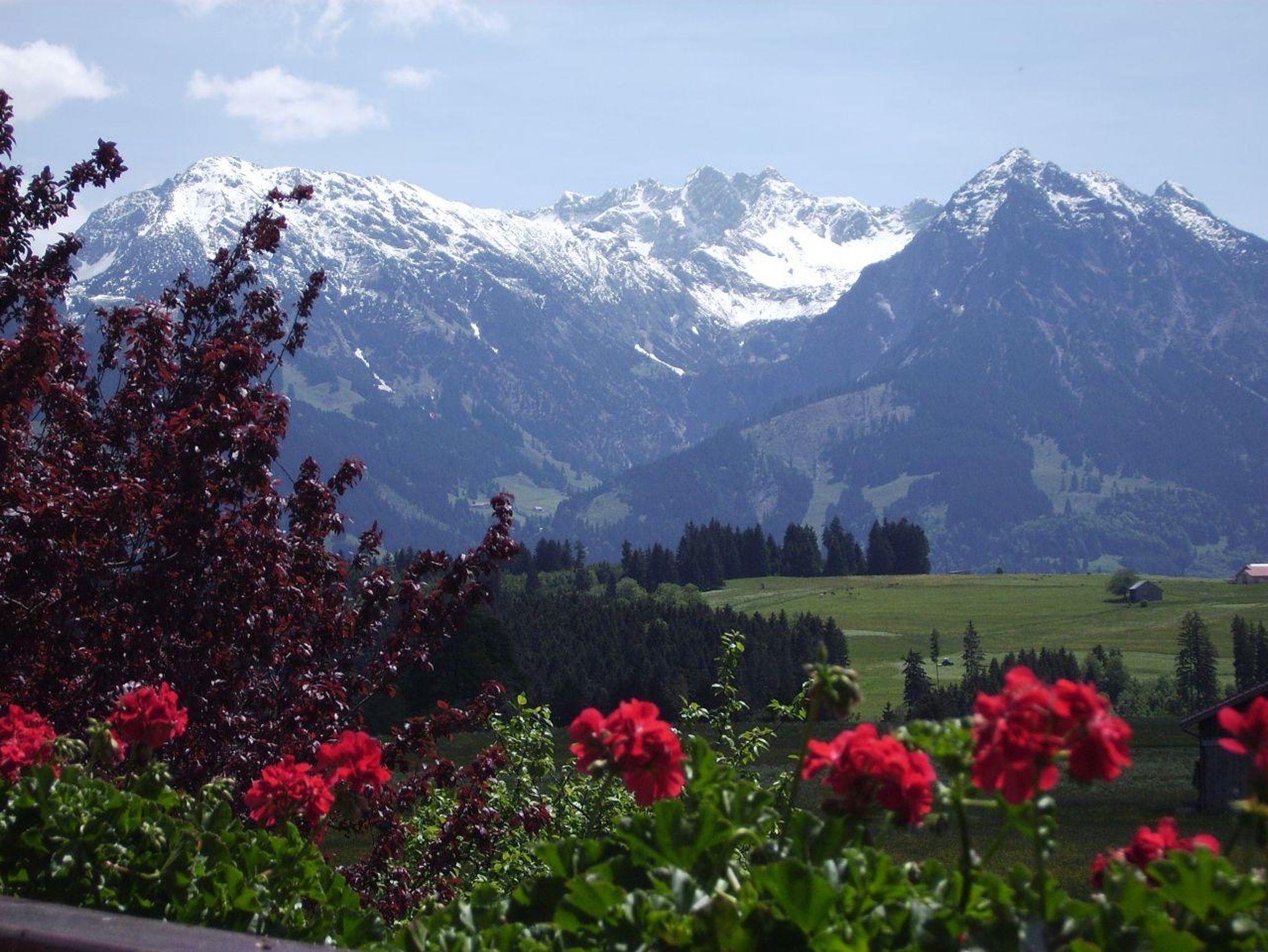 Die Wohnnung liegt im Dachgeschoß mit einem großen Südbalkon und fantastischem Blick auf die Allgäuer Berge.