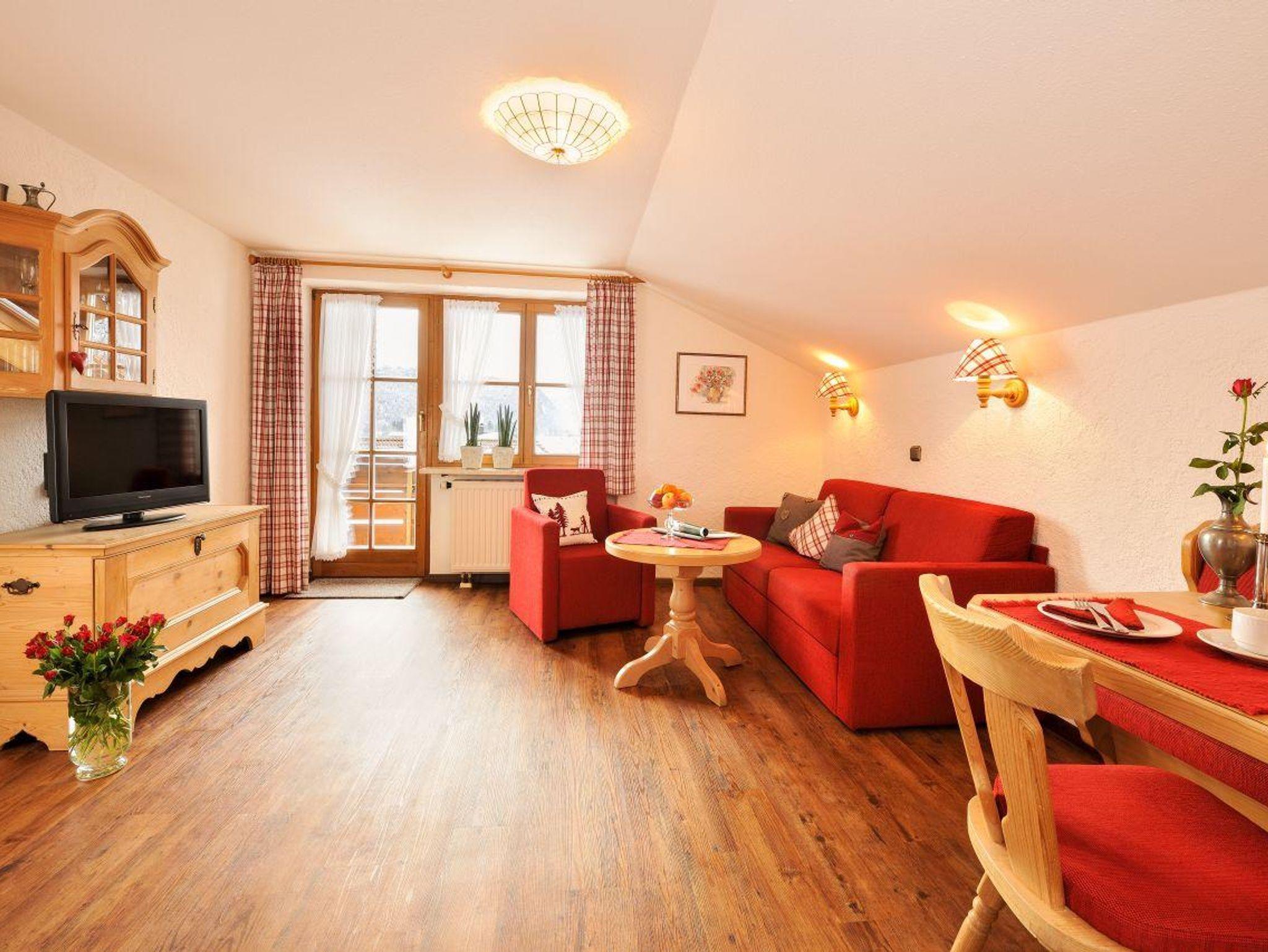 Die Wohnung ist in trendig, alpenländischem Stil eingerichtet. Sie haben in der Wohnung Spülmaschine, Edelstahl Mikrowelle mit Pizzafunktion, Flachbildschirm, Radio mit CD und W-LAN.