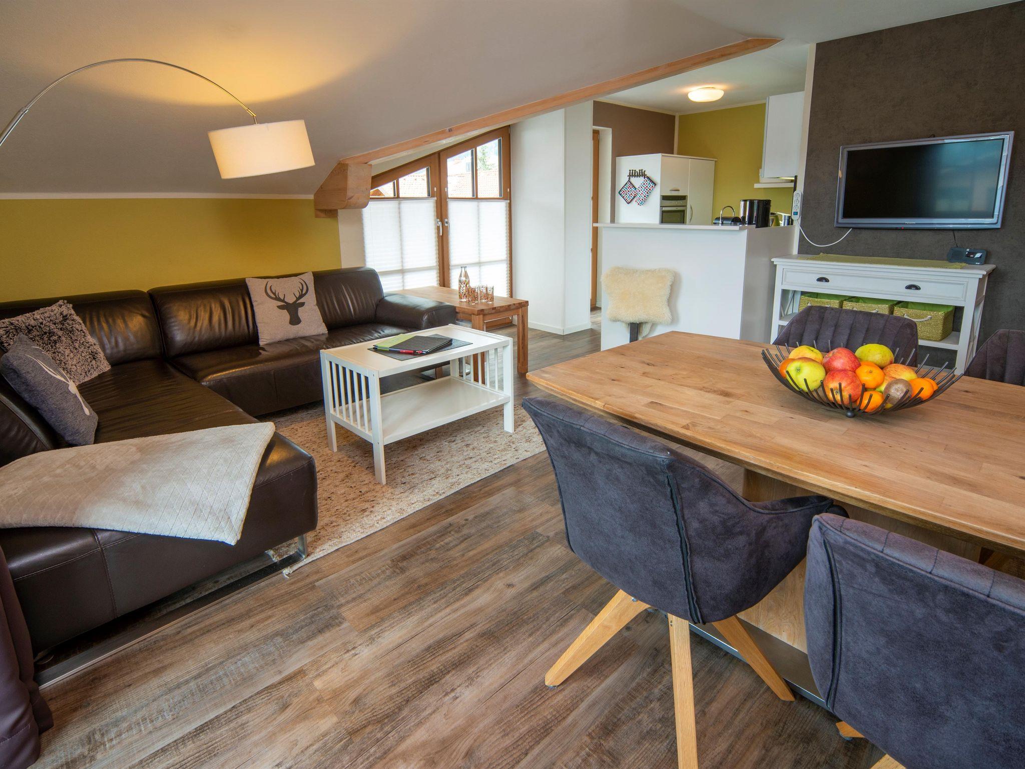 Die 3-Raum-Suite Morgensonne liegt im DG und verfügt über 80 qm moderne Gemütlichkeit.