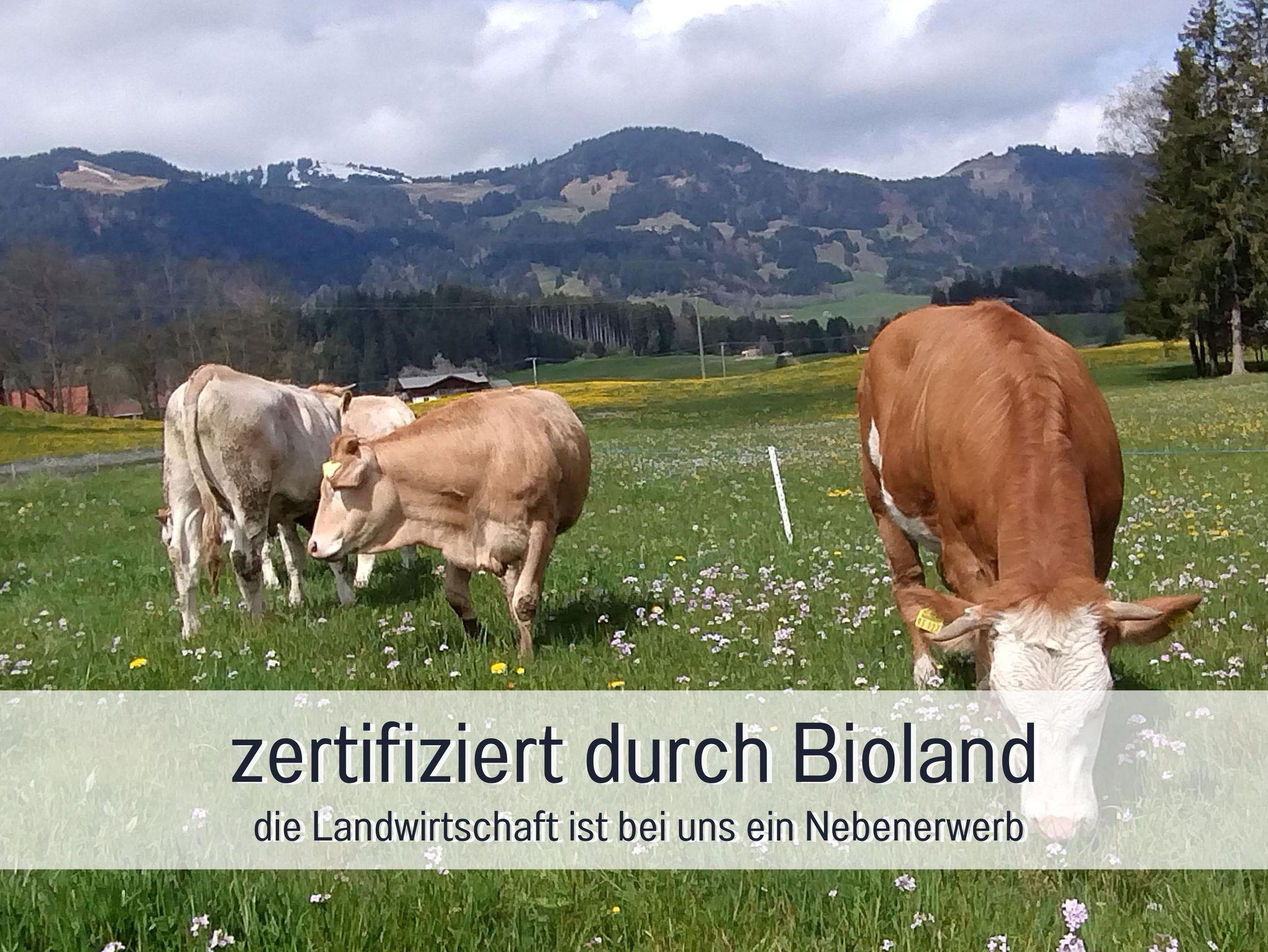 Unsere Bio-Landwirtschaft betreiben wir im Nebenerwerb und halten Mutterkühe. Der Stall ist nur wenige Geh-Minuten von der Hofstelle entfernt.