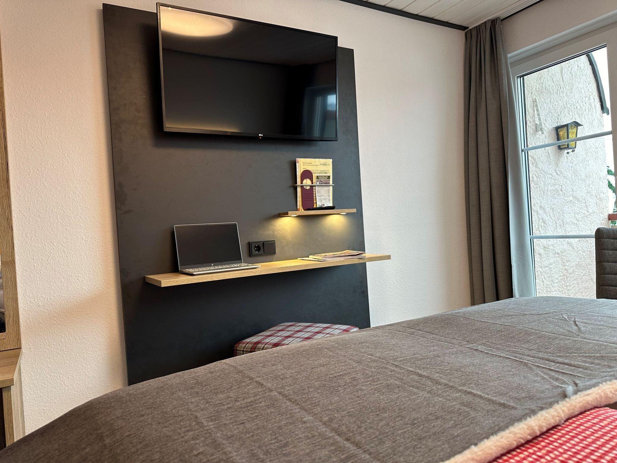 Unsere Standard-Doppelzimmer mit Balkon (Nr. 3, 4, 5, 7) liegen alle im 1. OG des Haupthauses und sind ca. 18qm groß. Sie verfügen über ein Badezimmer mit Dusche/WC, Fön, Minibar, Sat-TV, Radiowecker und Sitzgelegenheit.