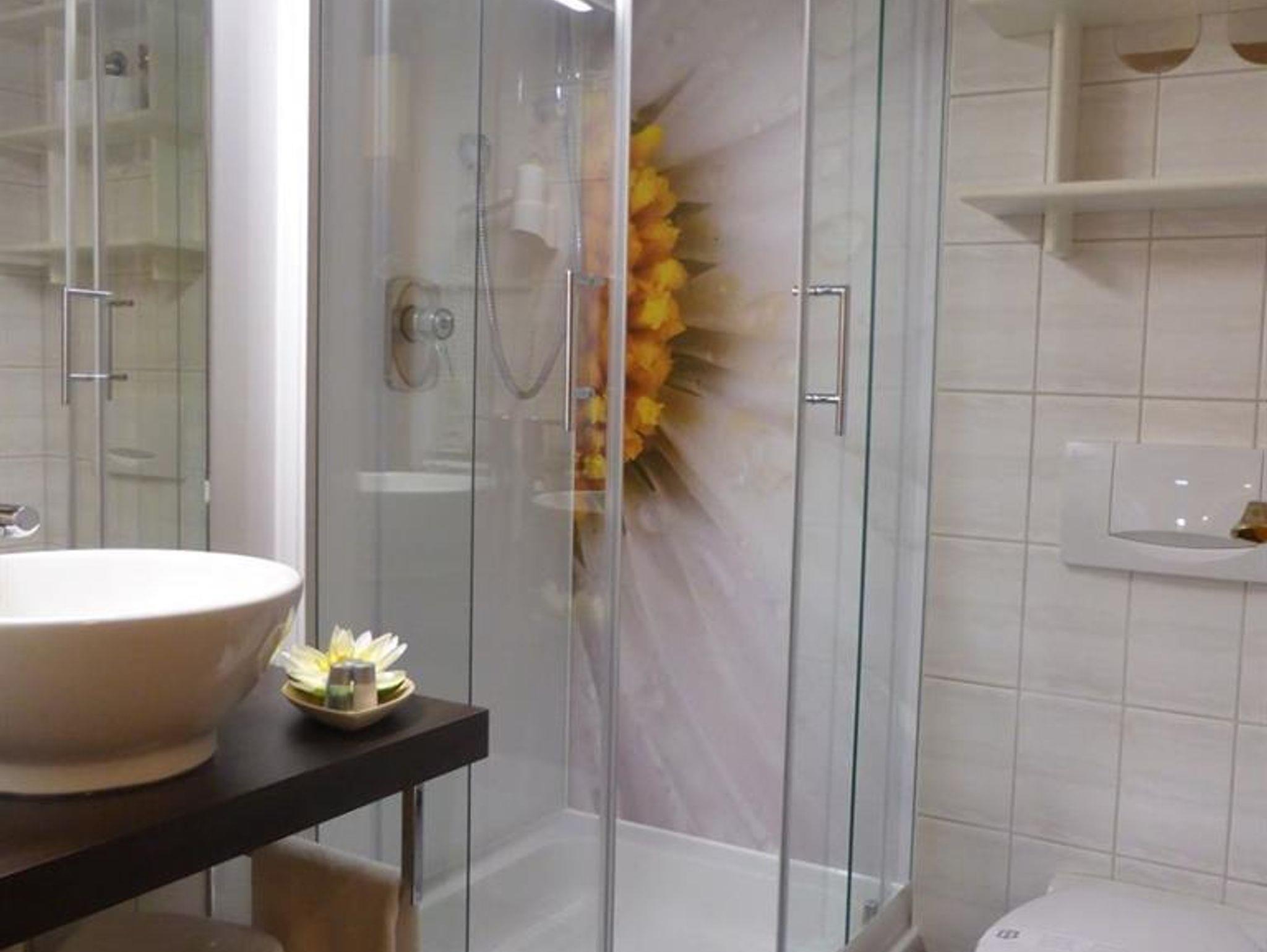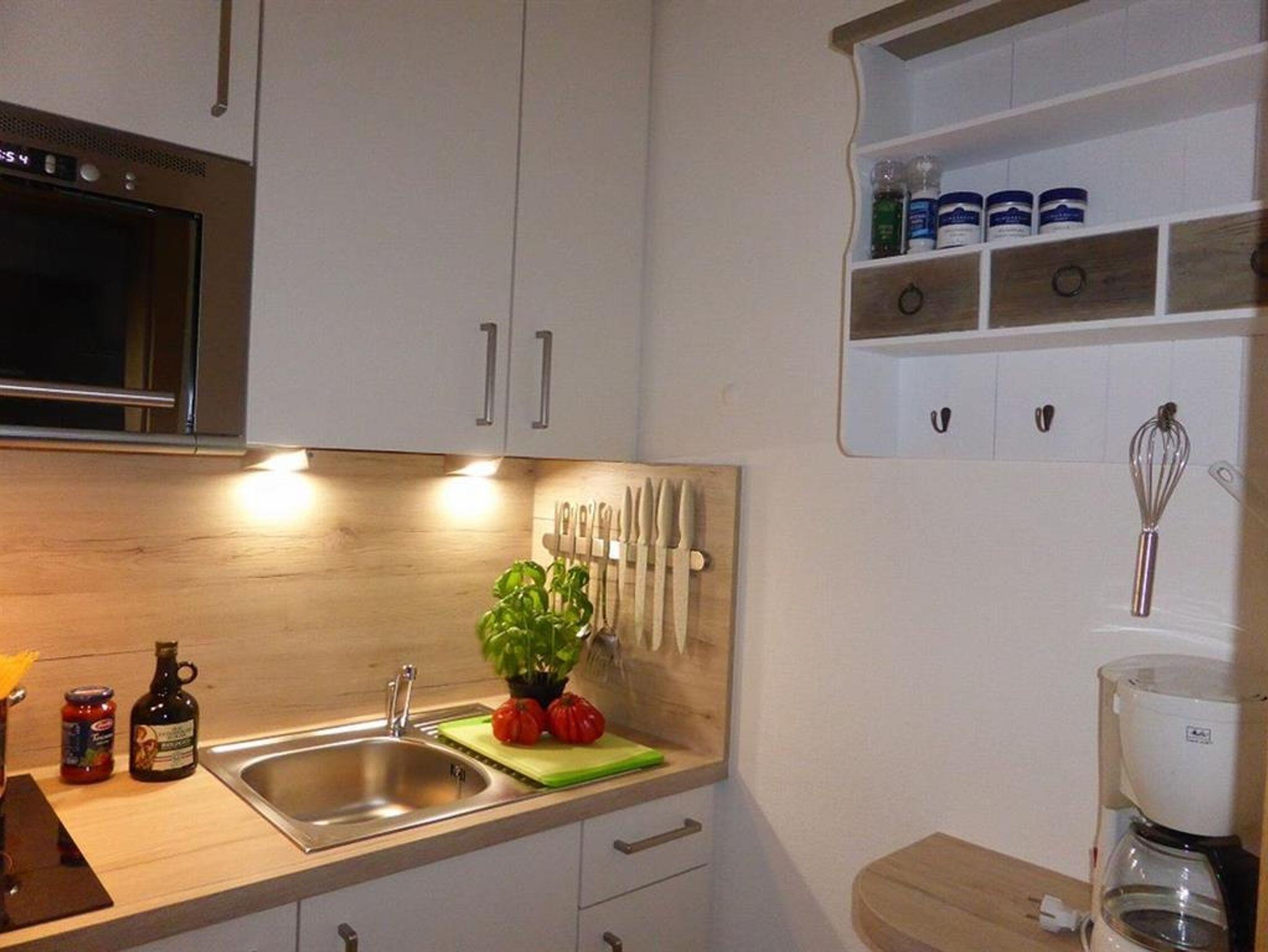 2-Raum-Appartement mit ca. 50qm im Erdgeschoß für ein bis vier Personen. Das Appartement verfügt über ein Bad mit Dusche/WC sowie einen Fön, separate Küche mit Microwelle, Balkon, 2x Sat-TV und Compact-Anlage/Radio. Schlafmöglichkeit für dritte und vierte Person auf einer hochwertigen Stockbettschlafcouch (1 x 82cmx190cm (oben) und 1 x 82cmx180cm (unten)).