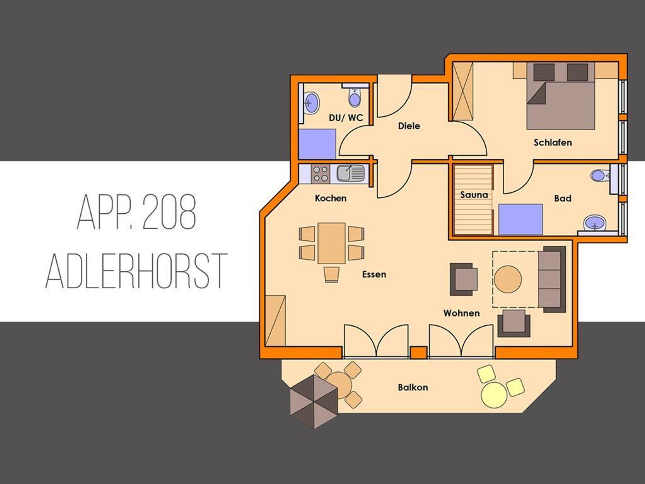 Das App: 208 (... mit Personen-Aufzug & barrierefrei)70 qm, im modernen Landhausstil ausgestattet, liegt im 3. Stock mit Süd-Ost-Balkon und freiem Blick auf die Oberallgäuer Bergwelt. Wohnzimmer mit Designboden, Sitzecke, Flachbild-TV, gemütliche Essecke und komplett ausgestattete Küche mit allem Komfort. Schlafzimmer mit Doppelbett, Bad mit DU/WC & integrierter Sauna im App. Mit 4 Pers. belegbar. Haustiere sind in dieser Wohnung nicht erlaubt.