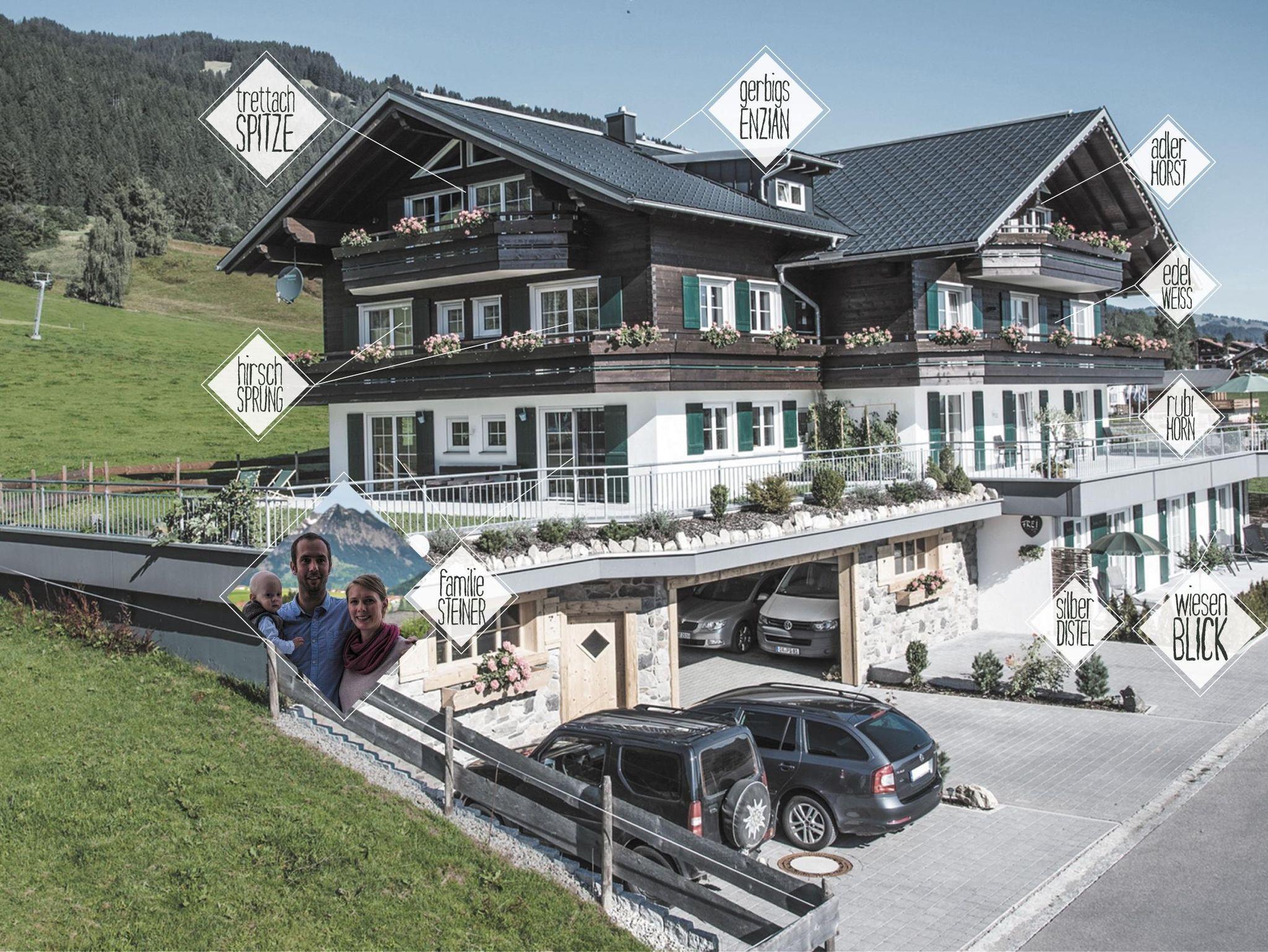 In Sonderdorf, einem urgemütlichen Ortsteil des Bergdorfs Bolsterlang, liegt unser neues Alpenhaus. Die Atmosphäre wird geprägt von wohltuender Gastlichkeit und dem herrlichen Ausblick auf Berge, Wiesen und Wälder. Alle Wohnungen sind mit kompletter Küche, Balkon oder Terrasse, WLan und Sat-TV ausgestattet, 4 davon sind mit einer Sauna im Appartement.