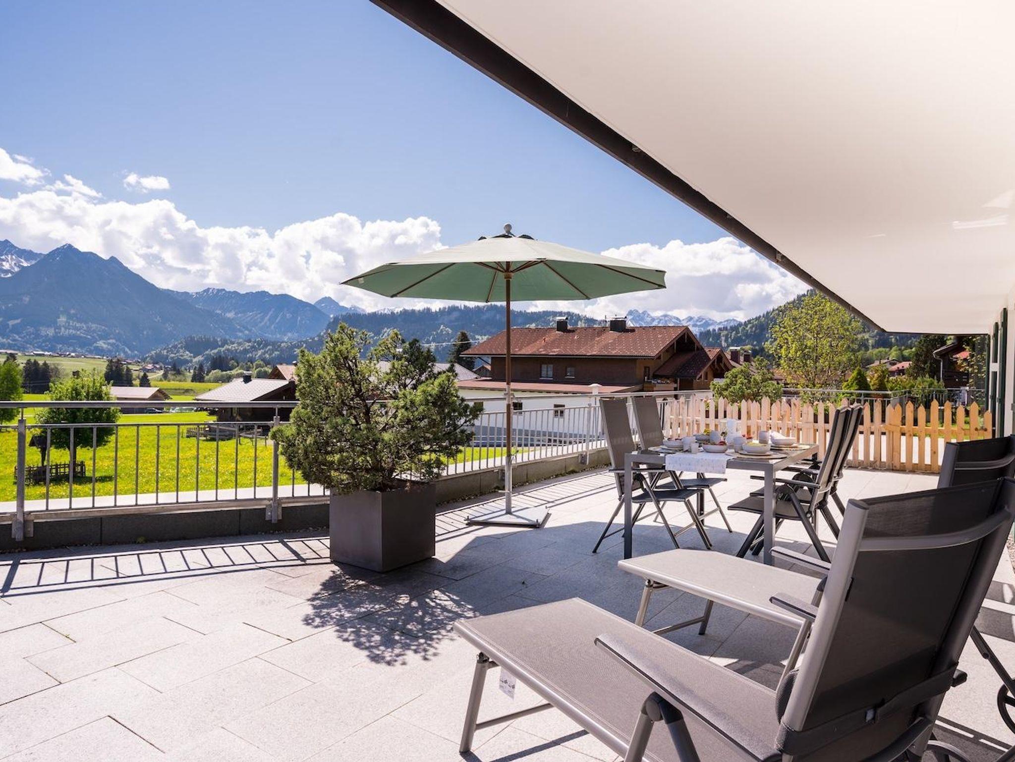 Das Appartement 203 / 80qm, im modernen Landhausstil ausgestattet, Designböden, im 1.OG mit Süd-Ost-Terrasse und freiem Blick auf die Oberallgäuer Bergwelt! Wohnzimmer mit Sitzecke, Flachbild-TV, gemütliche Essecke und komplett ausgestattete Küche mit allem Komfort. 2 Schlafzimmer mit Doppelbetten, 2 x Bad, Dusche/WC & integrierter Sauna im Appartement. Belegung mit 5 Pers. möglich. Haustiere sind in dieser Wohnung nicht erlaubt.