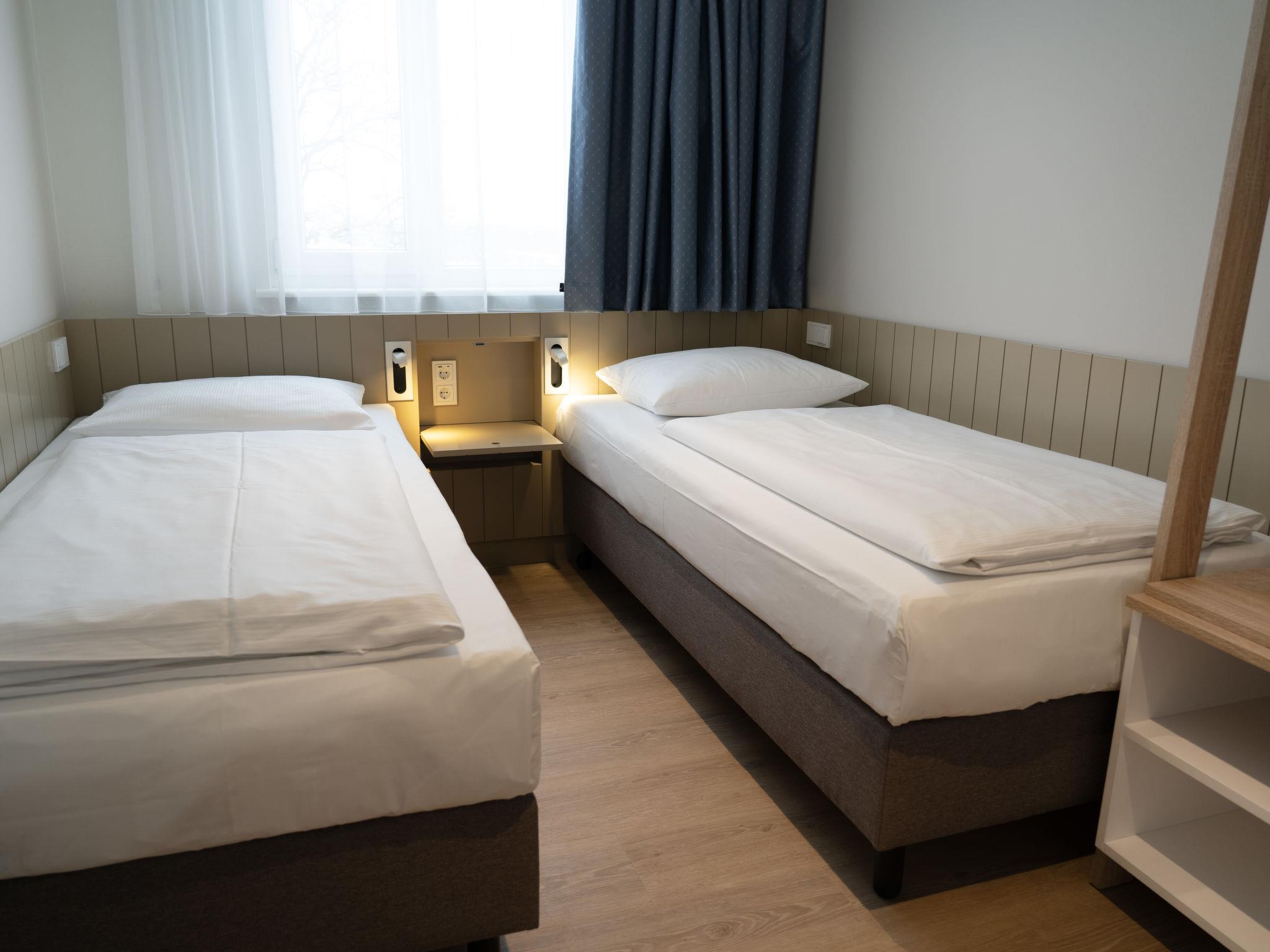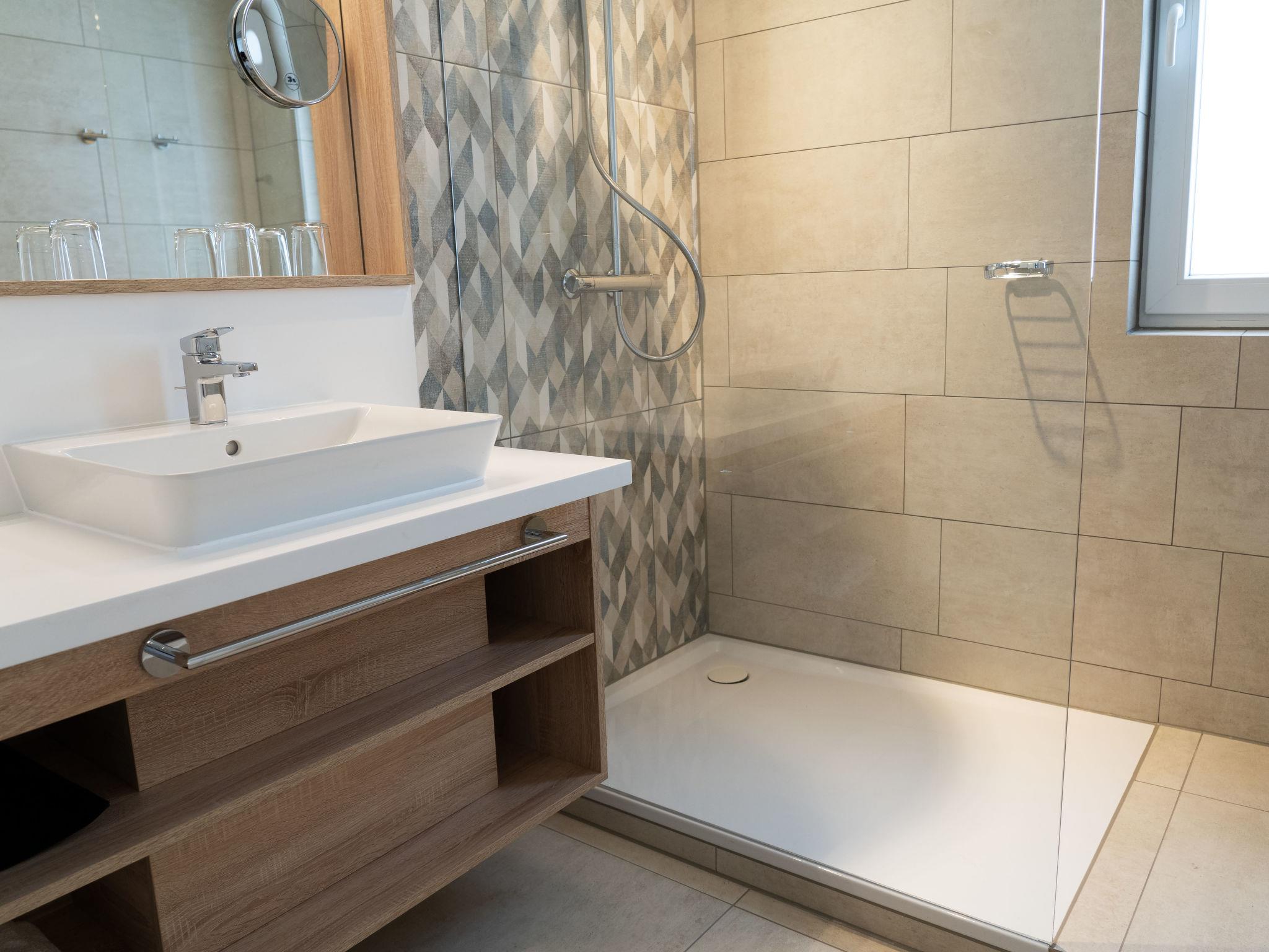 "App. Typ 2", 3-room apartment 57 m2. Modern and cosy furnishings: living/sleeping room with 1 double sofabed (160 cm, length 200 cm), dining table and satellite TV (flat screen). Exit to the balcony, to the terrace. 1 room with 1 double bed (180 cm, length 200 cm). 1 room with 2 beds (90 cm, length 200 cm). Kitchenette (oven, dishwasher, toaster, kettle, microwave, freezer, electric coffee machine) with dining table. Shower, sep. WC. Electric heating. Balcony or terrace. Terrace furniture, balcony furniture. Beautiful view of the sea. Facilities: children's high chair, baby cot. Internet (WiFi, free). Parking (extra, 1 car). Please note: suitable for families. Non-smokers only. Smoke alarm. Free extra bed for 5th and 6th person on the sofa bed possible for children up to 12 years (request).