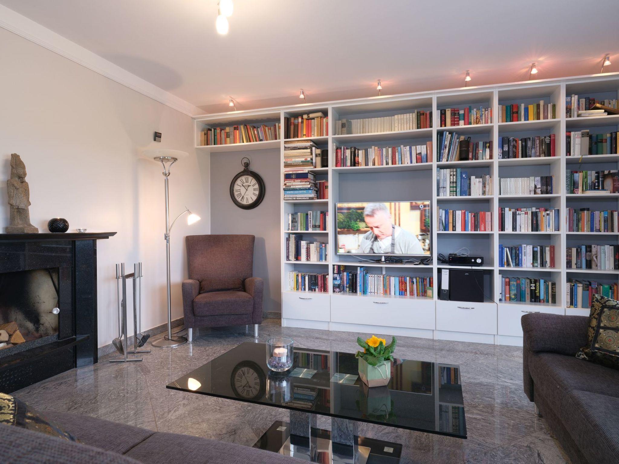 Within the elegant entrance area, the spacious, open-plan living/dining room of approx. 50 square metres opens up with an open fireplace, surrounded by antiques and an extensive international library. A brand new kitchen with granite worktops and a bar counter invites you to prepare extensive menus. The interior is complemented by a modern bathroom with experience showers, a separate WC, the wellness area with sauna and a utility room. The villa also offers three luxurious and individually designed, spacious bedrooms, equipped with an additional seating area, TV and two of them with direct access to the south-west-facing balcony, as well as a separate office area with fibre optic network access in two of the bedrooms.