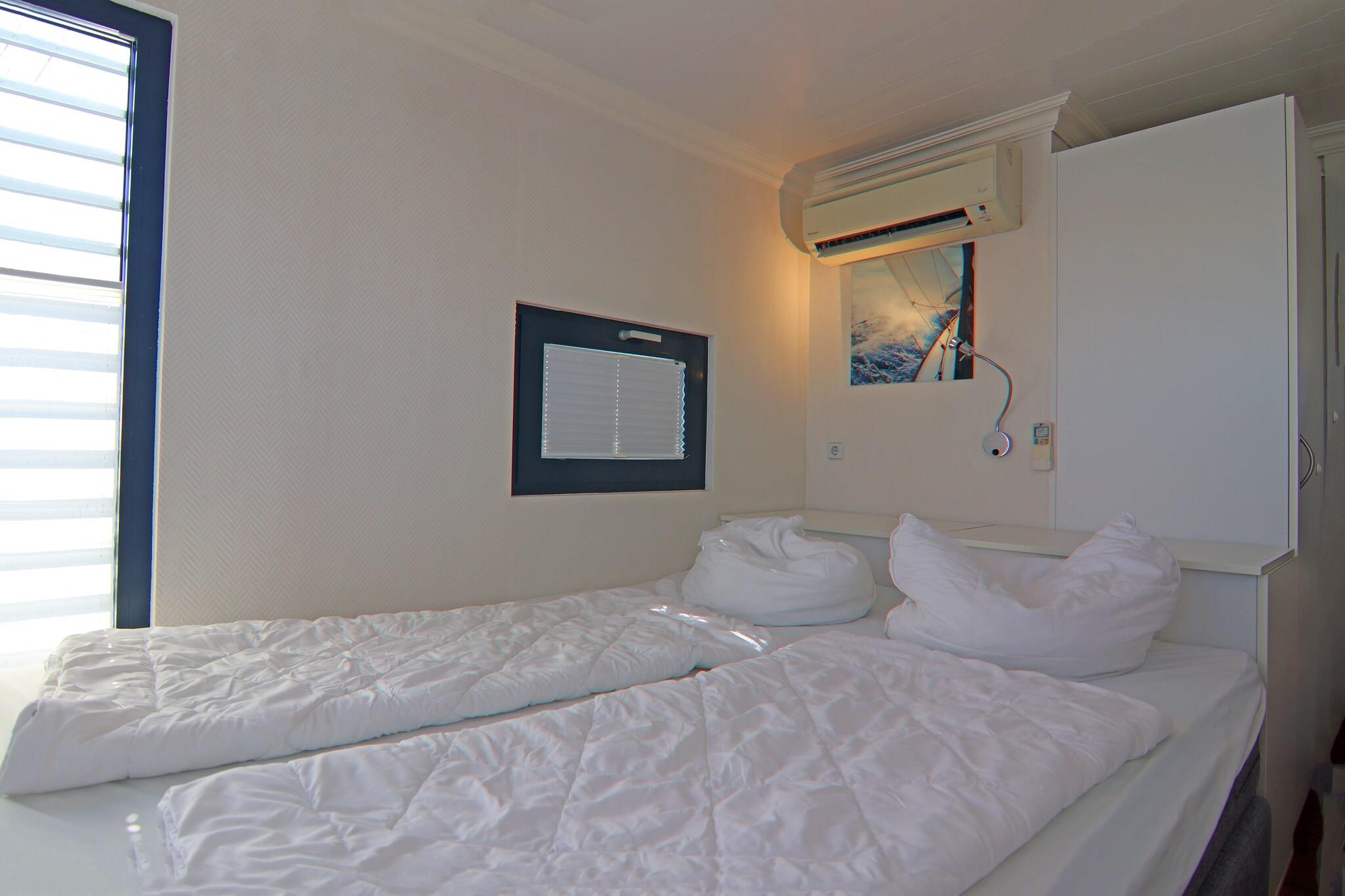 Nyd din ferie på en husbåd med hele familien eller sæt farten ned med gode venner – langt væk fra stress og hverdag. Denne indbydende husbåd (ingen licens påkrævet) er et flydende feriehus og har sin faste, stationære kaj ved Østersøen i Marina Boltenhagen i Weißen Wiek. Folk kan godt lide at tilbringe deres ferie her, hvis de elsker havet og stranden. Du kan være på vandet og stadig være tæt på fastlandet. Frem for alt betyder ferie på en husbåd at være direkte og i harmoni med naturen. Når vejret er godt, kan du nyde solen på den hyggelige terrasse eller på din egen solterrasse. På køligere dage tilbyder den klimatiserede og komfortabelt møblerede husbåd med sine 3 indvendige værelser alle gæster masser af muligheder for at trække sig tilbage. Der er et badeværelse med separat toilet. Derudover sikrer opvarmningen en hyggelig atmosfære ombord selv på kolde dage. Glasfacaderne i opholds- og spiseafdelingen oversvømmer indretningen med tilstrækkeligt dagslys, hvilket øger følelsen af frihed og nærhed til naturen, men kan til enhver tid skygges efter behov. Højdepunkter inkluderet: WiFi, alle forbrugsbaserede energiomkostninger Aktiviteter i nærheden: Boltenhagen ligger med sine velholdte strande på en af de smukkeste kyststrækninger ved Østersøen. Udflugtsbåde afgår fra molen i Boltenhagen og sætter kursen mod øen Poel, Wismar og forskellige steder på den slesvig-holstenske kyst. I sommerfugleparken Klütz kan du beundre mange forskellige typer tropiske sommerfugle. Hvis vejret ikke spiller med, skal du blot besøge Wonnemar-eventyrbadet i Wismar, omkring 11 kilometer væk. Wismar er ikke kun en hansestad, men også en UNESCO World Heritage Site. Karakteriseret af havnen og fiskeriet, nænsomt restaurerede byhuse, markedsplads og mange caféer og restauranter, er den livlige by en vidunderlig destination for unge og gamle.