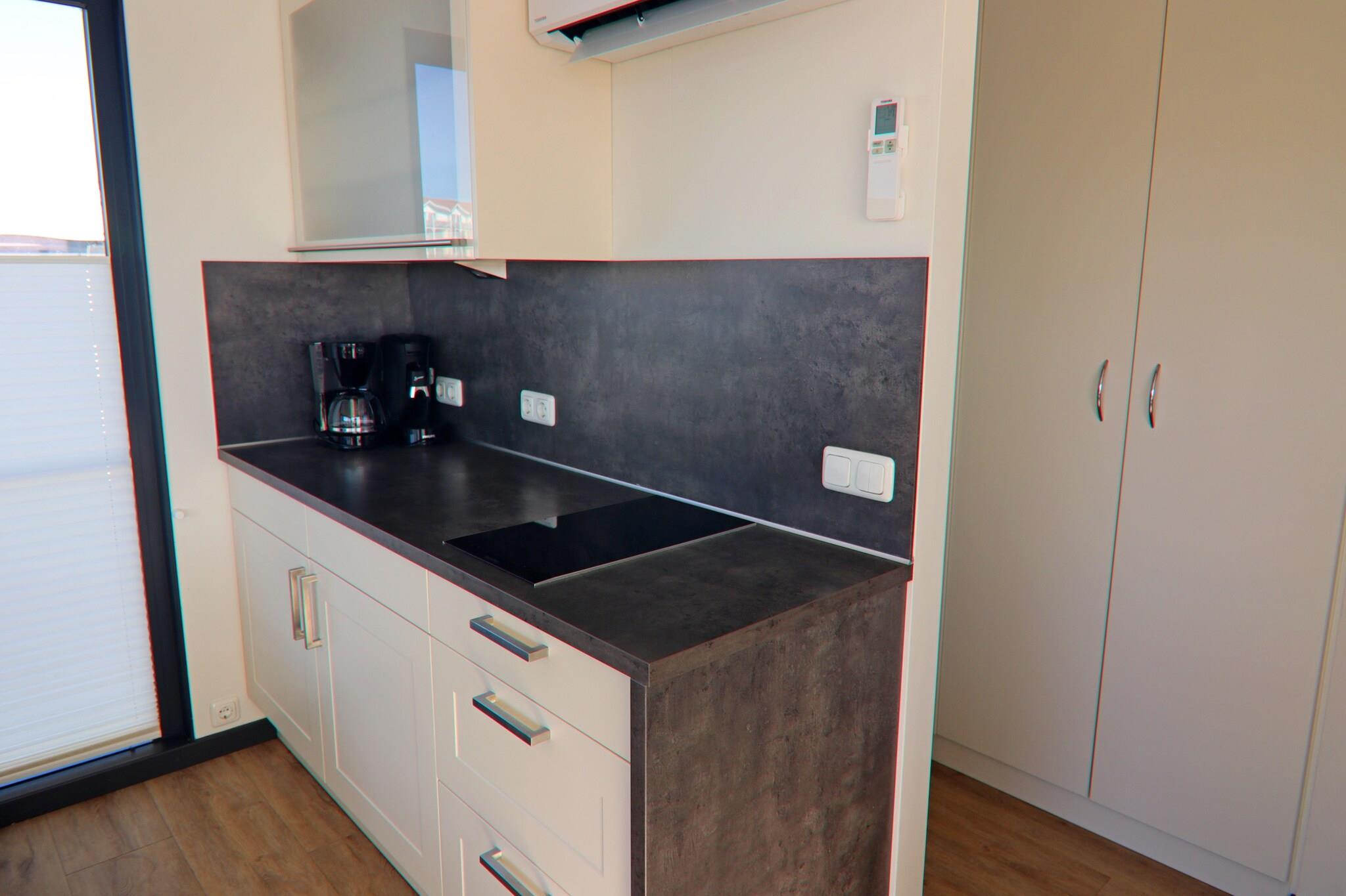 Stueetage: (åbent køkken(kogeplade(Komfur med to kogeplader, glaskeramisk), elkedel, brødrister, kaffemaskine, mikrobølgeovn, opvaskemaskine , køleskab), stue / spisestue(dobbeltsovesofa, Fjernsyn(fladskærm, parabol), spisebord, sofahjørne, radio), soveværelse(dobbeltseng), badeværelse(bruser, håndvask), toilet(håndvask, toilet)) Brød udbringning, varme(gennem aircondition), terrasse(16 m2), tagterrasse, havemøbler, parkering, liggestole, Vaskeripakke inkl.