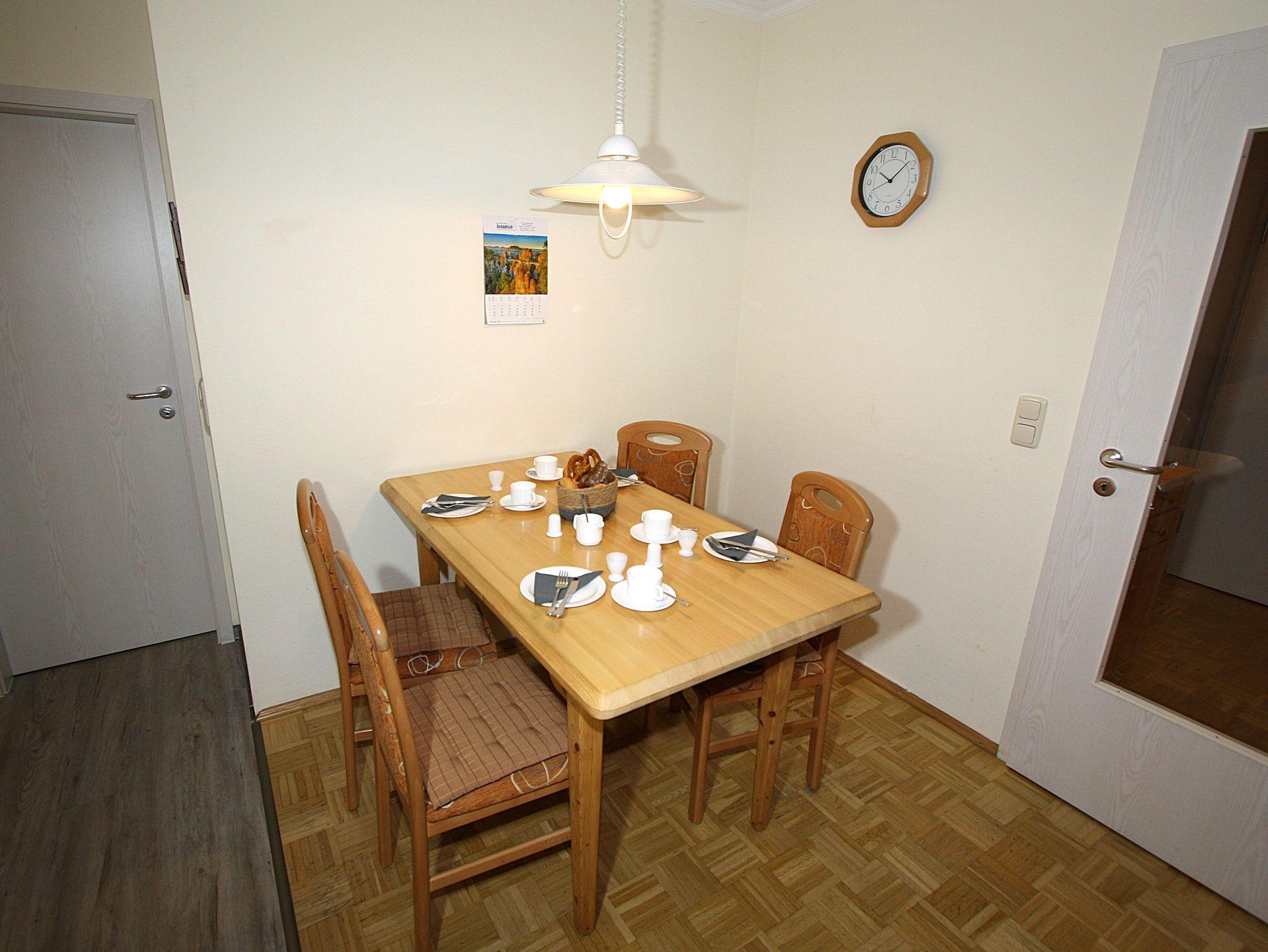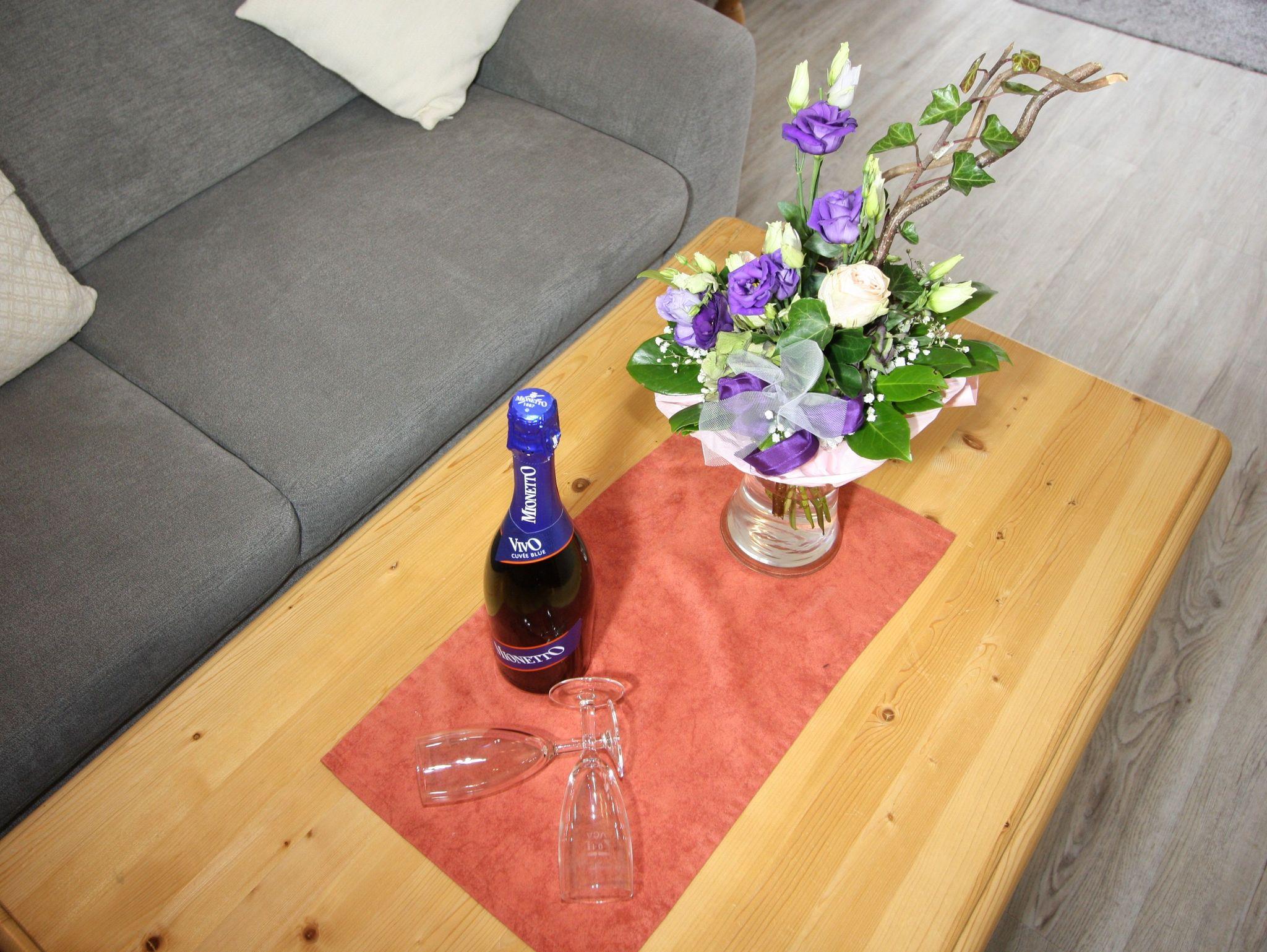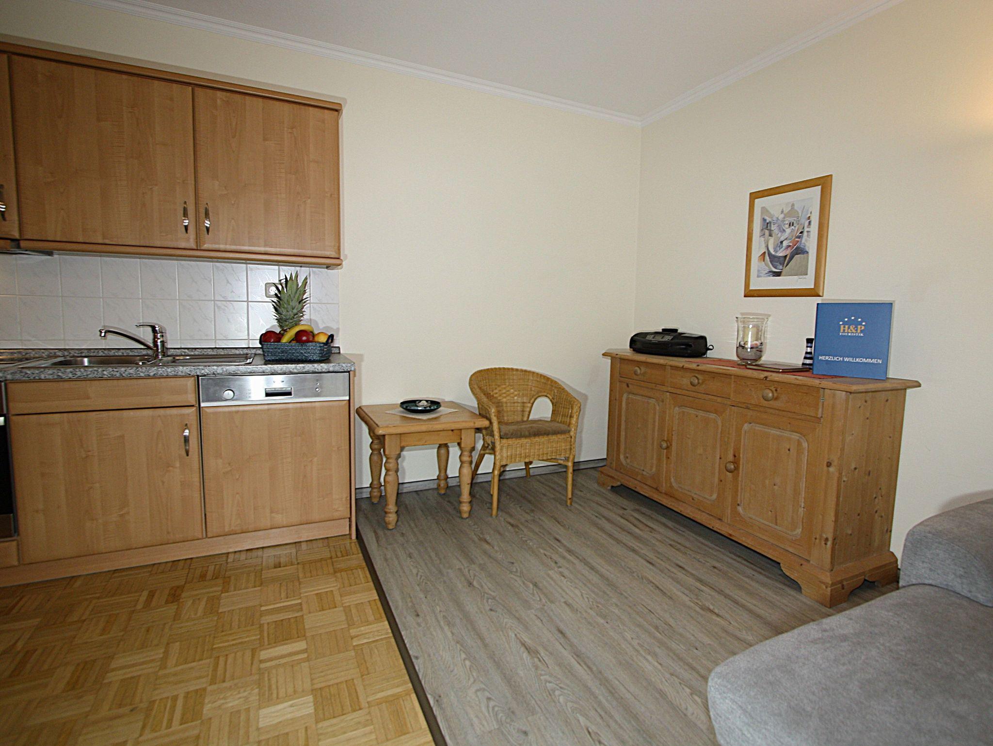 Die Wohnung ist mit Telefon, SAT-TV und Radio/CD-Player, der Küchenbereich mit Cerankochfeld, Backofen, Spülmaschine und Mikrowelle ausgestattet. Im Haus ist gegen Gebühr die Nutzung einer Waschmaschine und eines Trockners möglich.