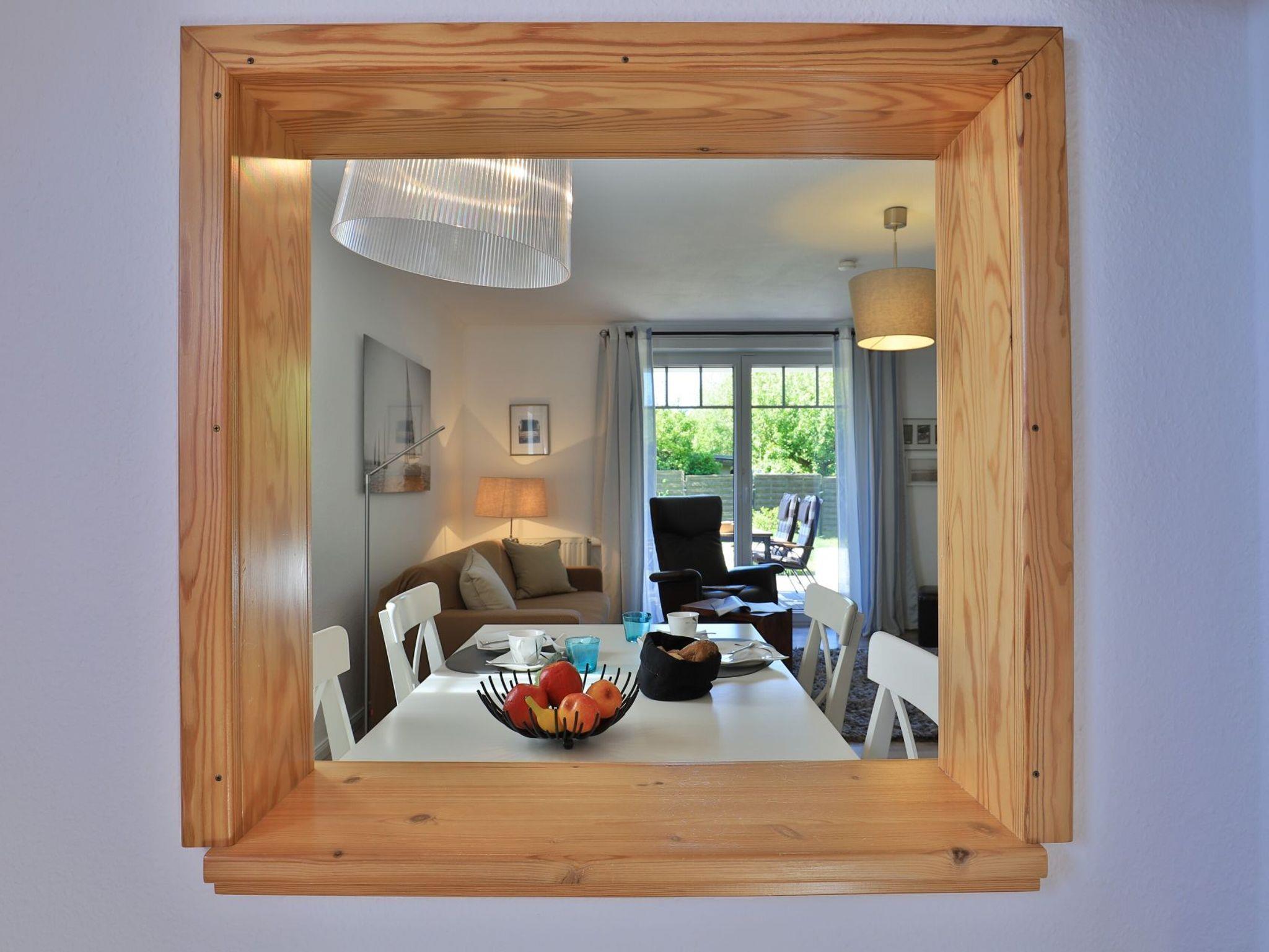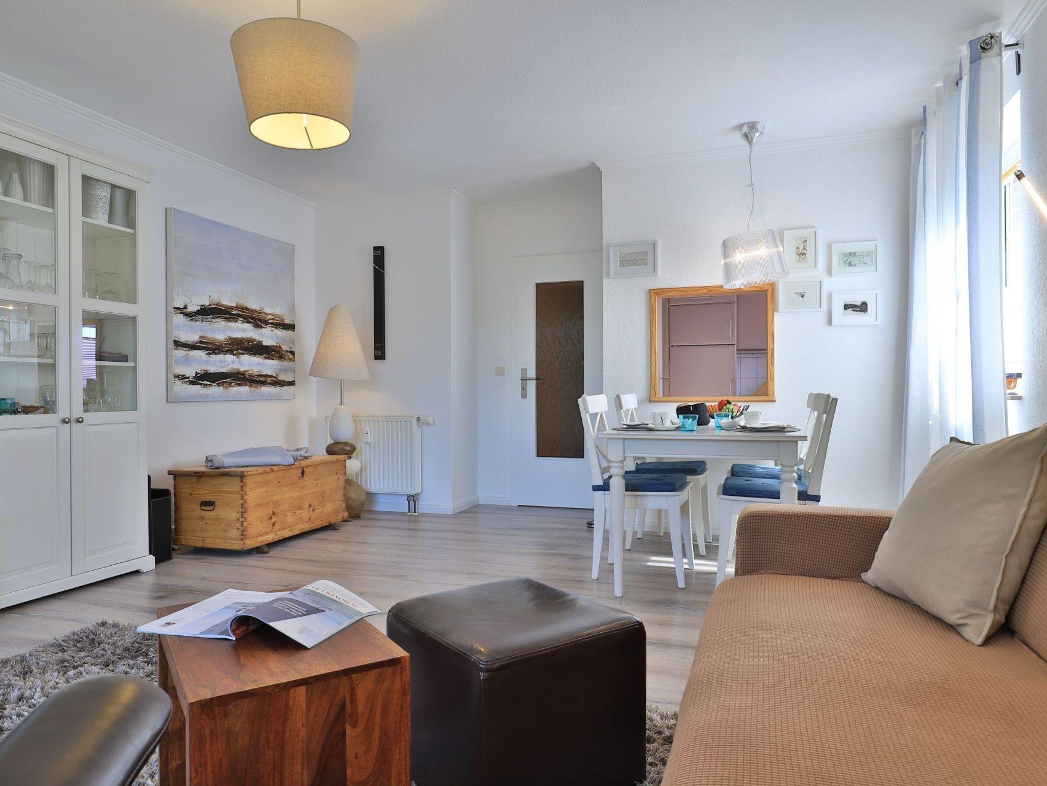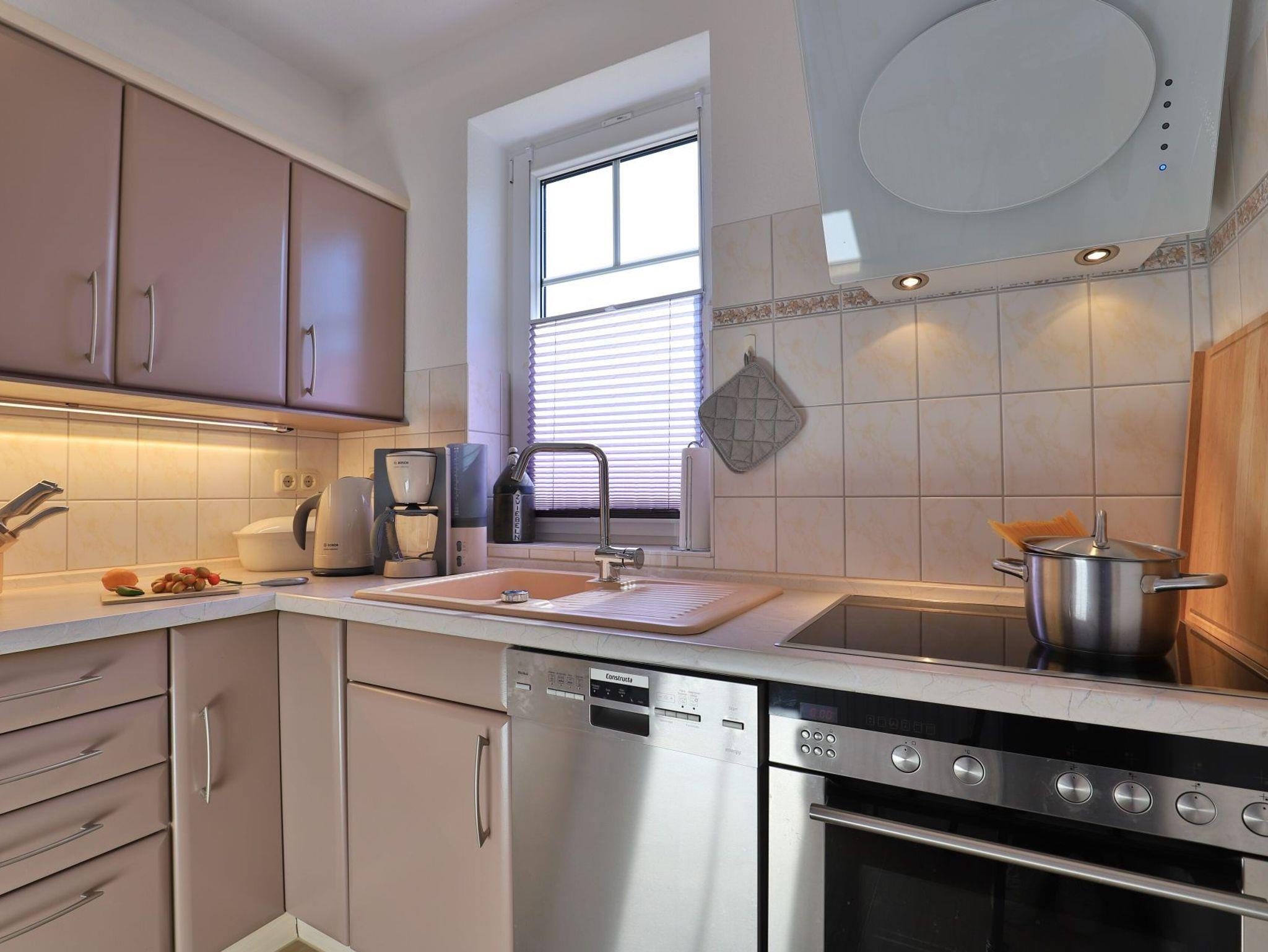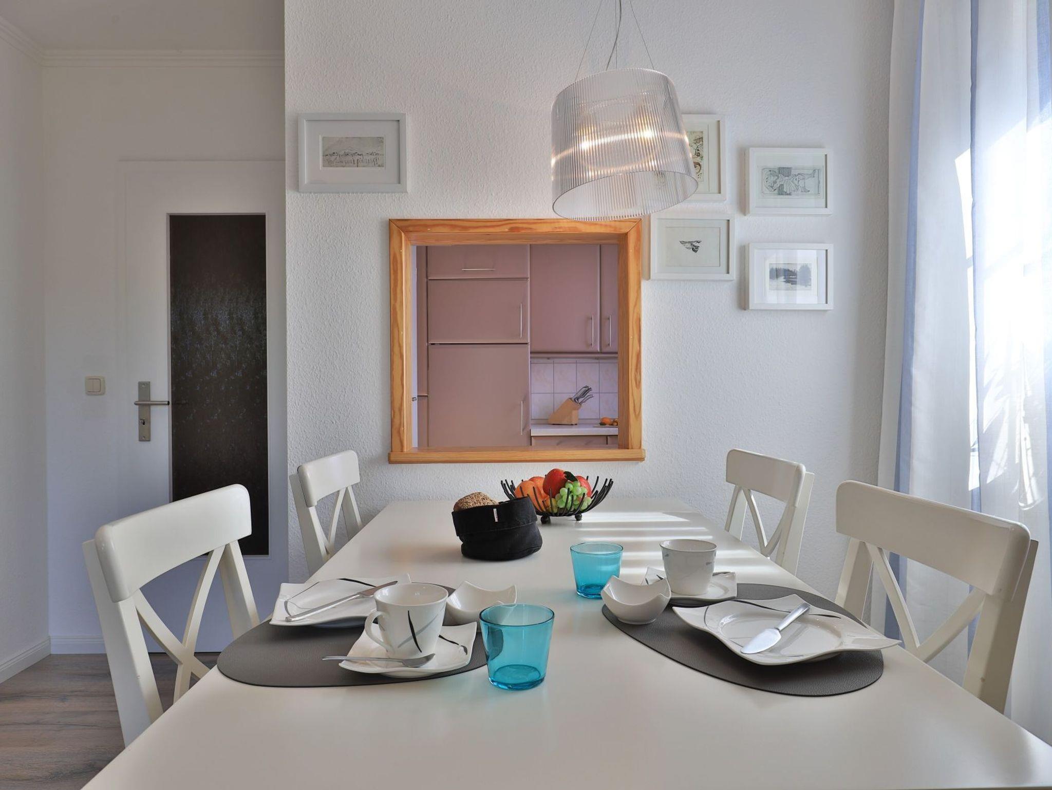 Die 2-Zimmerwohnung bietet eine großzügige Wohnfläche von 60qm und befindet sich im Erdgeschoss des Mehrparteienhauses. Eine Belegung ist mit 2 Personen möglich. Im sehr geschmackvoll möblierten Wohn-/Essbereich empfängt Sie ein Komfortsofa und ein Lesesessel mit Beinablage. Selbstverständlich ist das Appartement auch mit einem Fernseher, Musikanlage sowie WLAN ohne Mehrkosten ausgestattet. In der separaten Küche, die über eine Durchreiche zum Esstisch im Wohnbereich verfügt, können Sie Ihre Urlaubsmahlzeiten zubereiten. Ceranherd, Backofen, Dunstabzug, Kühlschrank mit sep. Gefrierfach, Kaffeemaschine, Wasserkocher, Toaster, Geschirrspüler u.v.m. sind vorhanden. Im Sommer können Sie sich auf der saisonal möblierten Terrasse wunderbar erholen und gerne das angrenzende Rasengrundstück nutzen. Geruhsame Nächte verbringen Sie in einem separaten Schlafzimmer mit Doppelbett ? 180cm mal 200cm-, Kleiderschrank und Kommode. Zugehörig ist ein modernes Duschbad mit Fenster, Waschtisch, Föhn, WC. Auch eine Waschmaschine, Bügeleisen und Bügelbett stehen zu Ihrer Verfügung. Im Safe sichern Sie persönliche Wertsachen.