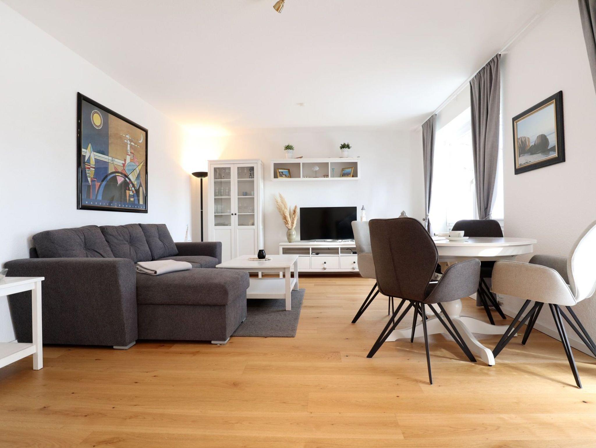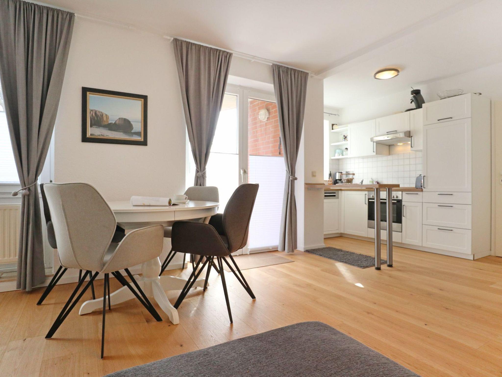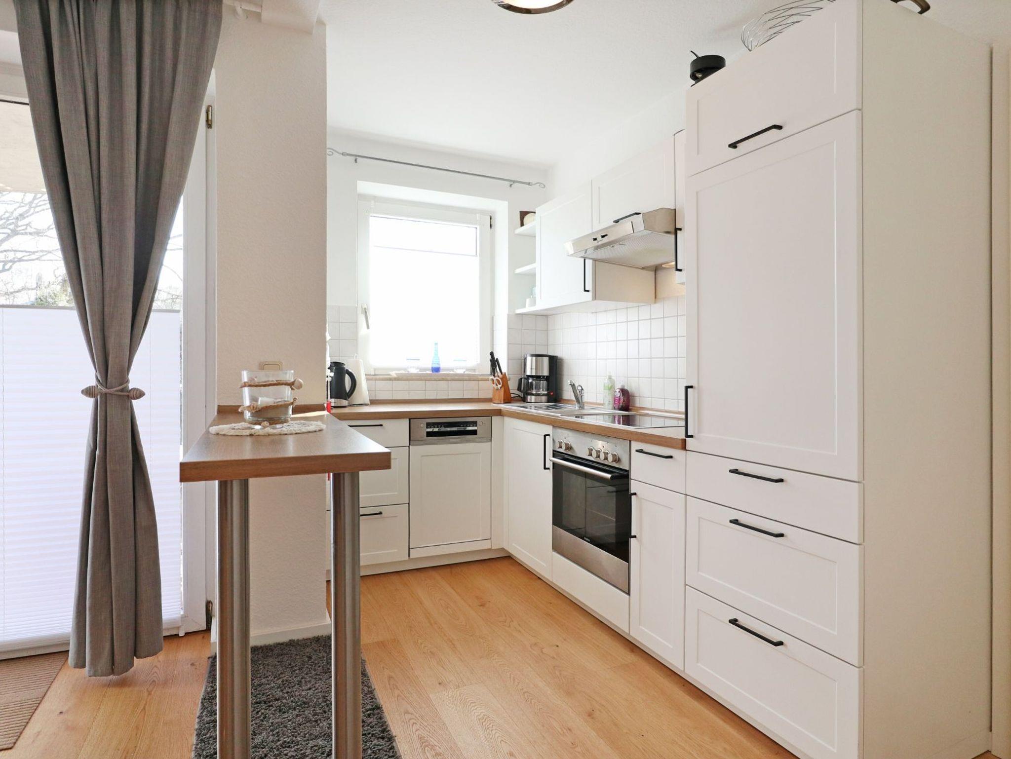 Nur 150 Meter zum feinsandigen Badestrand befindet sich die gut ausgestattete 2-Zimmer Ferienwohnung Goosbrink 21 mit Terrasse. Auf einer Wohnfläche von 50qm können Sie mit maximal 4 Personen einen angenehmen Aufenthalt verbringen. Der freundlich möblierte Wohn-Essbereich mit Terrassen Zugang verfügt über eine integrierte Küchenzeile mit Herd, Backofen, Geschirrspüler sowie weiteren Kleingeräten Kaffeemaschine, Toaster, Wasserkocher usw. Ein ausziehbares Sofa bietet zwei Schlafgelegenheiten. Zudem sind ein Esstisch, Fernsehgerät und Musikanlage vorhanden. Ein separates Schlafzimmer mit Doppelbett und Kleiderschrank und Kommode sowie ein Duschbad sind zugehörig. Für mitgebrachte Fahrräder steht ein separater Abstellraum bereit. Ihren PKW parken Sie kostenfrei auf dem Kieferngrundstück. Es handelt sich um eine Nichtraucherwohnung. Nah des Hauses beginnen schöne Spazierwege, die in den Tarnewitzer Urwald oder auch zum Jachthafen Weisse Wiek führen. Zum Ortszentrum gelangen Sie in ca. 10 Gehminuten. Einkaufsmöglichkeiten sind in direkter Umgebung.