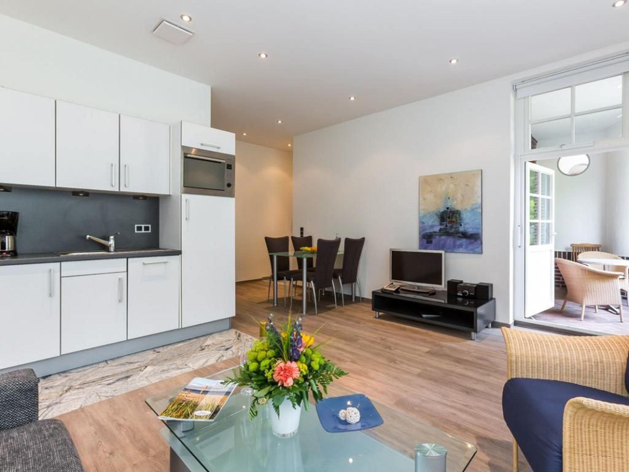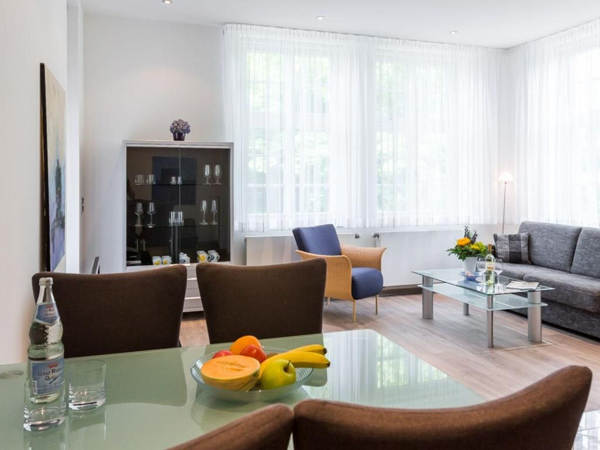Nur 30 Meter vom Strand entfernt erwartet Sie die exklusive 2-Zimmer-Hochparterre Ferienwohnung -Villa Höger 2- mit einer Wohnfläche von 45qm und hochwertiger Ausstattung. Dieses Feriendomizil mit verglaster Loggia zur Seeseite ist ideal für maximal zwei Gäste. Der großzügig gestaltete Wohn- und Essbereich empfängt Sie mit einem komfortablen Sofa, weiteren Sitzgelegenheiten, Esstisch sowie Flatscreen-TV, Musikanlage und WLAN. Die integrierte, hochwertige Küchenzeile ist mit Ceranfeld, Mikrowelle mit Backfunktion und Geschirrspüler bestens ausgestattet. Das separate Schlafzimmer verfügt über ein Doppelbett, einen Kleiderschrank sowie ebenfalls eine verglaste Loggia. Das Duschbad mit Granitbelag und großzügigen Spiegelflächen bietet zusätzlichen Komfort. Bei Ihrer Anreise sind die Betten bereits bezogen, Hand- und Duschtücher liegen für Sie bereit. Ein Strandkorb ist saisonal von etwa Mai bis zum 30. September im Mietpreis enthalten. Für Ihren Pkw steht ein reservierter Stellplatz in der Tiefgarage zur Verfügung, die Sie bequem mit dem gläsernen Fahrstuhl erreichen. Waschmaschine und Wäschetrockner befinden sich in einem Nebenraum der Tiefgarage und können gegen Gebühr genutzt werden. Ein Fahrradkeller ist ebenfalls vorhanden. Nichtraucher-Ferienunterkunft. Haustiere nicht gestattet. Sie verbringen Ihren Aufenthalt in einer privaten Villa in direkter Lage an der Mittelpromenade. Herzlich willkommen bei uns am Meer.