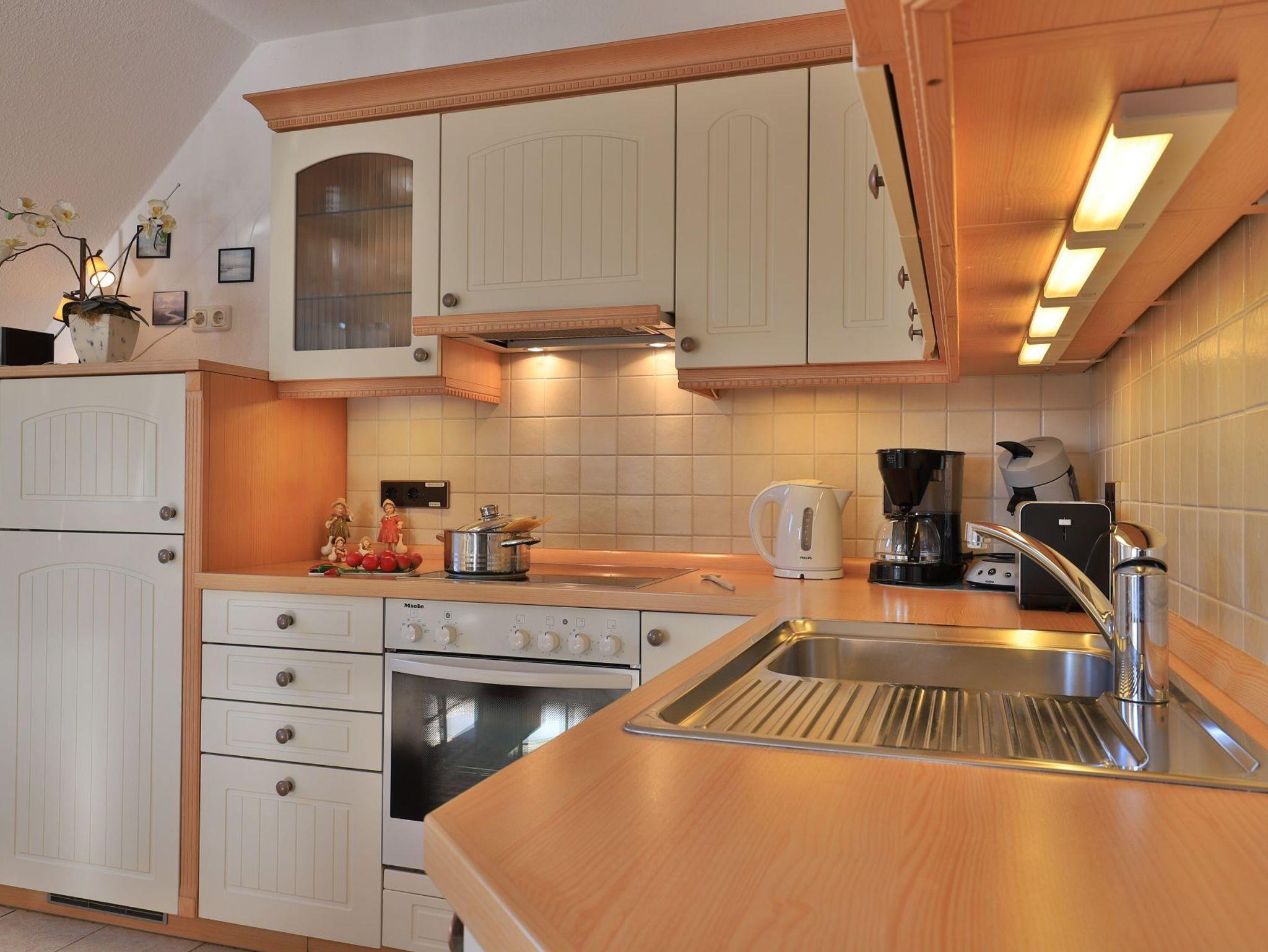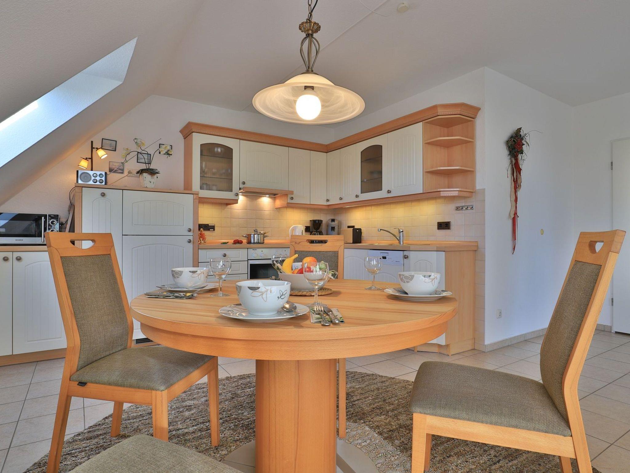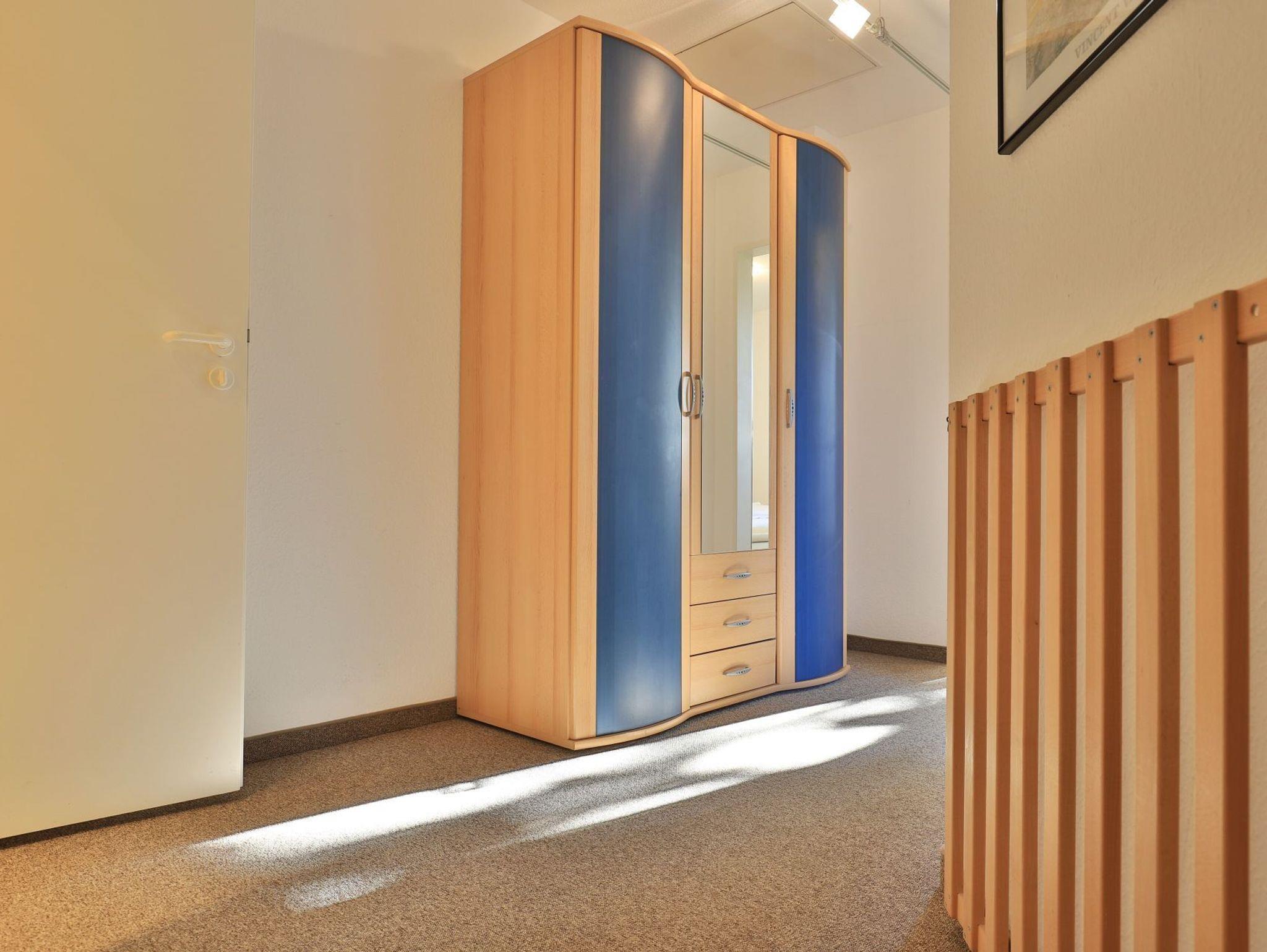 Die mit drei Sternen klassifizierte 3-Zimmer Maisonettenwohnung ?Likedeeler 31? mit Balkon, besitzt eine Wohnfläche von 85qm und ist für eine Belegung mit bis zu 4 Personen bestens geeignet. Diese Wohneinheit befindet sich im 2. Obergeschoss ? Fahrstuhl. Für technische Unterhaltung können Sie den Fernseher sowie eine Musikanlage nutzen, zudem steht WLAN kostenfrei bereit. Im sehr komfortabel möblierten Wohn-/Essbereich empfängt Sie ein schönes Ecksofa Sofa und weiteres Mobiliar. Ebenso ist ein Esstisch im Wohnbereich platziert. Die integrierte Wohnküche ist teilweise offen gestaltet und ermöglicht die Eigenversorgung mit: Ceranherd, Backofen, Mikrowelle, Dunstabzug, Kühlschrank mit integr. Gefrierfach, Geschirrspüler, Kaffeemaschine, Wasserkocher, Toaster usw. Ihre Urlaubsmahlzeiten können Sie bequem am Esstisch zu sich nehmen. An wärmeren Tagen genießen Sie den saisonal möblierten Balkon in südliche Ausrichtung. Über eine Wendeltreppe erreichen Sie zwei separate Schlafzimmer, die sich in der oberen Wohnebene befinden. Einer der Schlafbereiche ist mit einem Doppelbett, Kleiderschrank und einem 2. Fernseher eingerichtet. Im zweiten Schlafzimmer bzw. Kinderzimmer, erwarten Sie zwei Einzelbetten, kleiner Tisch mit Sitzgelegenheit. Die Ferienwohnung bietet Ihnen ein modernisiertes Duschbad mit Handtuchheizung, Föhn, WC. Zudem ist im unteren Wohntrakt ein Gäste-WC vorhanden. Für Familien mit Kleinkind steht ein Kinderhochstuhl, Kinderbett, Treppensicherung im Appartement bereit. Auch ein Bügeleisen und Bügelbrett können genutzt werden. Hausgäste können im Untergeschoss sowohl Waschmaschine als auch Wäschetrockner gegen Gebühr nutzen. Ihr Fahrzeug parken Sie in der hauseigenen Tiefgarage auf einem fest zugeordneten Stellplatz. Mit dem Fahrstuhl gelangen Sie bequem zu den Wohnungsetagen.