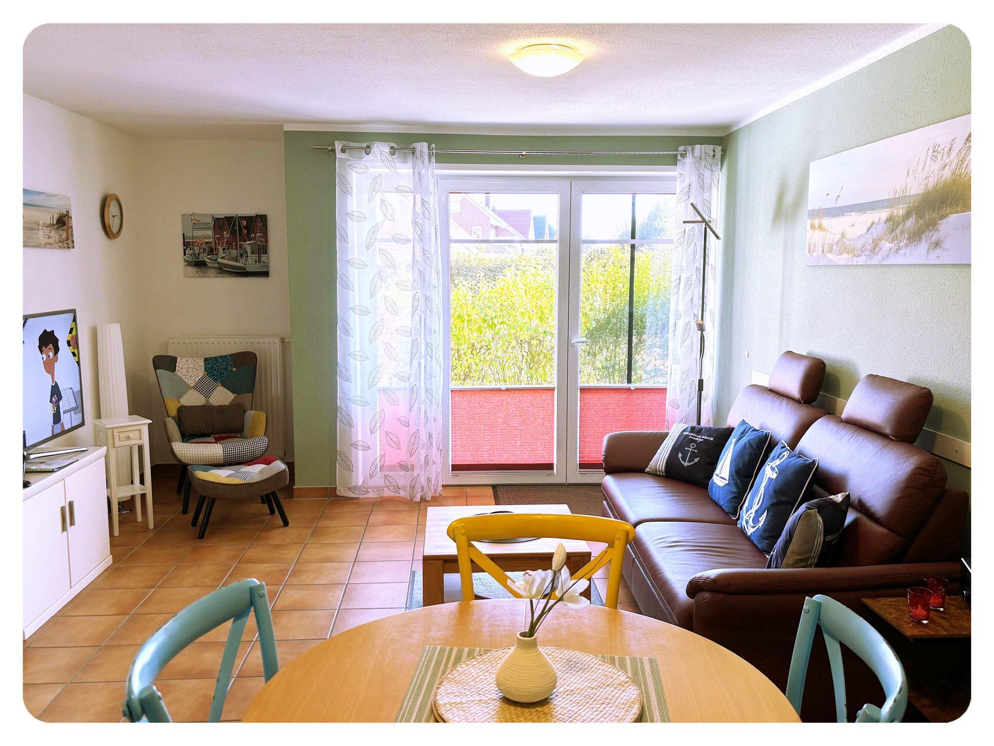 Unsere 2-Zimmer Erdgeschoss-Ferienwohnung ist ideal für Ihren Urlaub an der Ostsee. Auf der großen Sonnenterrasse mit Blick ins Grüne können Sie bequem entspannen.