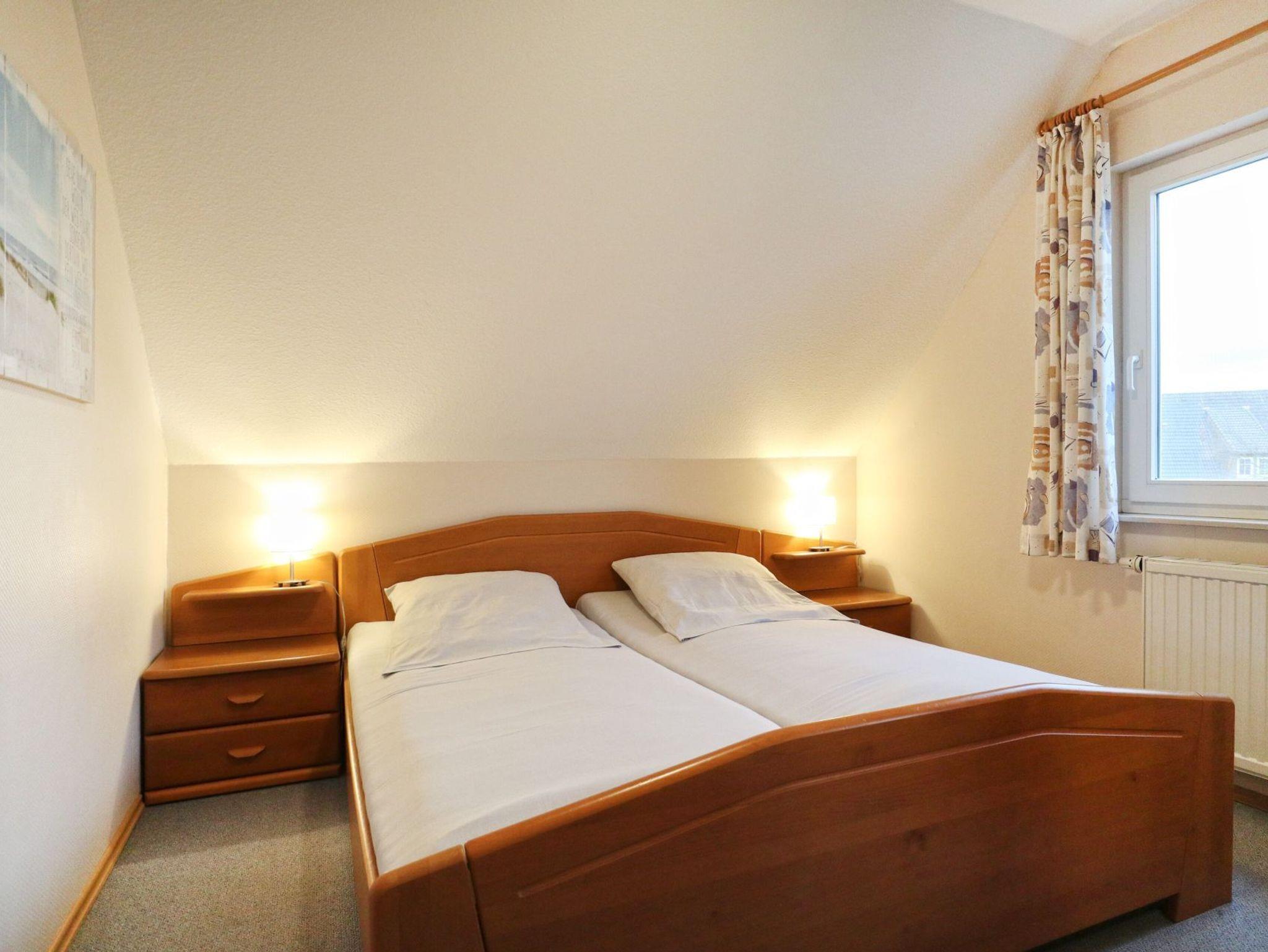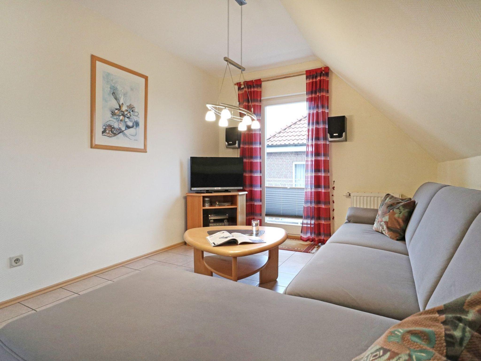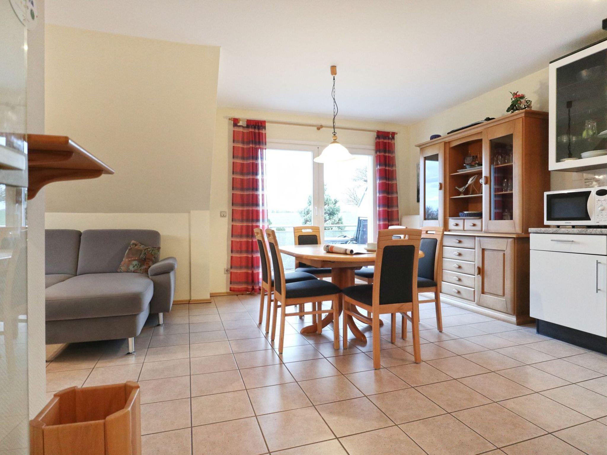 Diese, für Allergiker geeignete, 3-Zimmer-Ferienwohnung liegt im 1. Obergeschoss und verwöhnt mit zwei Balkonen! Mit einer großzügigen Wohnfläche von 57 qm bietet die Wohnung Platz für bis zu 4 Personen. Der geräumige Wohnbereich lädt mit einem bequemen Sofa, Fernseher und Musikanlage zur Auszeit ein. Kostenfreies WLAN steht Ihnen ebenfalls zur Verfügung. Die gut ausgestattete Wohnküche ist offen gestaltet und bietet alles, was Sie für die Zubereitung Ihrer Mahlzeiten benötigen: Ceranherd, Backofen, Mikrowelle, Kühlschrank mit integriertem Gefrierfach sowie Kaffeemaschine, Wasserkocher, Toaster und Geschirrspüler. Genießen Sie Ihre Mahlzeiten am Esstisch oder auf einem der saisonal möblierten Balkone. Die separaten Schlafzimmer sind jeweils mit einem Doppelbett und Kleiderschrank ausgestattet. Das Duschbad verfügt über einen Waschtisch und WC. Eine Waschmaschine und ein Waschtrockner können gegen Gebühr im Haus genutzt werden. Ein Bollerwagen ist vorhanden und darf gebührenfrei genutzt werden. Ihr PKW findet kostenfrei auf dem hauseigenen Außenstellplatz direkt vor der Wohnung Platz. Es handelt sich um eine Nichtraucherwohnung. Haustiere sind nicht erlaubt.