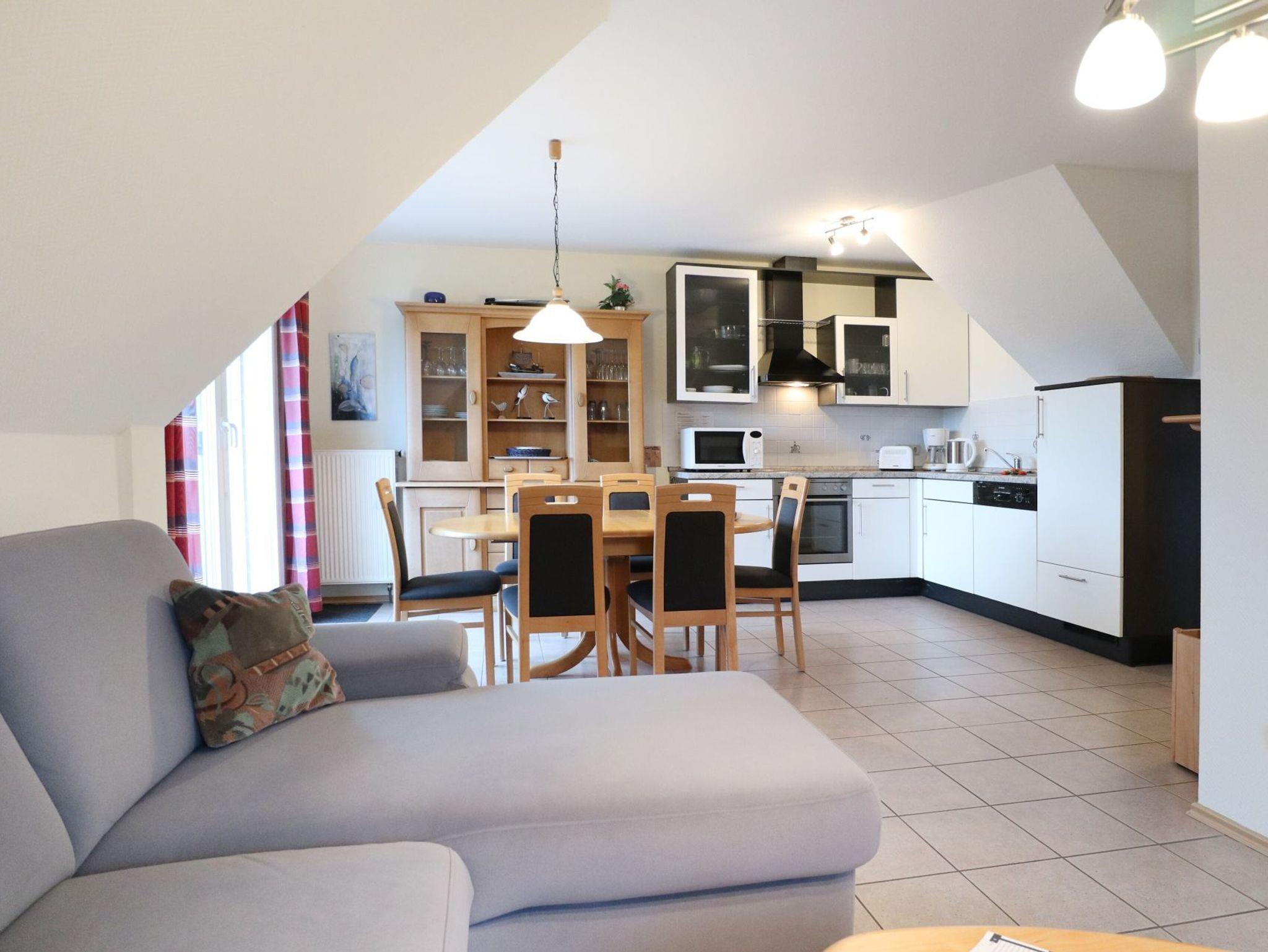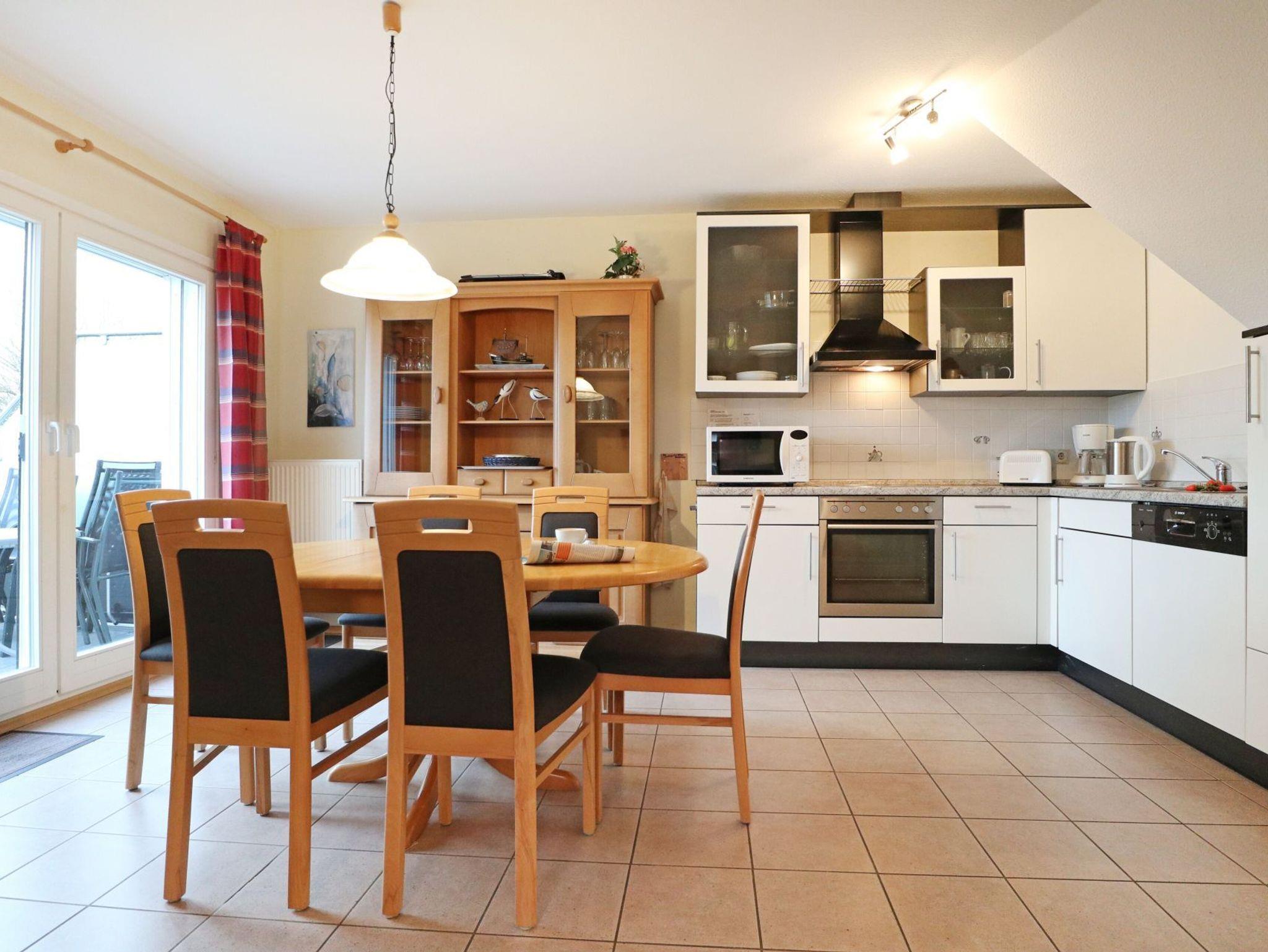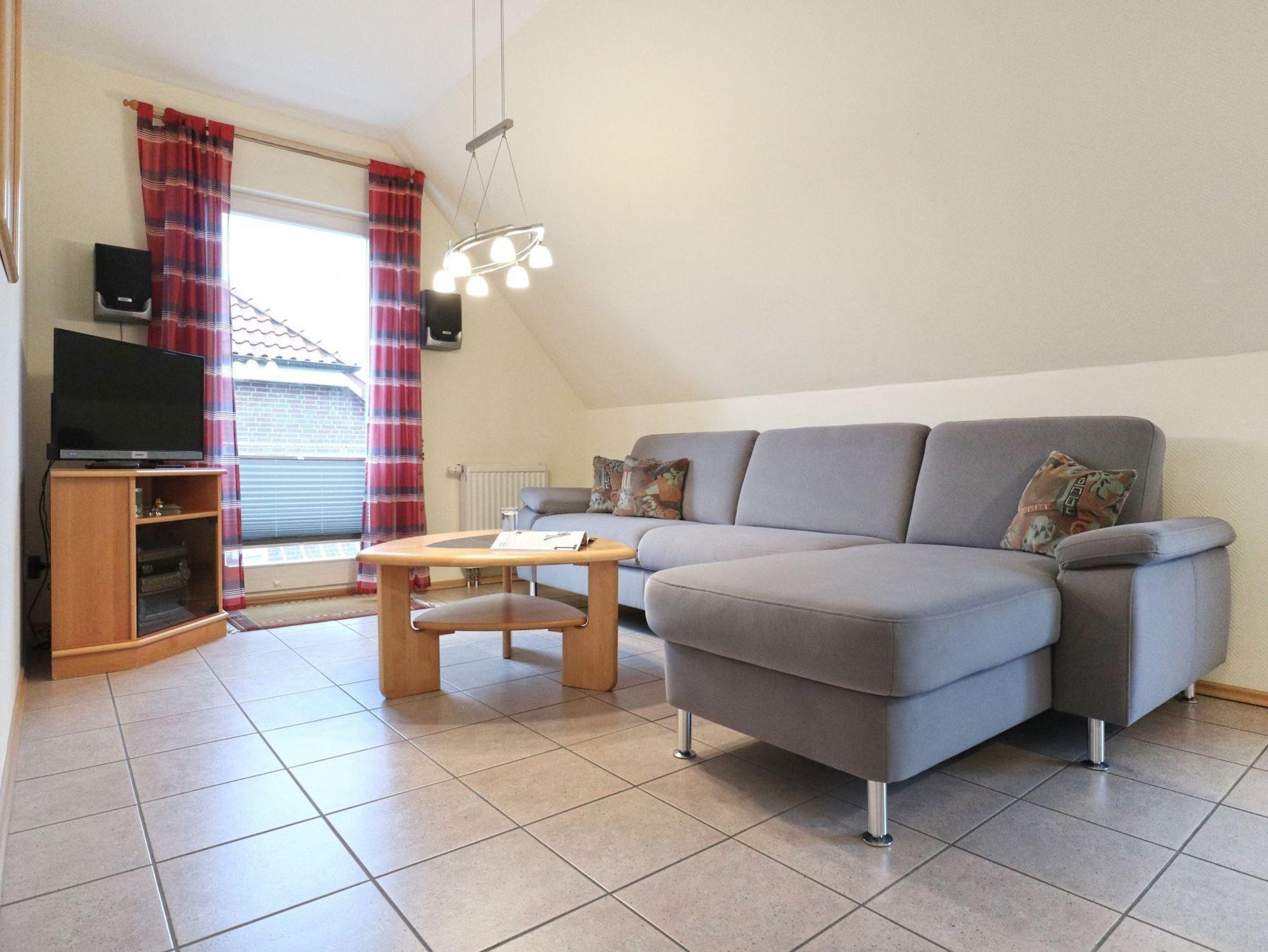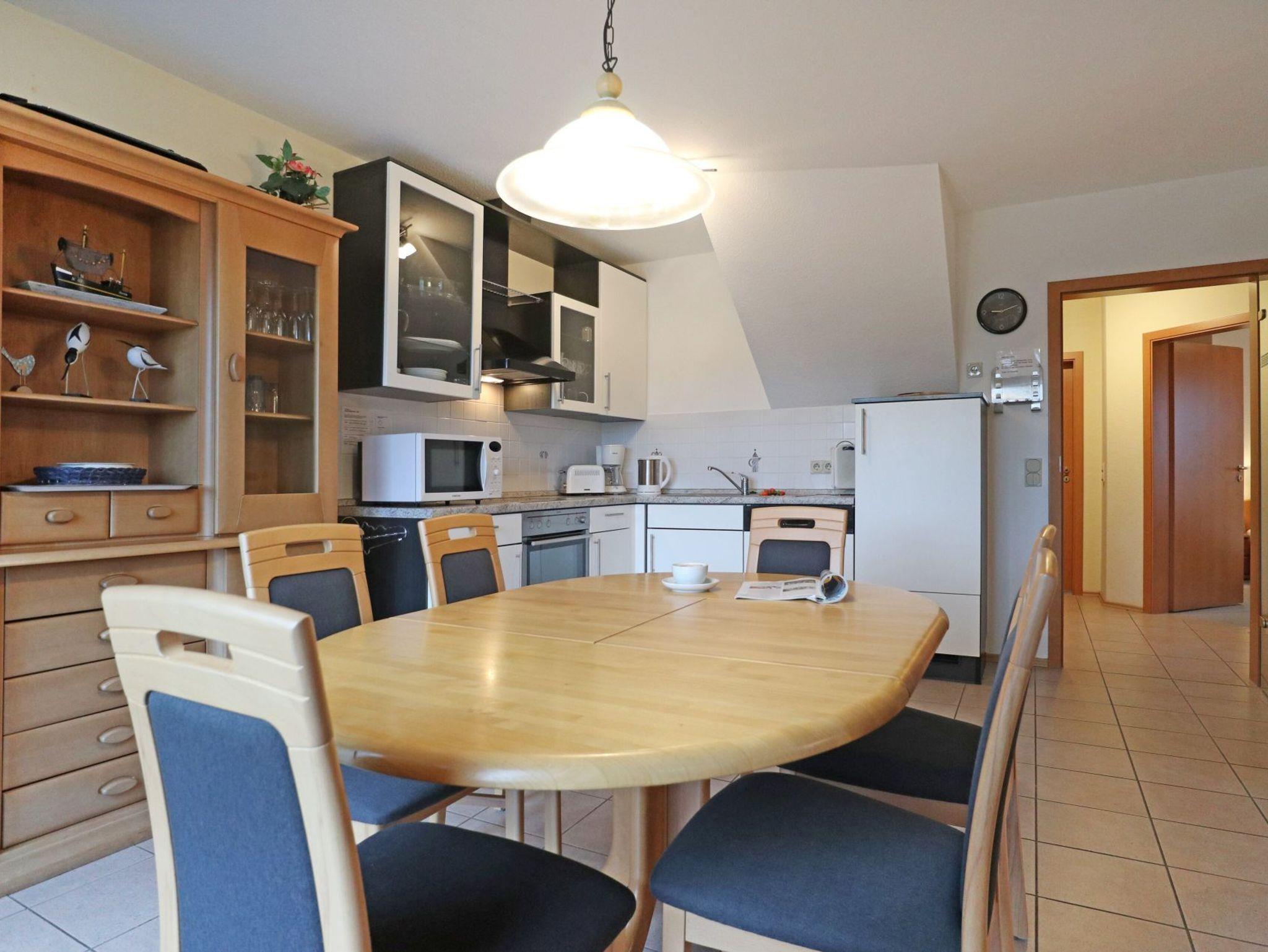 Diese, für Allergiker geeignete, 3-Zimmer-Ferienwohnung liegt im 1. Obergeschoss und verwöhnt mit zwei Balkonen! Mit einer großzügigen Wohnfläche von 57 qm bietet die Wohnung Platz für bis zu 4 Personen. Der geräumige Wohnbereich lädt mit einem bequemen Sofa, Fernseher und Musikanlage zur Auszeit ein. Kostenfreies WLAN steht Ihnen ebenfalls zur Verfügung. Die gut ausgestattete Wohnküche ist offen gestaltet und bietet alles, was Sie für die Zubereitung Ihrer Mahlzeiten benötigen: Ceranherd, Backofen, Mikrowelle, Kühlschrank mit integriertem Gefrierfach sowie Kaffeemaschine, Wasserkocher, Toaster und Geschirrspüler. Genießen Sie Ihre Mahlzeiten am Esstisch oder auf einem der saisonal möblierten Balkone. Die separaten Schlafzimmer sind jeweils mit einem Doppelbett und Kleiderschrank ausgestattet. Das Duschbad verfügt über einen Waschtisch und WC. Eine Waschmaschine und ein Waschtrockner können gegen Gebühr im Haus genutzt werden. Ein Bollerwagen ist vorhanden und darf gebührenfrei genutzt werden. Ihr PKW findet kostenfrei auf dem hauseigenen Außenstellplatz direkt vor der Wohnung Platz. Es handelt sich um eine Nichtraucherwohnung. Haustiere sind nicht erlaubt.
