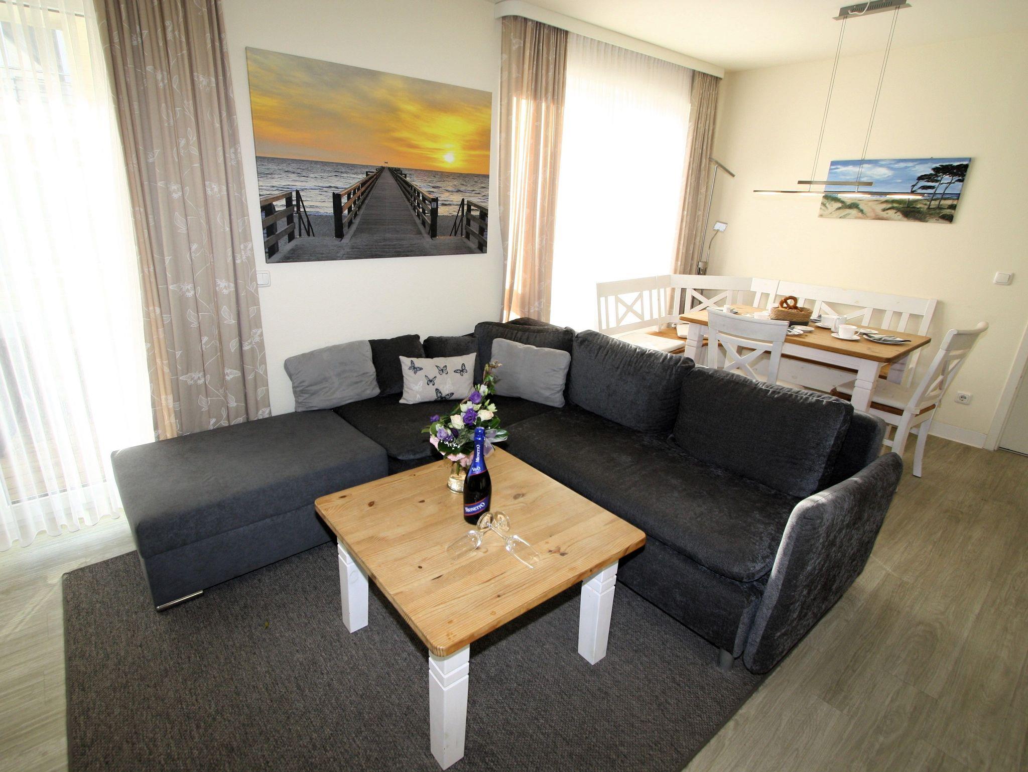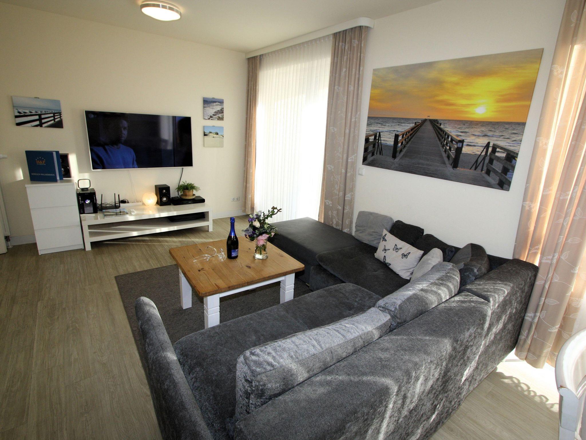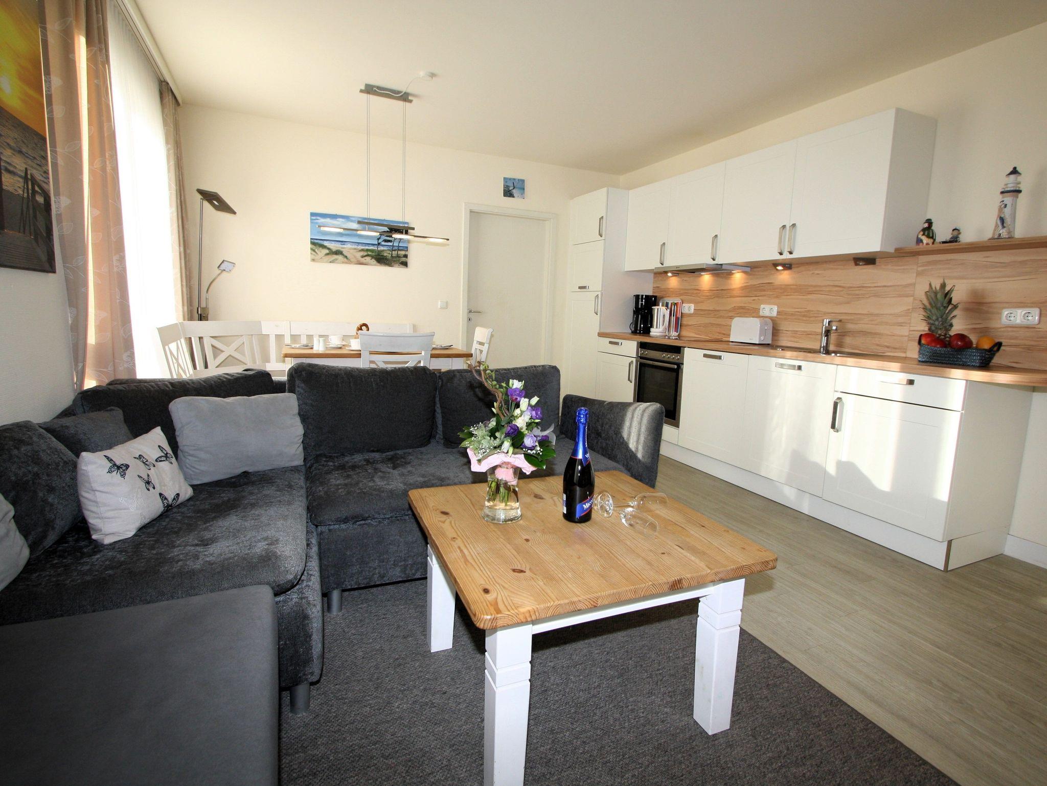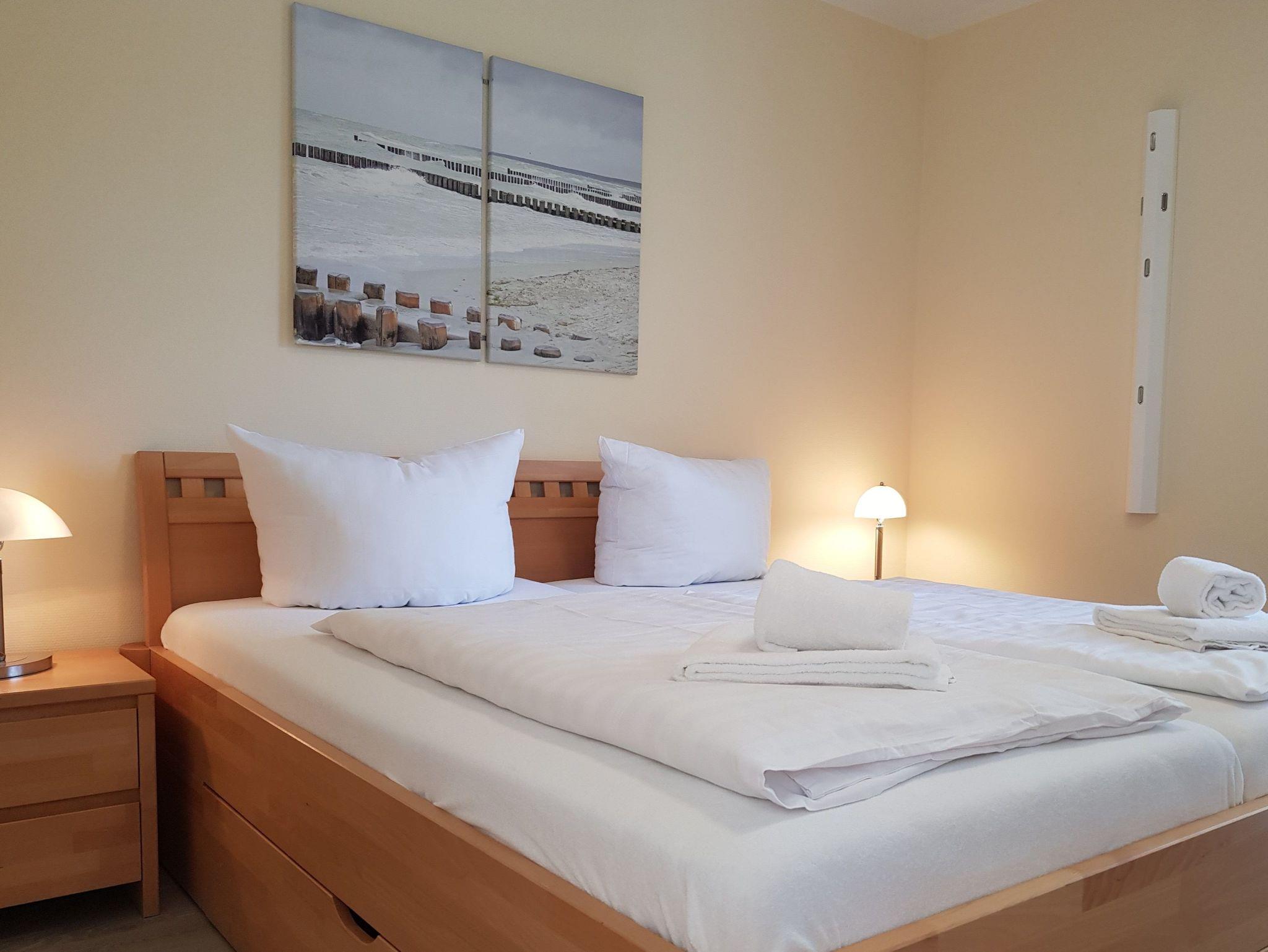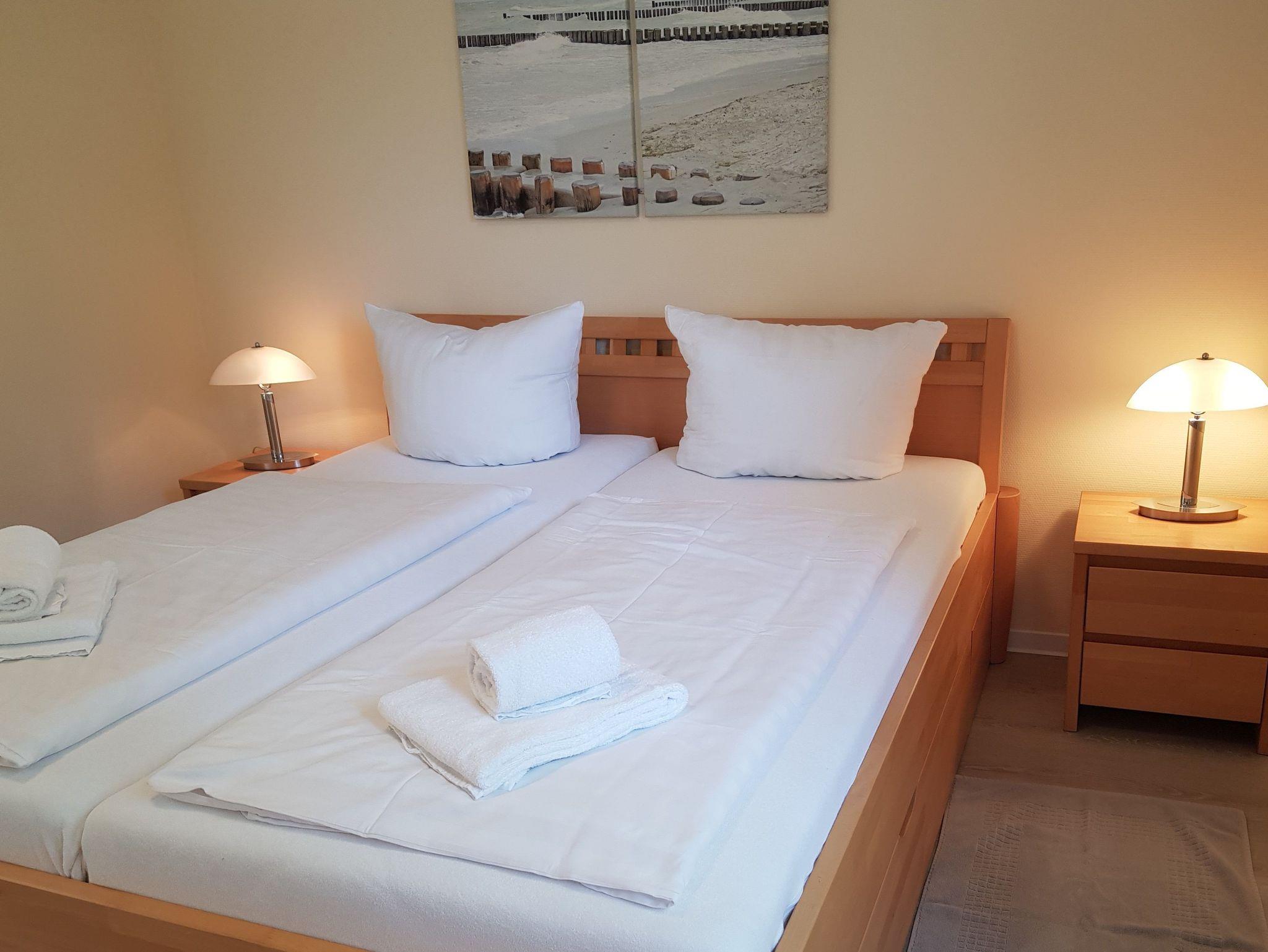 Ihre gut ausgestattete Zwei-Zimmer-Ferienwohnung für bis zu vier Personen verfügt über einen Balkon oder Terrasse, kostenfreies WLAN und sky-Empfang. Sie erreichen die Wohnung bequem mit dem Aufzug, für Ihren PKW steht ein Platz in der Tiefgarage zur Verfügung. Dort befindet sich zudem ein Waschraum mit Münzwaschmaschinen und Münzwäschetrockner und ein Platz für Ihre Fahrräder.