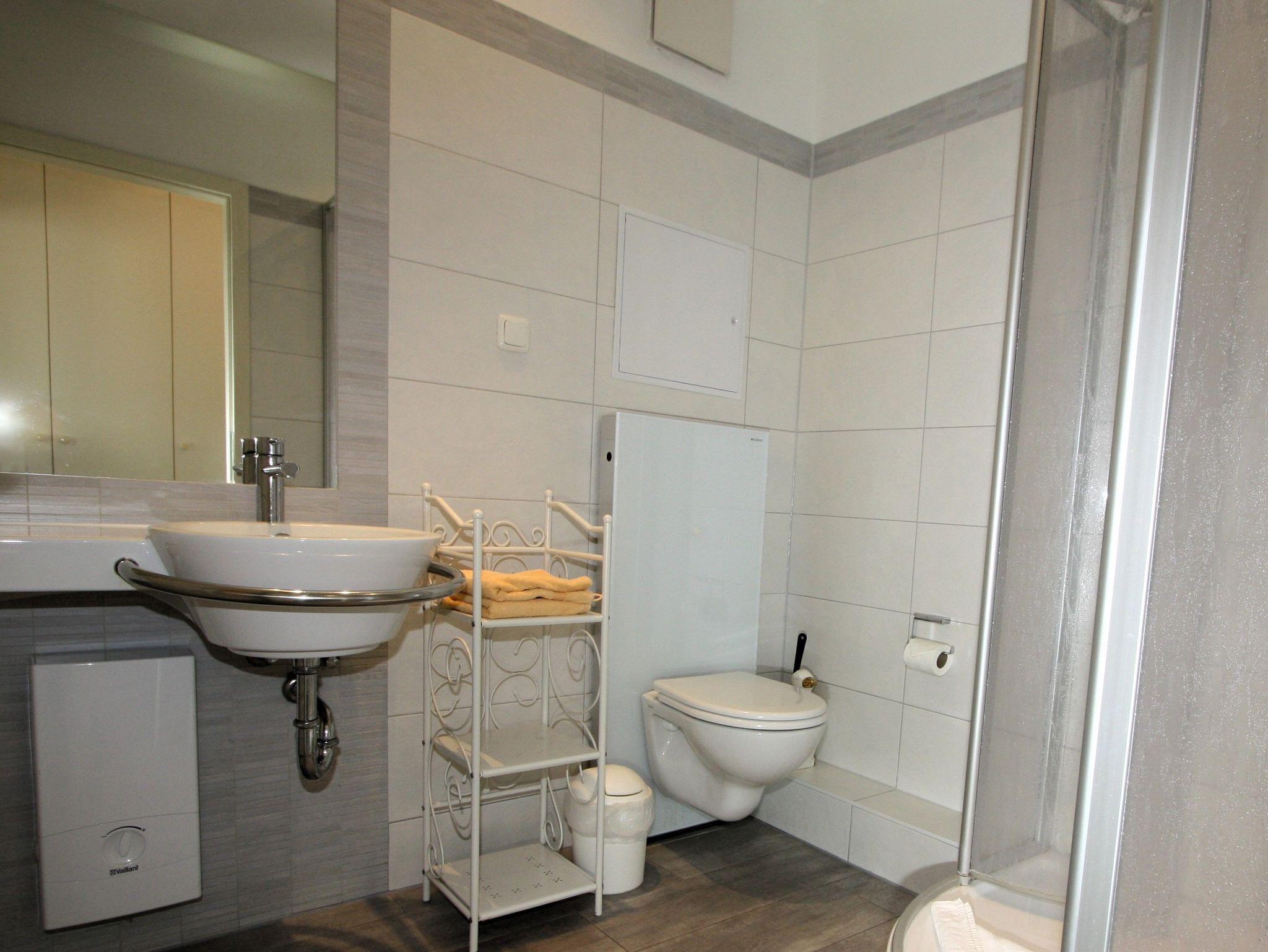 Das moderne Bad ist mit Dusche und WC ausgestattet. Für Unterhaltung stehen Ihnen ein SAT-Flachbild-TV sowie ein Telefon zur Verfügung.