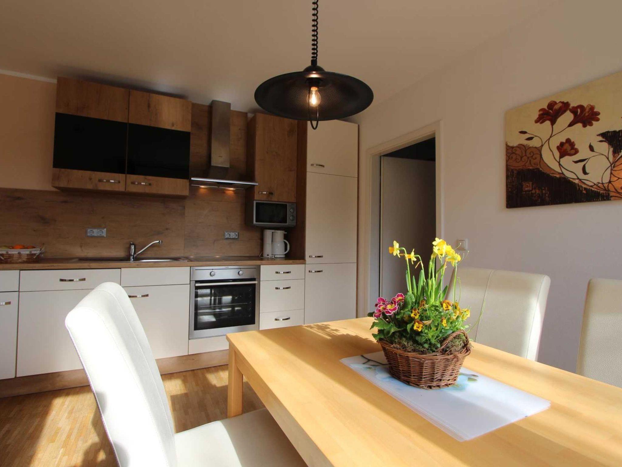 Ein Schlafzimmer mit Doppelbett, Wohn-/Schlafraum mit bequemer Couch mit Schlaffunktion, separater Essplatz, voll ausgestatteter Küchenbereich mit Mikrowelle, Geschirrspüler und großem Kühlschrank mit Gefrierfach, Dusche/WC, Föhn, Balkon, SAT-TV (Flachbildschirm, 42 Zoll, 4K) mit sky-Empfang und Telefon. Ein weiterer LCD-Fernseher mit sky-Empfang befindet sich im Schlafraum. Div. Spiele für Kinder sind vorhanden. Die Schlafcouch im Wohnraum lässt sich mit wenigen Handgriffen in eine vollwertige, komfortable Schlafmöglichkeit für die 3. und 4. Person verwandeln. Es erwartet Sie ein modernes Duschbad mit flacher Runddusche, hochwertigen Fliesen und Handtuchheizkörper.