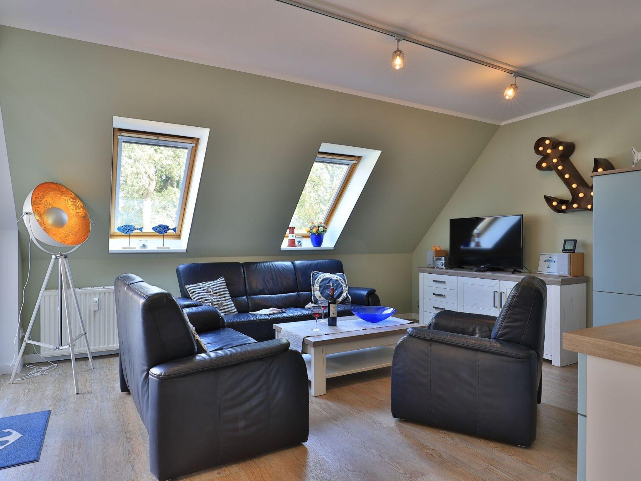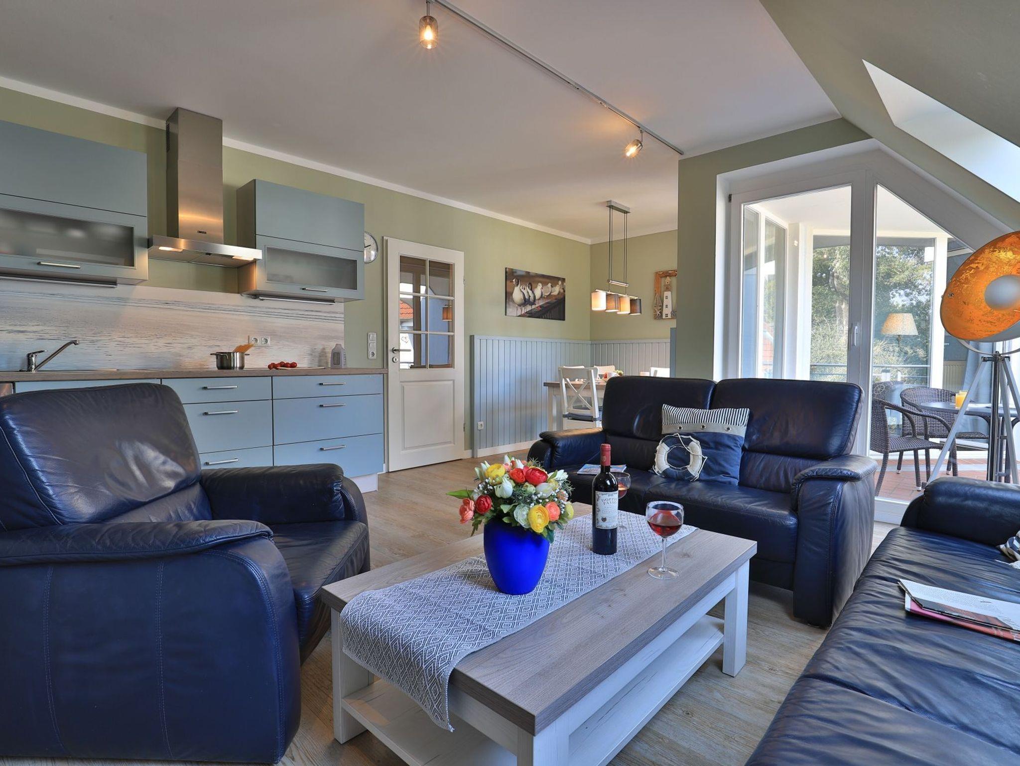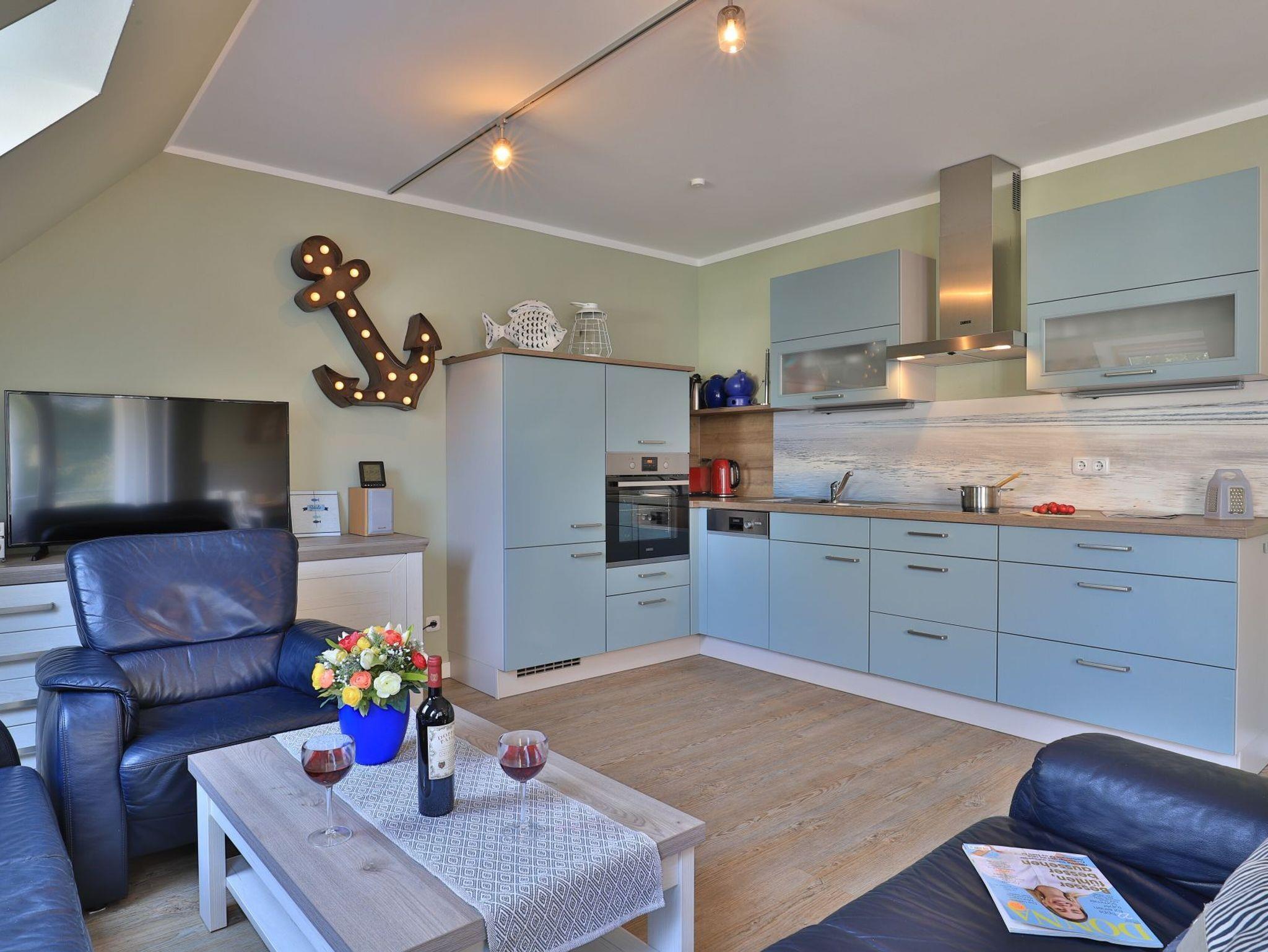 Die 4-Zimmer Maisonettenwohnung ?Likedeeler 39? mit Dachterrasse, besitzt eine Wohnfläche von 89qm und ist für eine Belegung mit bis zu 6 Personen bestens geeignet. Diese Wohneinheit befindet sich im 2. Obergeschoss ? Fahrstuhl. Für technische Unterhaltung können Sie den Fernseher sowie eine Musikanlage nutzen, zudem steht WLAN kostenfrei bereit. Im sehr komfortabel möblierten Wohn-/Essbereich empfängt Sie eine hochwertige Sitzgruppe und weiteres Mobiliar. Ebenso ist ein großer Esstisch mit Blick zur Dachterrasse im Wohnbereich platziert. Die neuwertige Wohnküche ist im Wohnraum integriert und ermöglicht die Eigenversorgung mit: Ceranherd, Backofen, Mikrowelle, Dunstabzug, Kühlschrank mit integr. Gefrierfach, Geschirrspüler, Kaffeemaschine, Wasserkocher, Toaster usw. Ihre Urlaubsmahlzeiten können Sie bequem am Esstisch zu sich nehmen. An wärmeren Tagen genießen Sie die saisonal möblierte Dachterrasse in nördliche Ausrichtung zum Innenbereich der Appartementanlage. Zudem befindet auf dieser Wohnebene ein Schlafzimmer mit Doppelbett, Kleiderschrank und Balkonzugang. Ebenso ist ein Gäste- WC vorhanden.