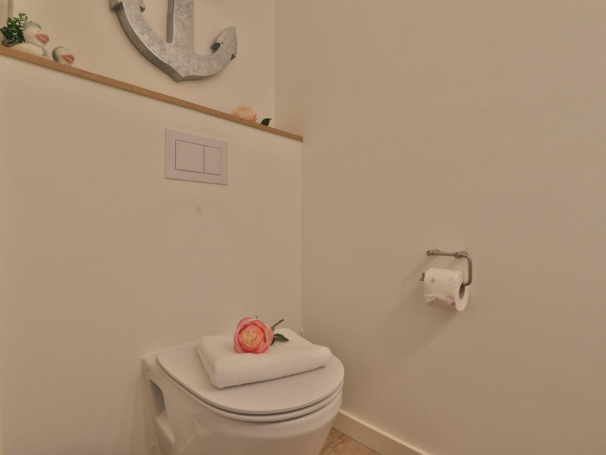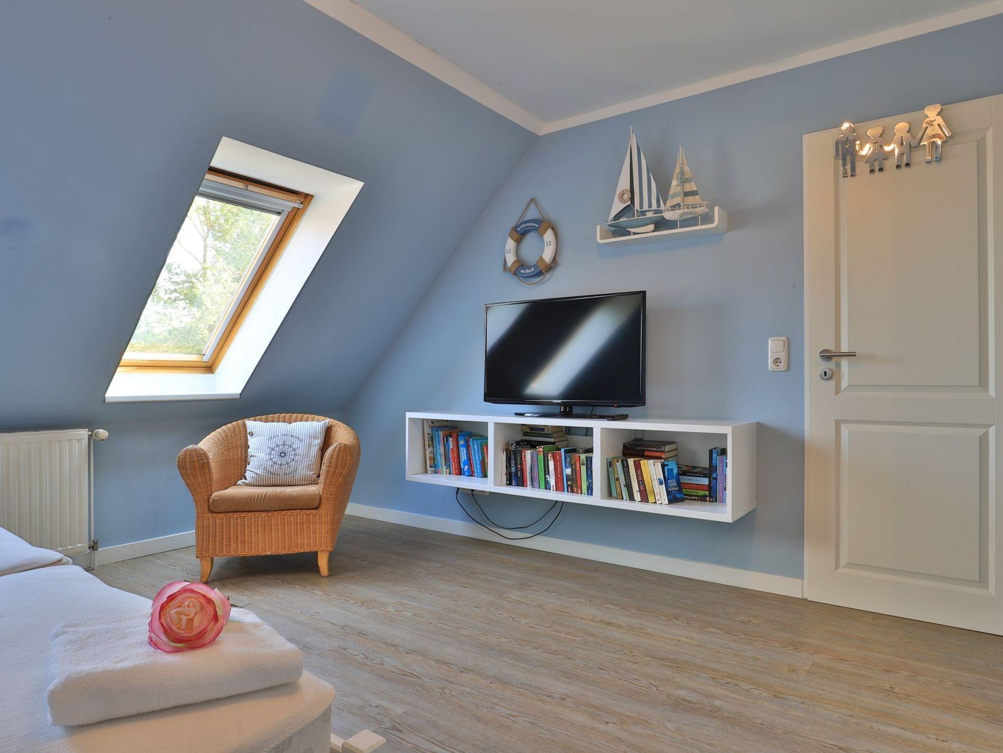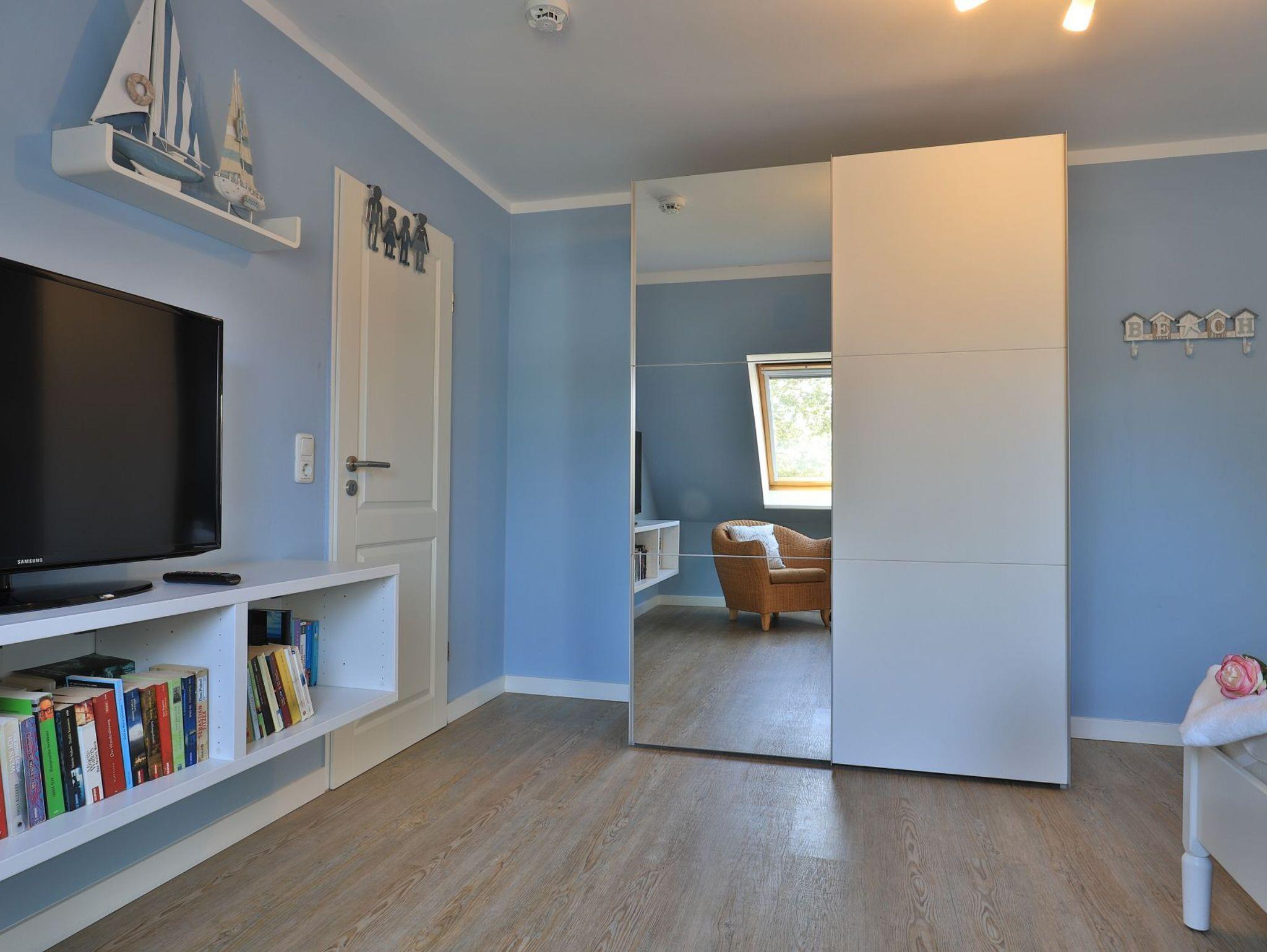Über eine Wohnraumwendeltreppe erreichen Sie die obere Ebene mit zwei weiteren, separaten Schlafzimmern. Einer der Schlafbereiche ist mit einem Doppelbett, Kleiderschrank, Fernseher, Sessel eingerichtet. Im zweiten Schlafzimmer bzw. Kinderzimmer mit Leuchtturm Tapete, erwarten Sie zwei Einzelbetten und ein Kleiderschrank. Ein modernisiertes Duschbad mit Waschtisch, Handtuchheizung, Föhn, WC befindet sich ebenfalls auf der Schlafraumebene. Für Familien mit Kleinkind sind ein Kinderreisebett und ein Kinderhochstuhl vorhanden. Hausgäste können im Untergeschoss sowohl Waschmaschine als auch Wäschetrockner gegen Gebühr nutzen. Ihr Fahrzeug parken Sie in der hauseigenen Tiefgarage auf einem fest zugeordneten Stellplatz. Mit dem Fahrstuhl gelangen Sie bequem zu den Wohnungsetagen. Im Haus gibt es eine gemeinschaftlich nutzbare Fahrradabstellmöglichkeit.