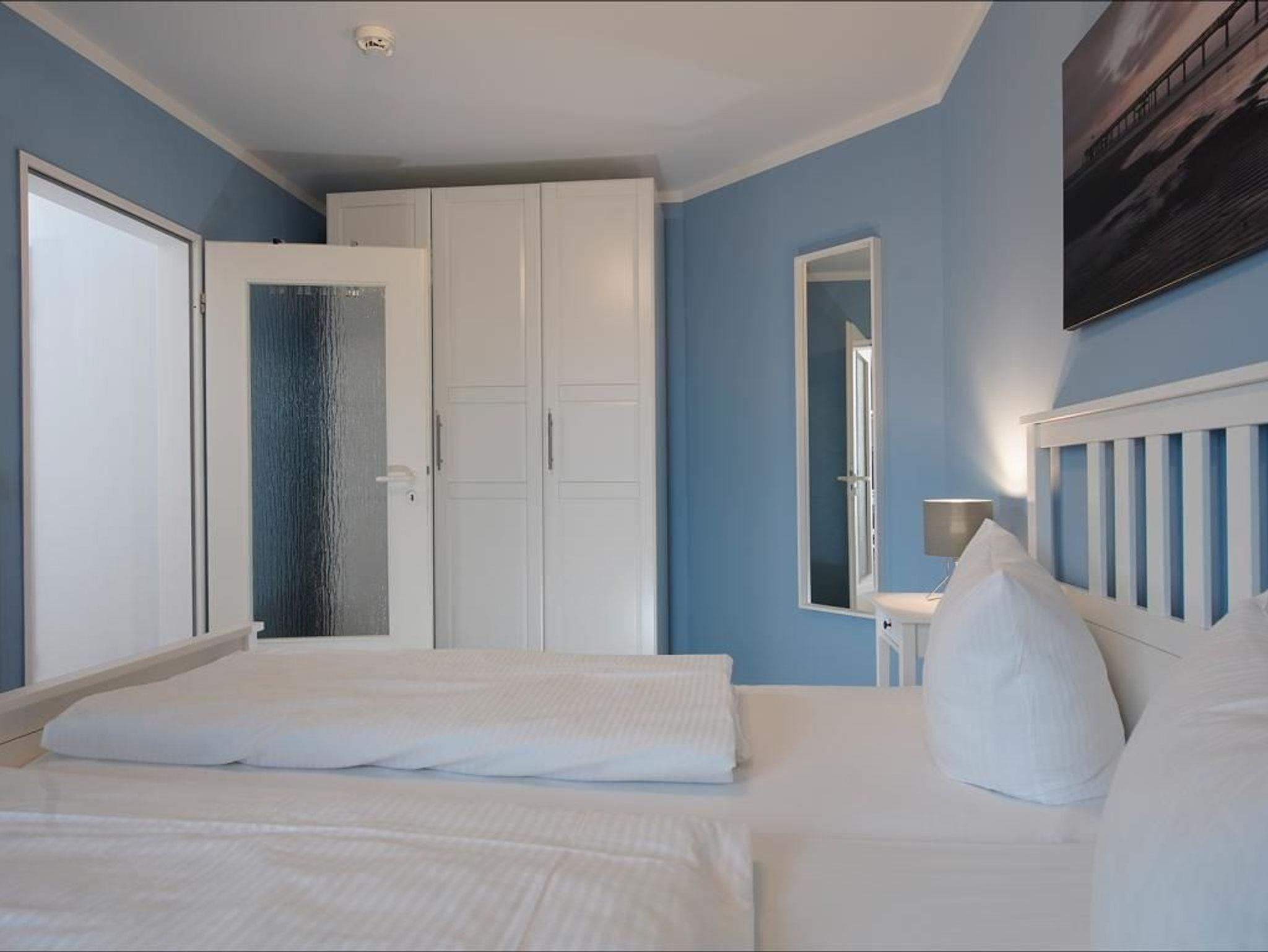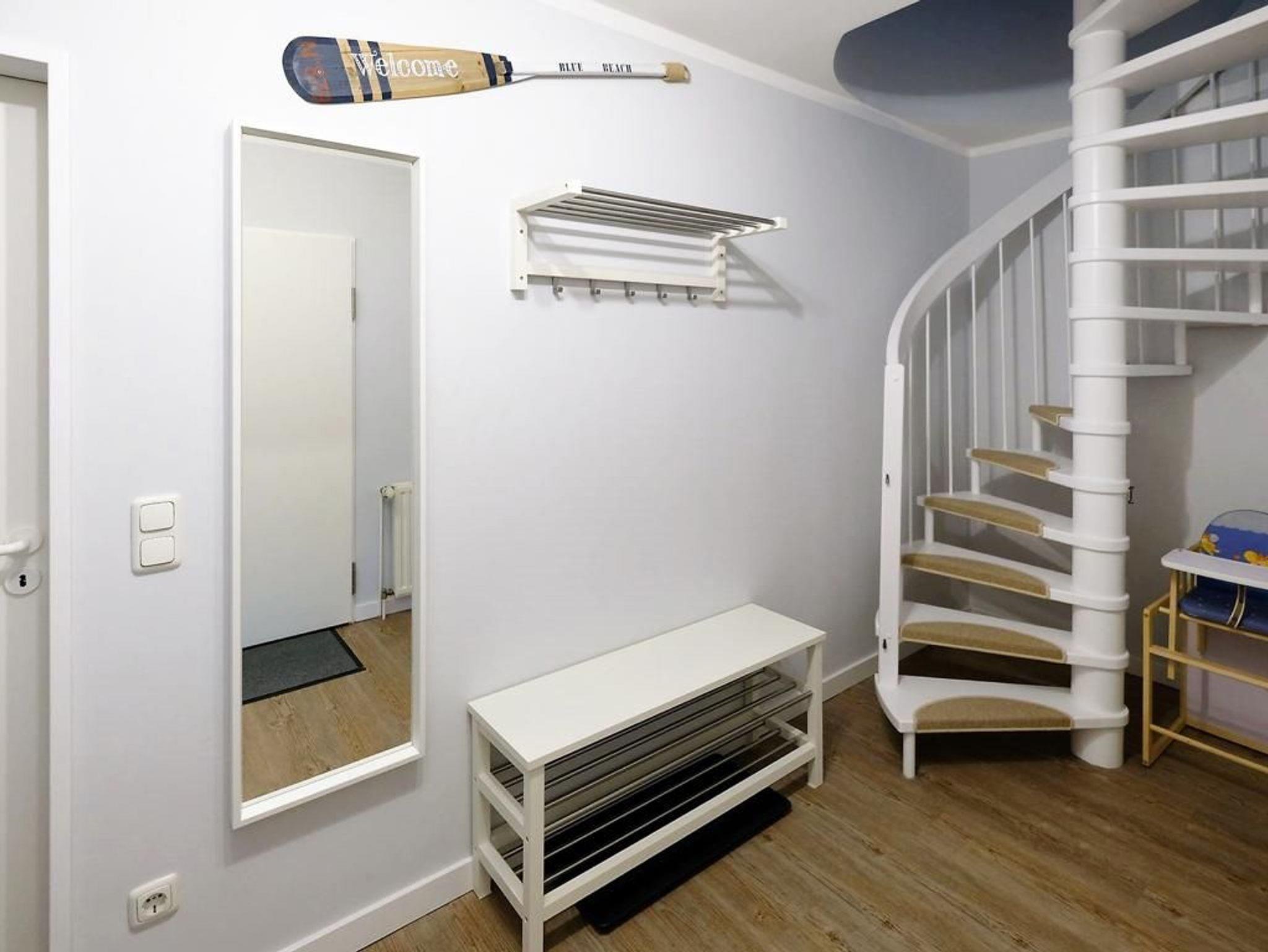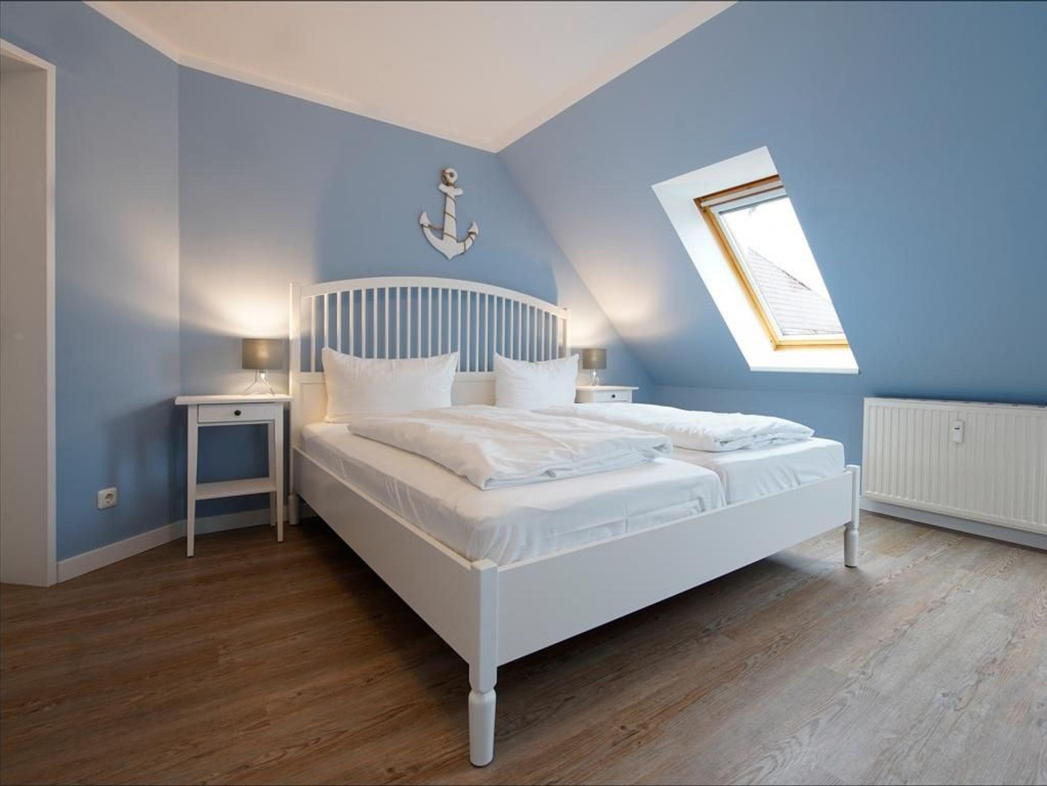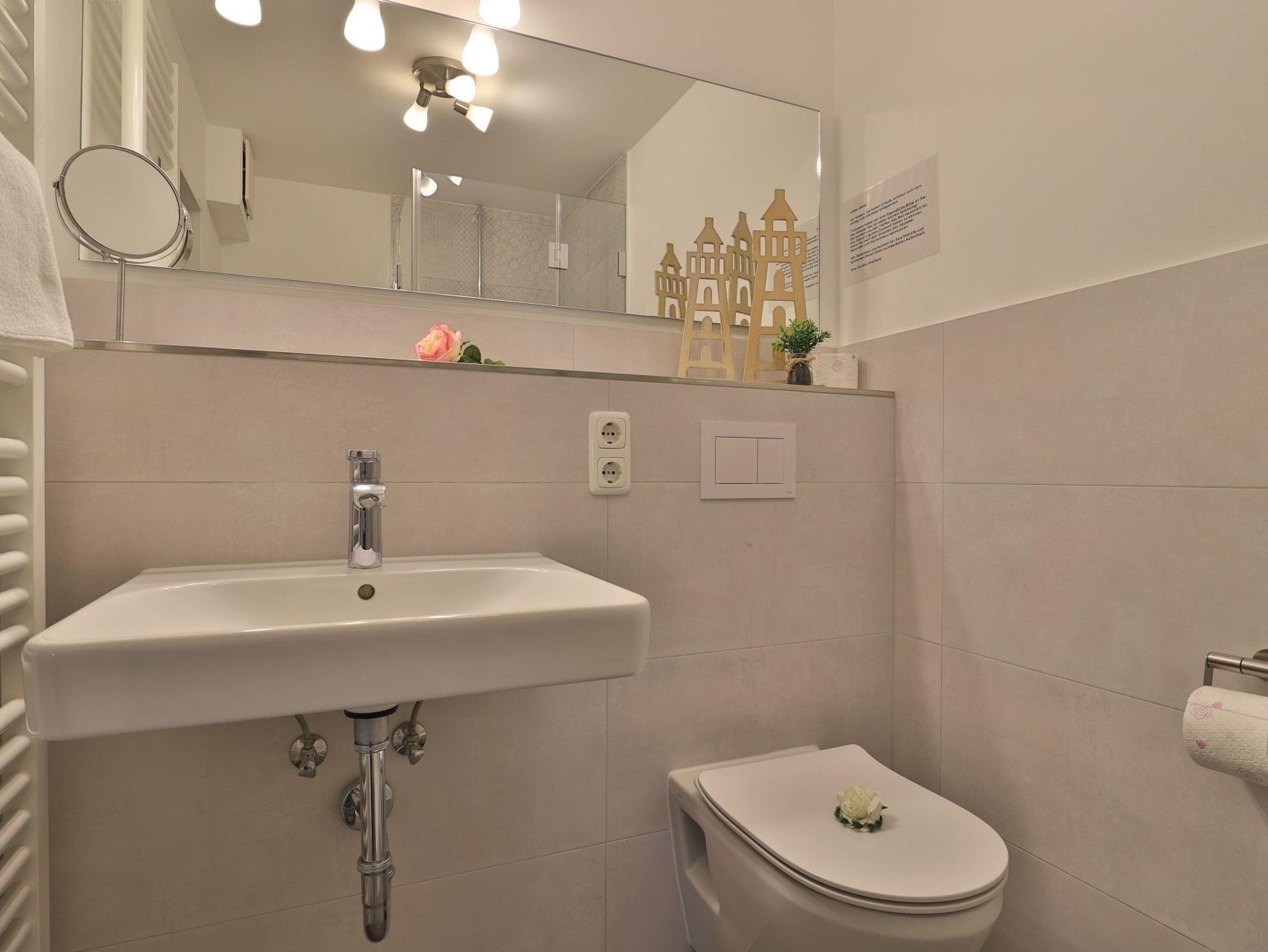 Über eine Wohnraumwendeltreppe erreichen Sie die obere Ebene mit zwei weiteren, separaten Schlafzimmern. Einer der Schlafbereiche ist mit einem Doppelbett, Kleiderschrank, Fernseher, Sessel eingerichtet. Im zweiten Schlafzimmer bzw. Kinderzimmer mit Leuchtturm Tapete, erwarten Sie zwei Einzelbetten und ein Kleiderschrank. Ein modernisiertes Duschbad mit Waschtisch, Handtuchheizung, Föhn, WC befindet sich ebenfalls auf der Schlafraumebene. Für Familien mit Kleinkind sind ein Kinderreisebett und ein Kinderhochstuhl vorhanden. Hausgäste können im Untergeschoss sowohl Waschmaschine als auch Wäschetrockner gegen Gebühr nutzen. Ihr Fahrzeug parken Sie in der hauseigenen Tiefgarage auf einem fest zugeordneten Stellplatz. Mit dem Fahrstuhl gelangen Sie bequem zu den Wohnungsetagen. Im Haus gibt es eine gemeinschaftlich nutzbare Fahrradabstellmöglichkeit.