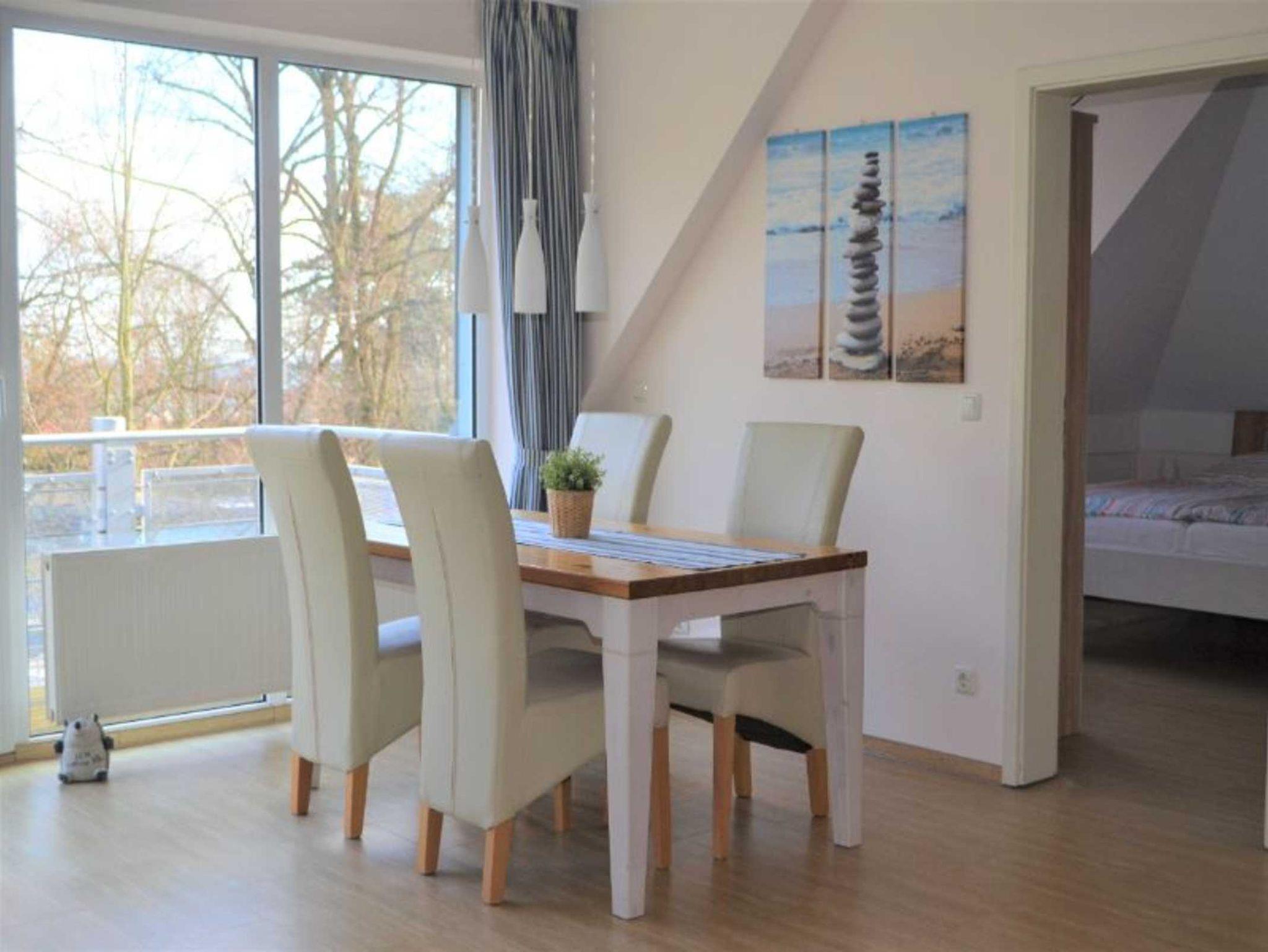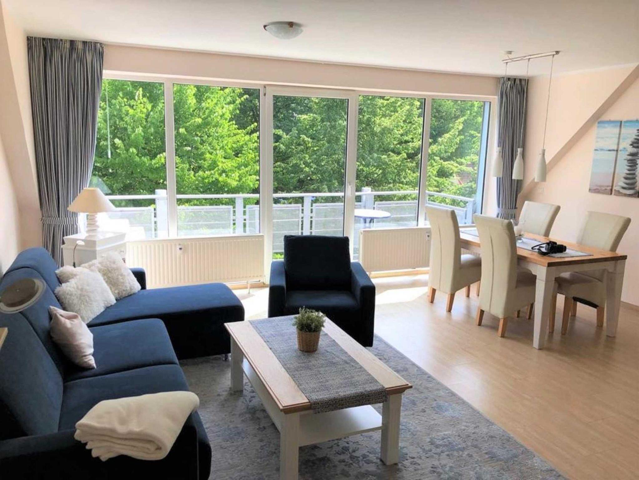 mit viel Freude und Liebe zum Detail haben wirdie Ferienwohnung für Sie eingerichtet. Schon beim Betreten der Wohnunghaben Sie einen direkten Blick durch das große Panoramafenster (knapp 7 m breit) in Richtung Ostsee.