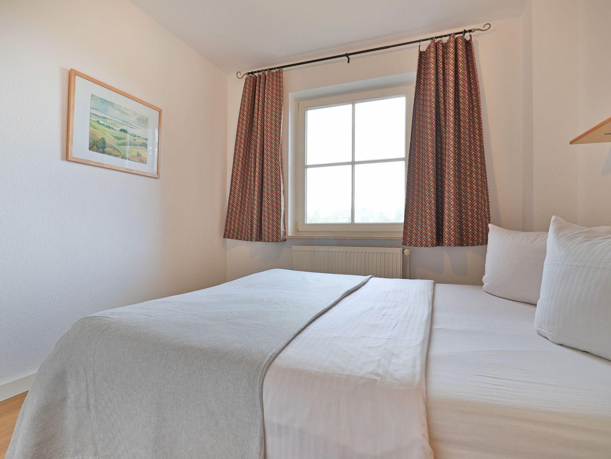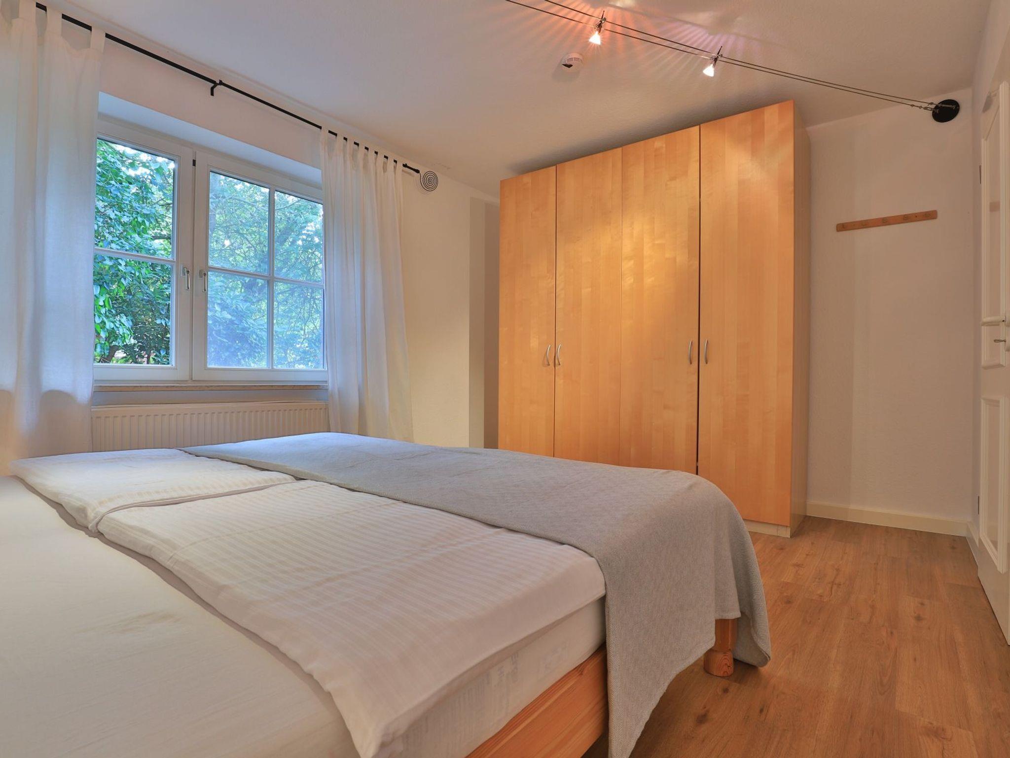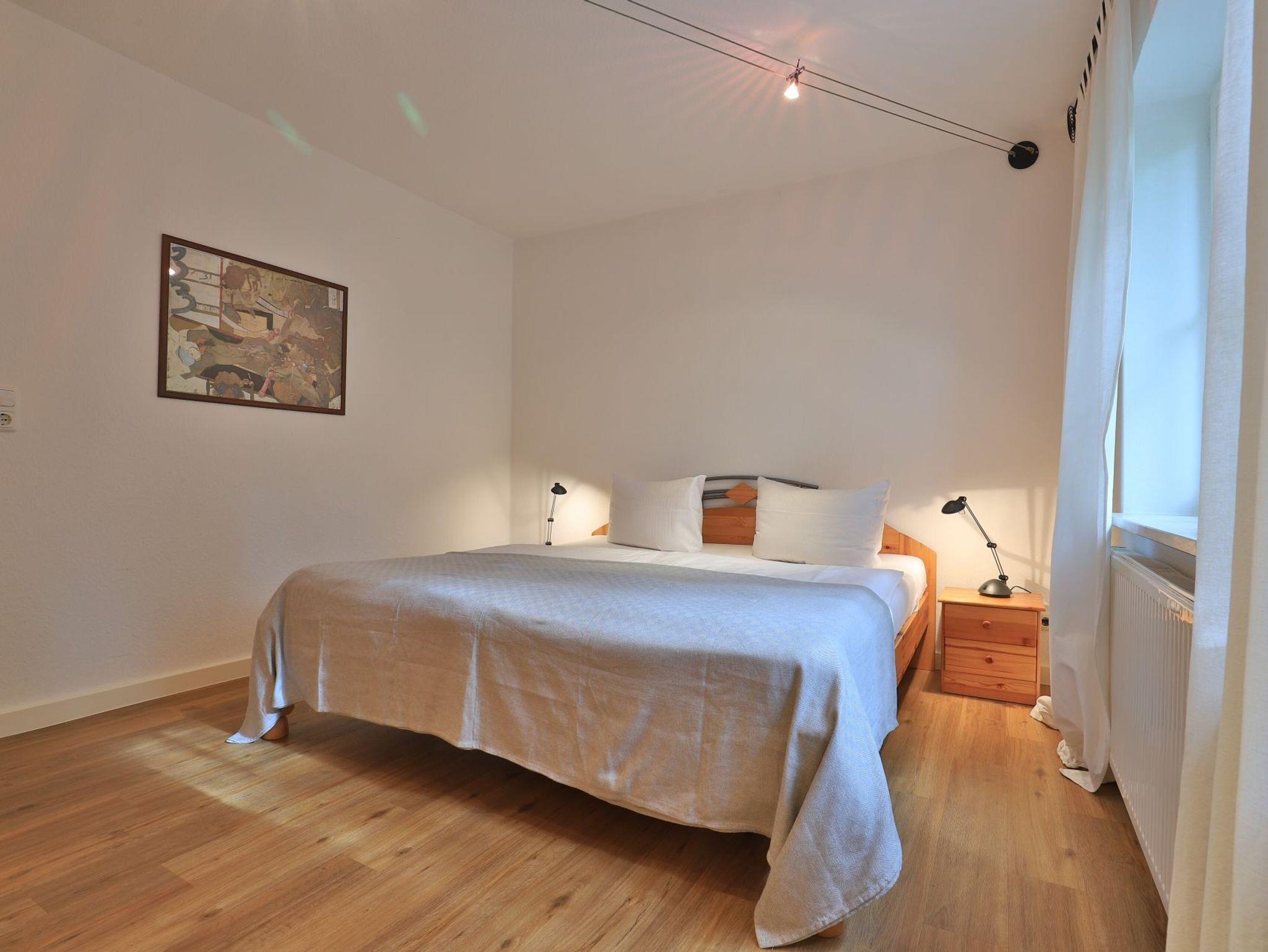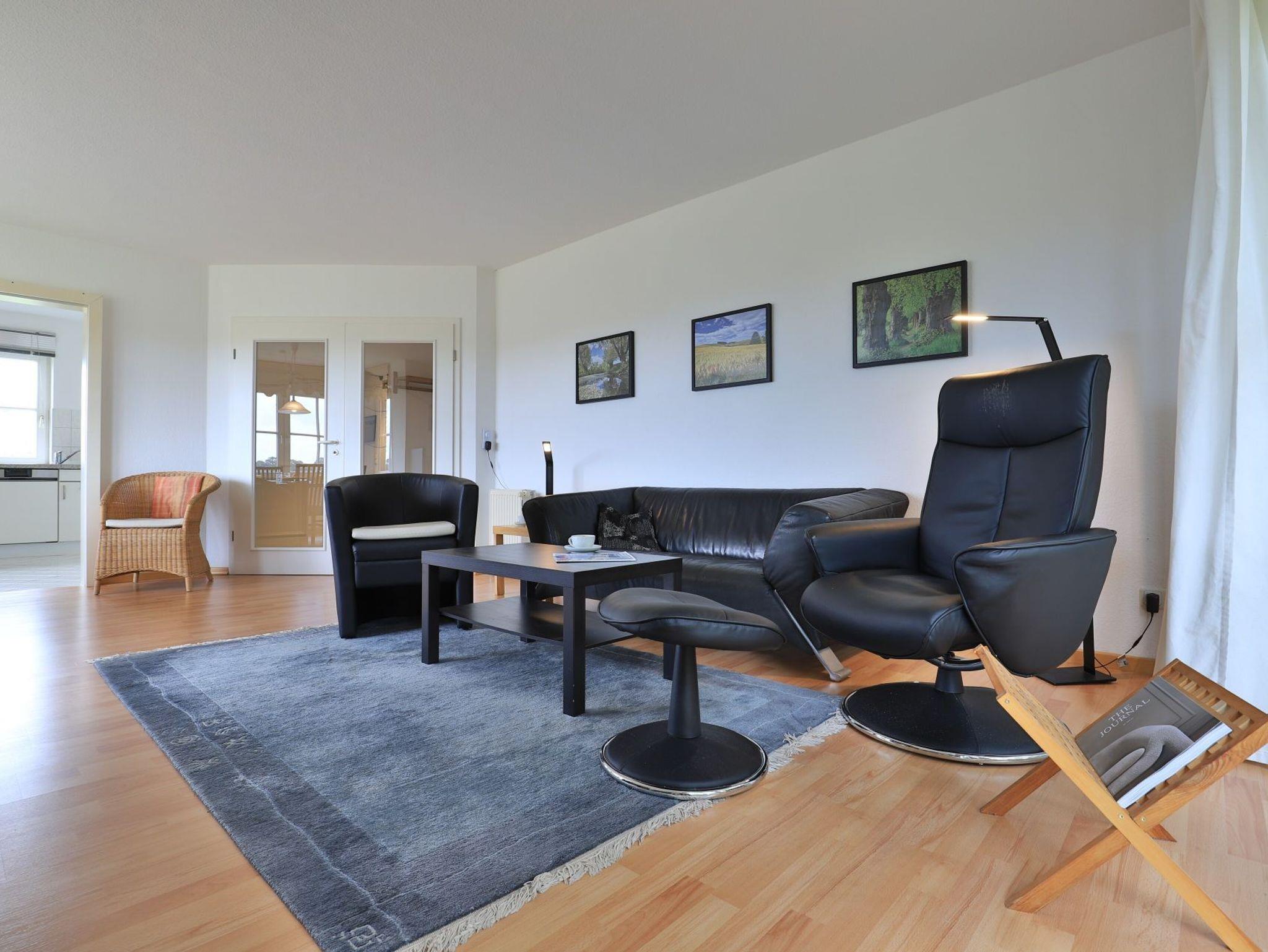 Das gut ausgestattete Erdgeschosswohnung bietet eine Wohnfläche von ca. 74qm und kann mit bis zu 4 Personen belegt werden. Durch bodentiefe Fenstertüren gleitet angenehmes Tageslicht in den Wohn und Essbereich, der seine Gäste mit einem Sofa, Lehnsessel und Esstisch empfängt. Auch ein Fernseher sowie ein Radio sind vorhanden. Den Internetanschluss nutzen Sie gebührenfrei. Eine separate Küche ermöglicht die Eigenversorgung. Herd, Backofen, Dunstabzug, Kühlschrank mit integr. Gefrierfach, Kaffeemaschine, Toaster, Geschirrspüler usw. sind vorhanden. Eine saisonal möblierte Terrasse in Süd-West Ausrichtung lädt zum Entspannen ein. Erholsame Nächte ermöglichen zwei separate Schlafzimmer, jeweils mit Doppelbett und Kleiderschrank.
